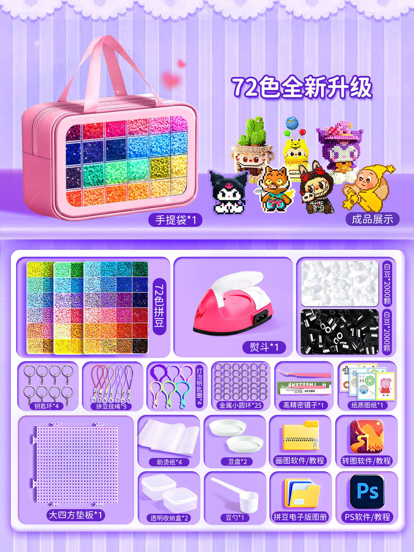 2025超火玩具拼豆豆手工diy材料包全套装专用熨斗儿童女生孩礼物8