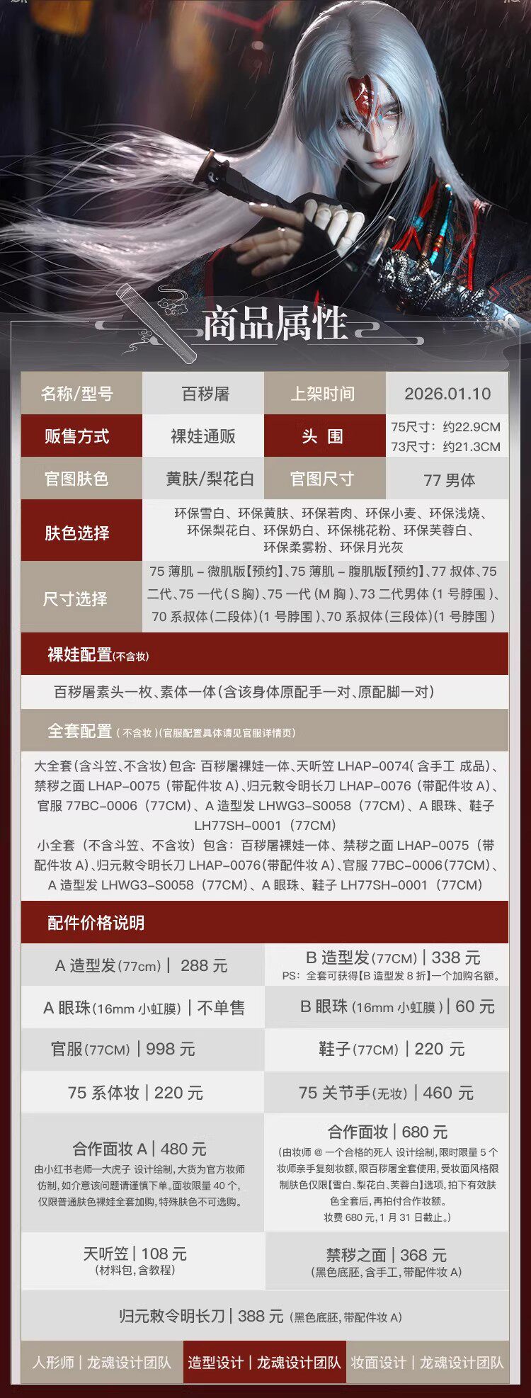 龙魂 百秽屠 陇中杂记裸娃 75/77bjd娃娃古风男娃正品