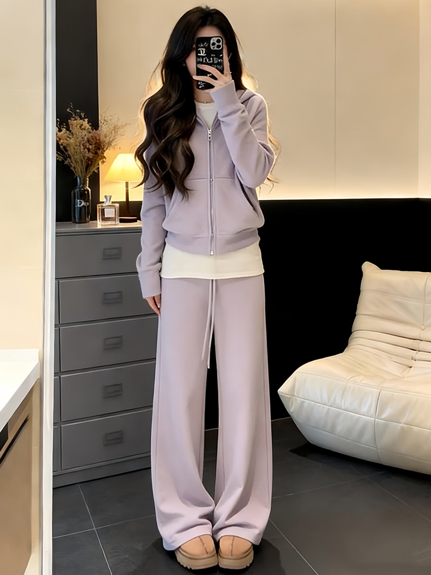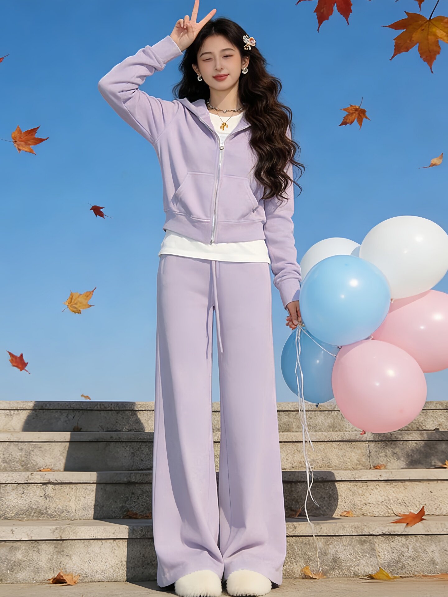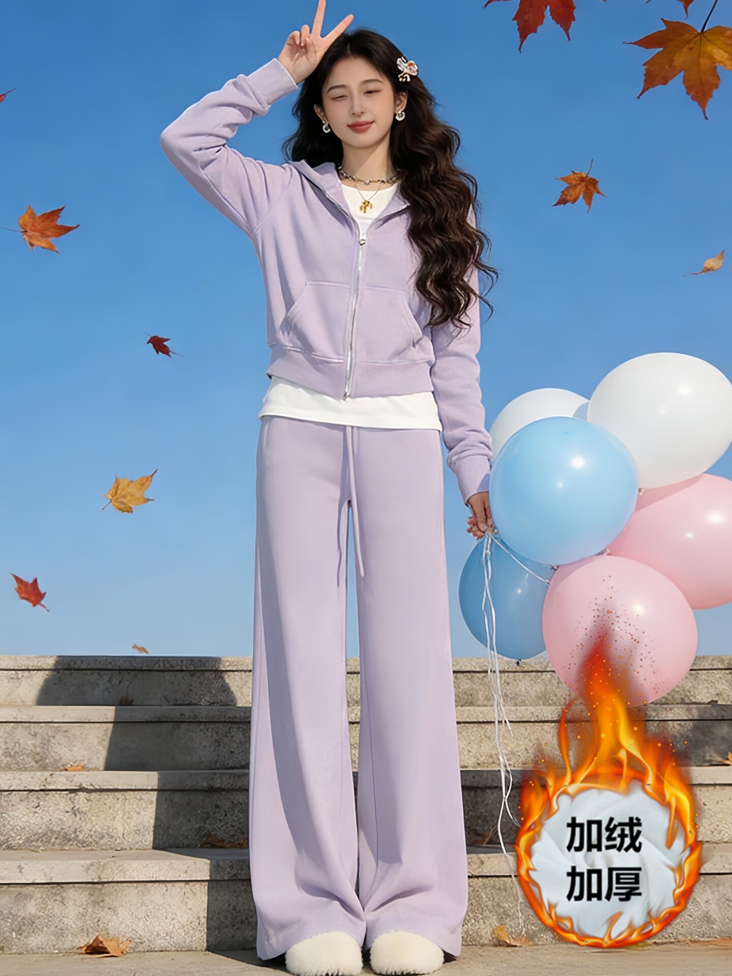 盐系运动服套装女秋冬加绒加厚宽松时尚减龄卫衣休闲两件套跑步潮