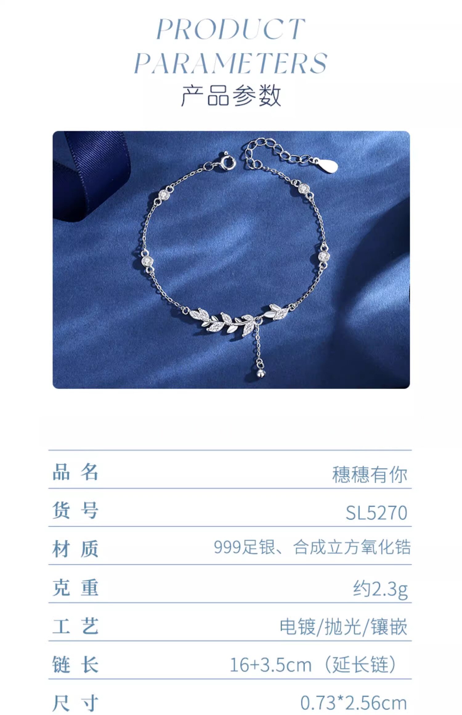 麦穗妇女节送女友妈妈生日礼物女生银手链闺蜜实用高级感项链精致