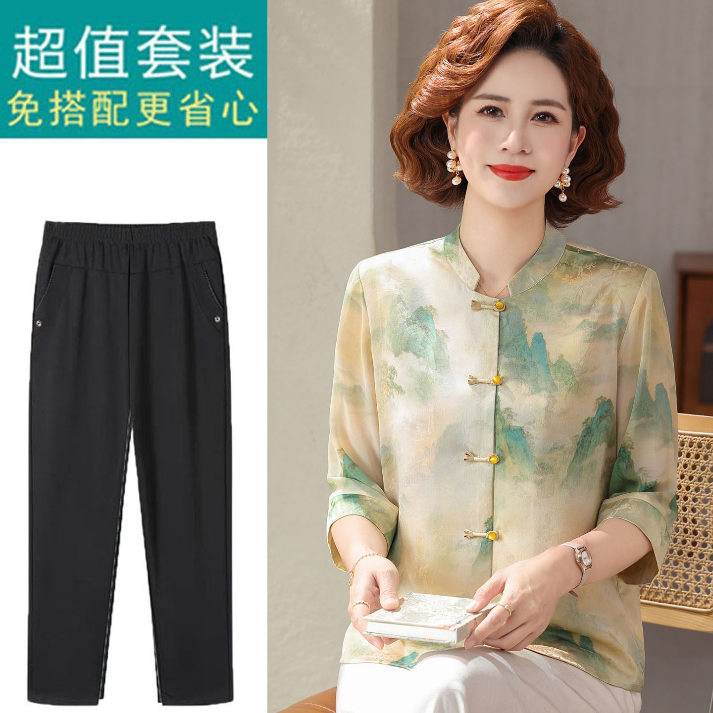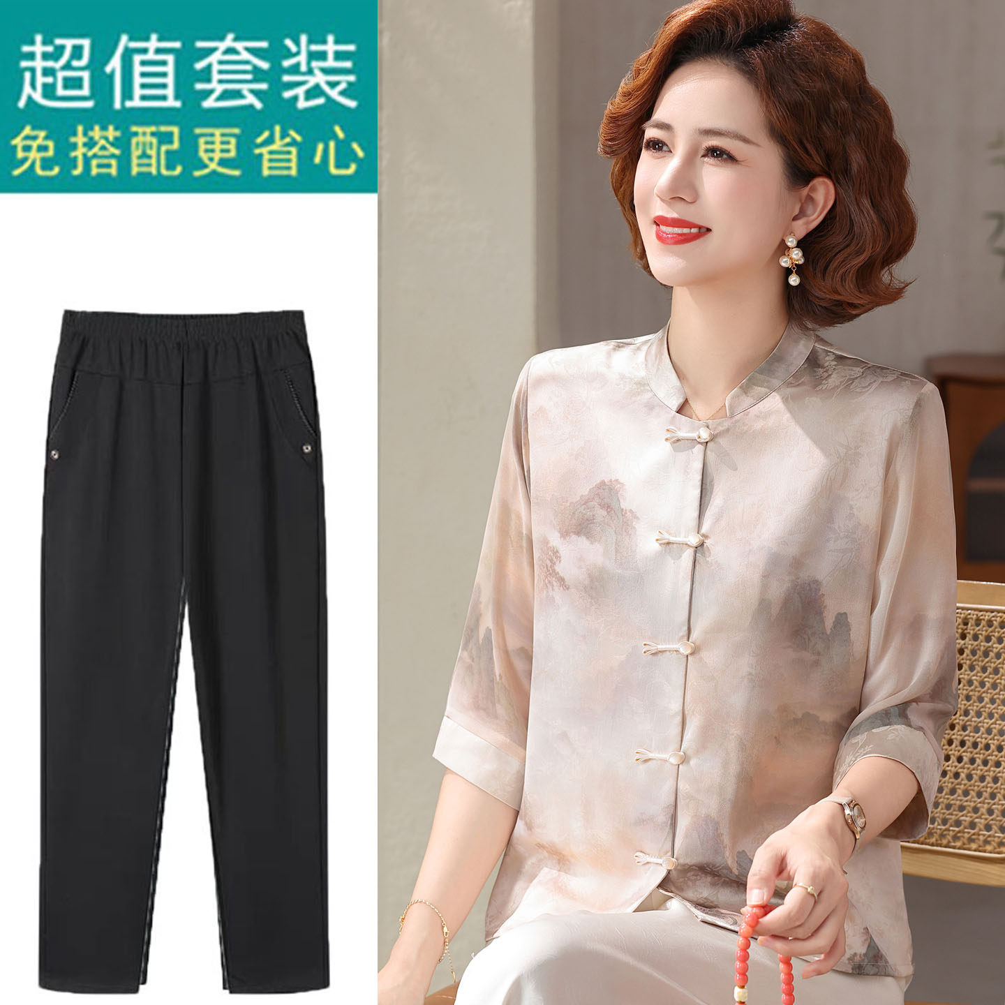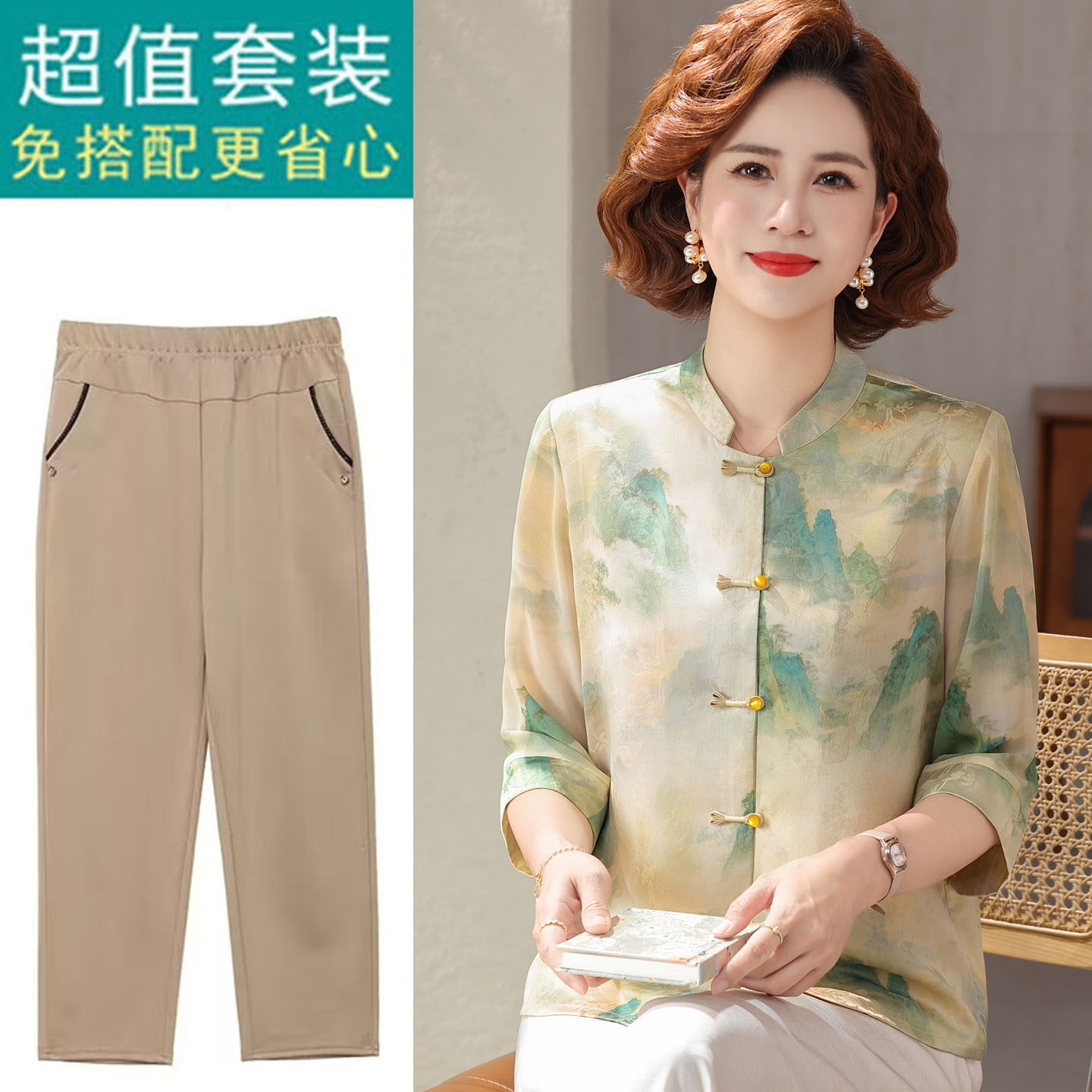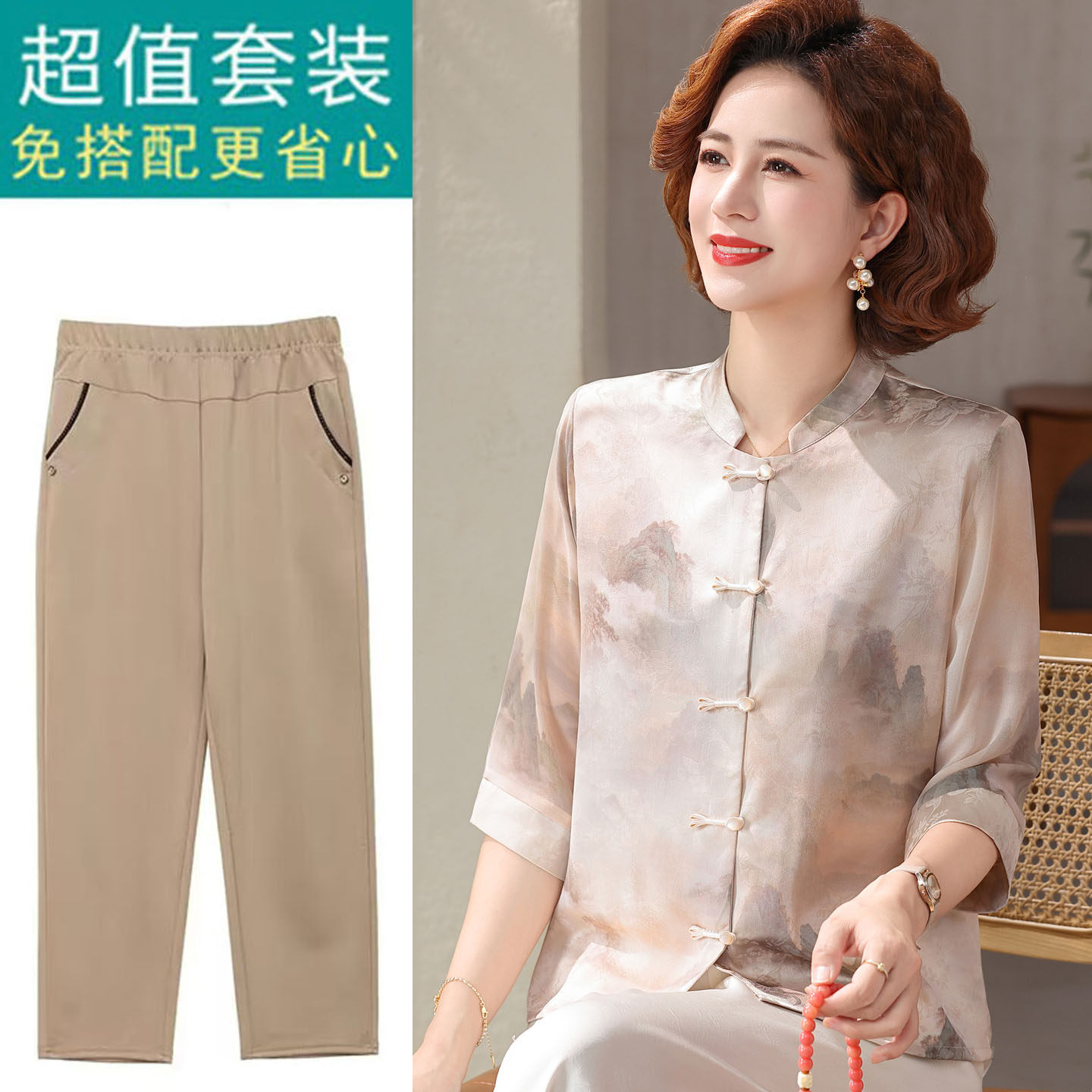 妈妈夏装新中式短袖t恤2026新款母亲节小衫中老年女套装上衣洋气