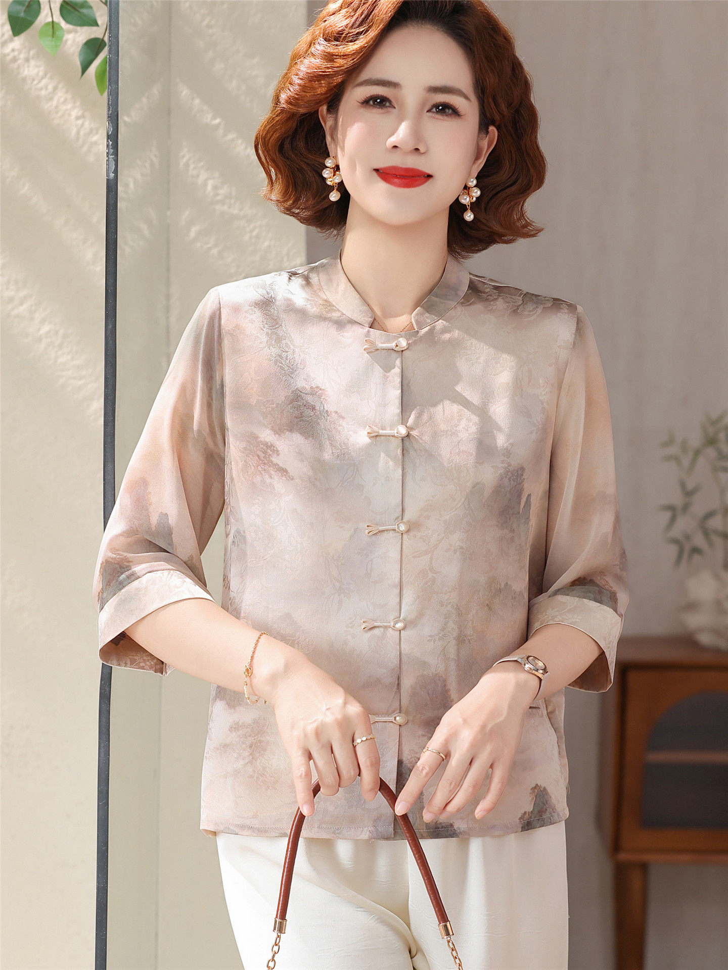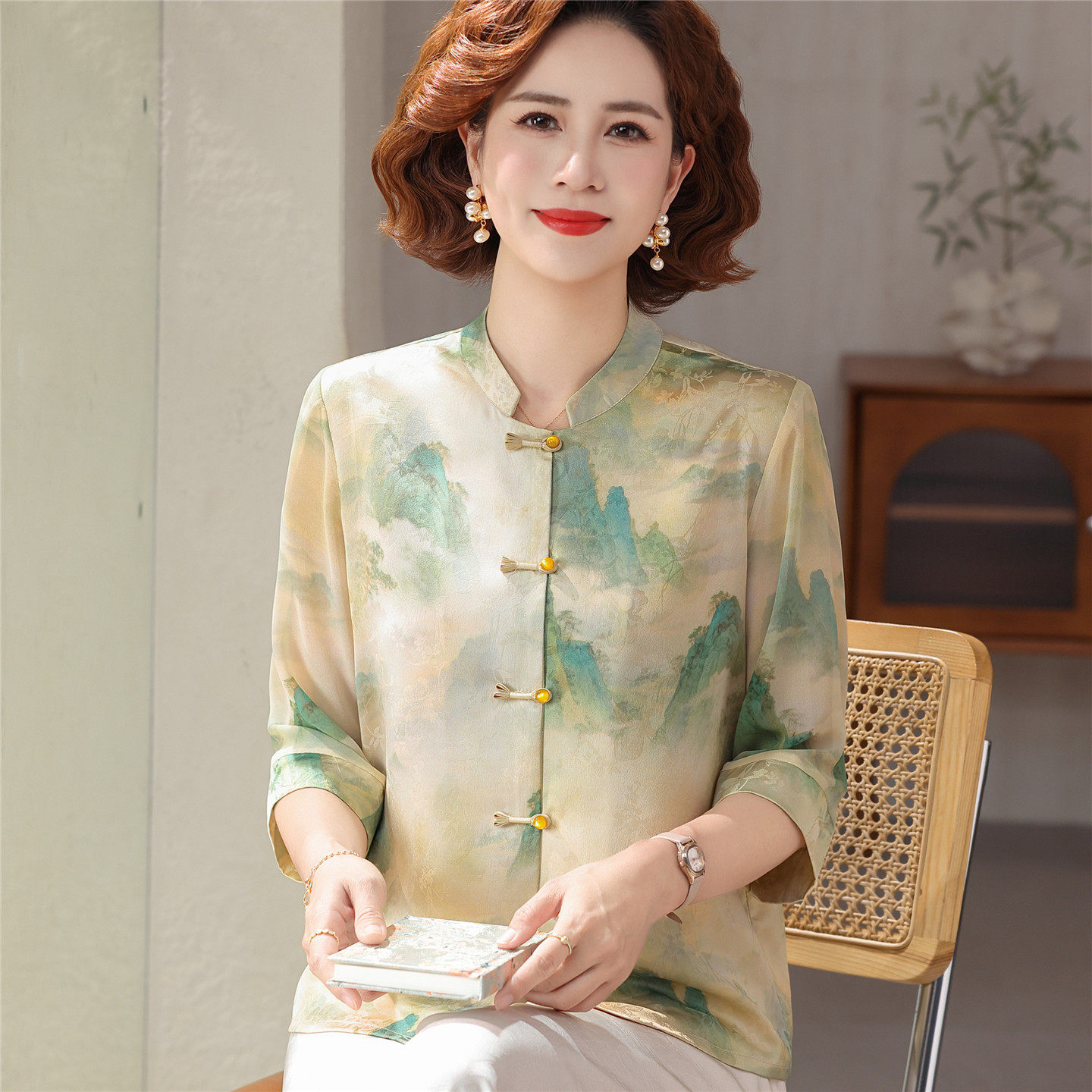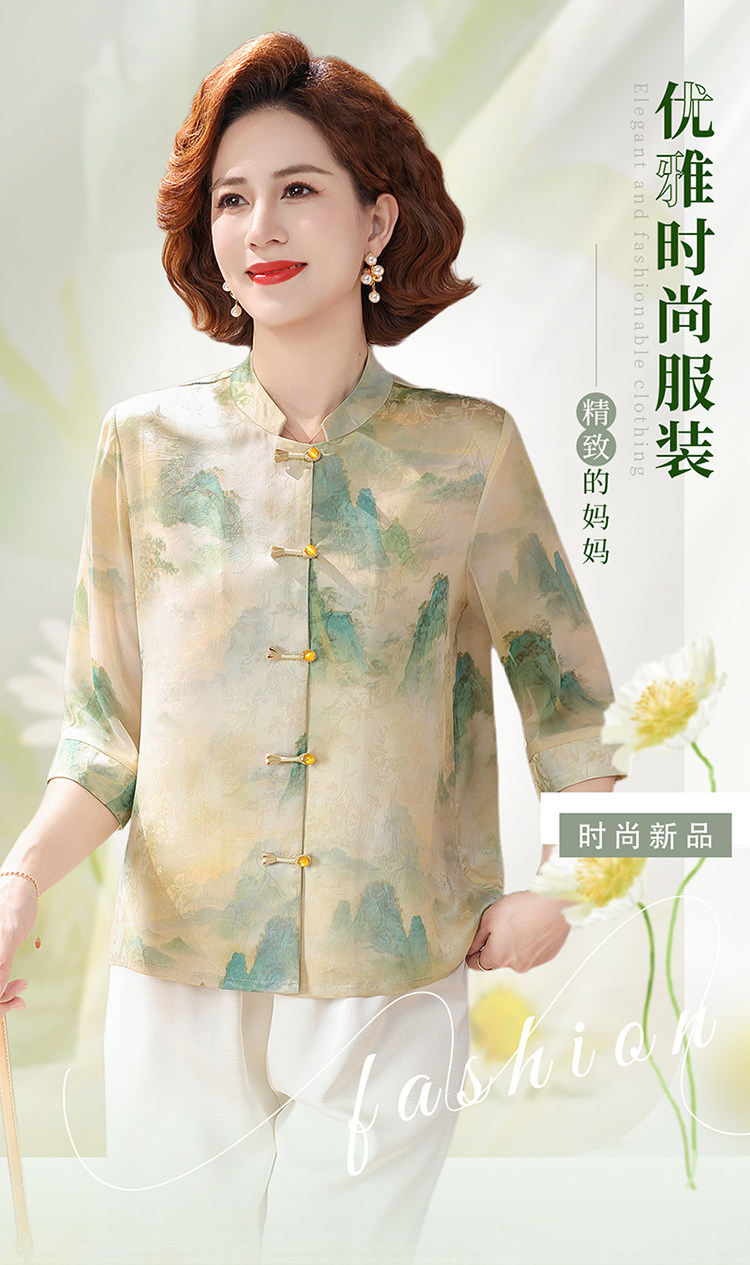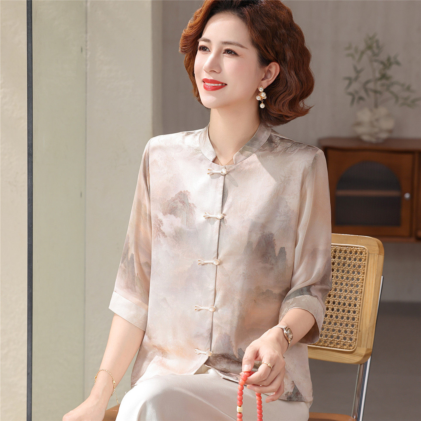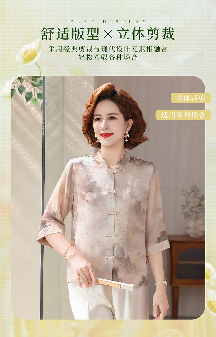 妈妈夏装新中式短袖t恤2026新款母亲节小衫中老年女套装上衣洋气