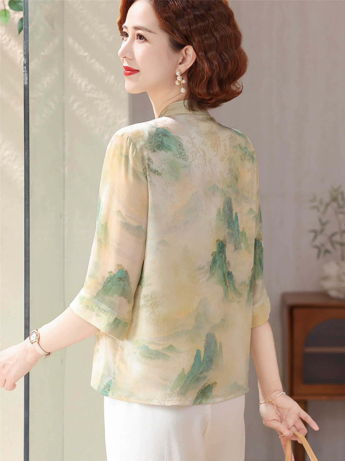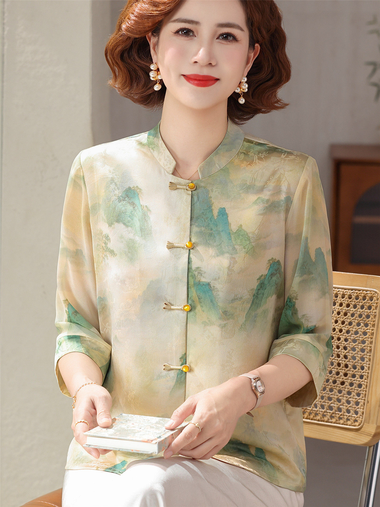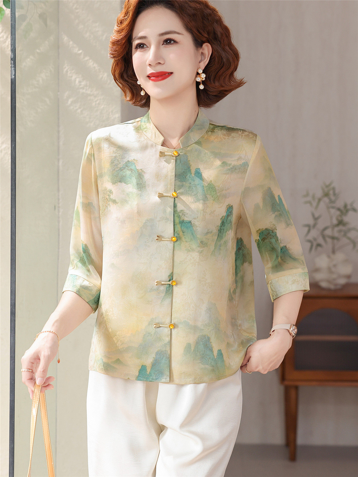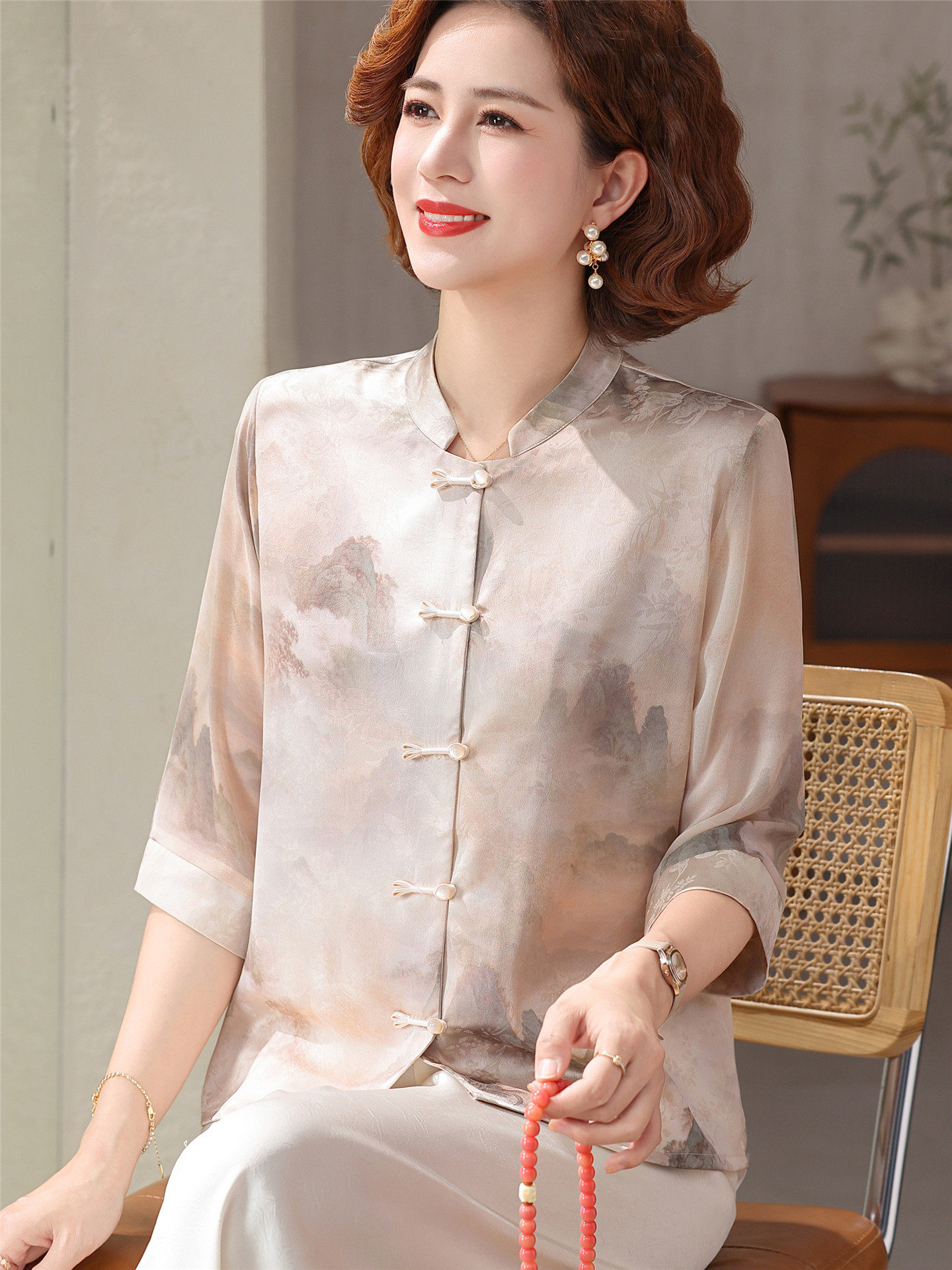 妈妈夏装新中式短袖t恤2026新款母亲节小衫中老年女套装上衣洋气