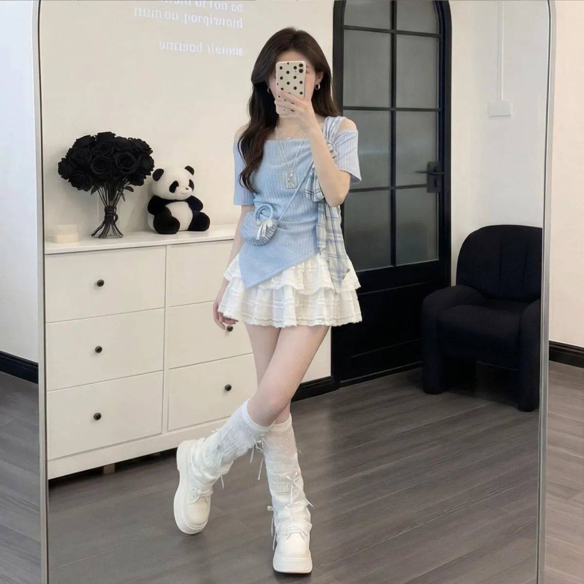 时尚套装女夏2026新款学院风不规则短袖T恤上衣蓬蓬蛋糕裙两件套