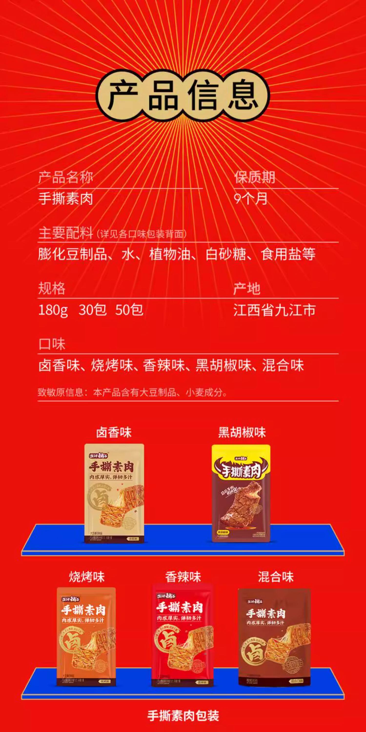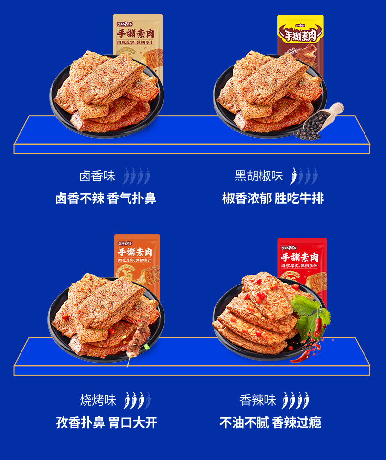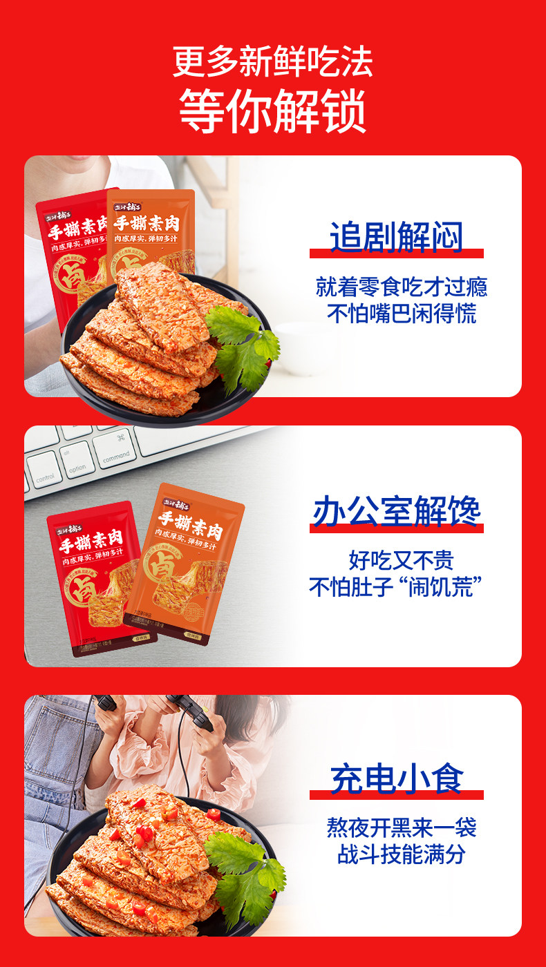 盐津铺子手撕素肉零食休闲食品小吃豆干素食辣味解馋素牛肉小包装