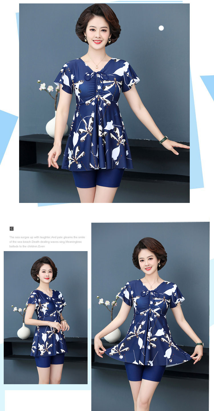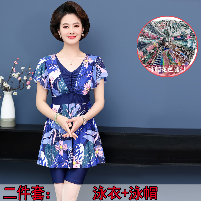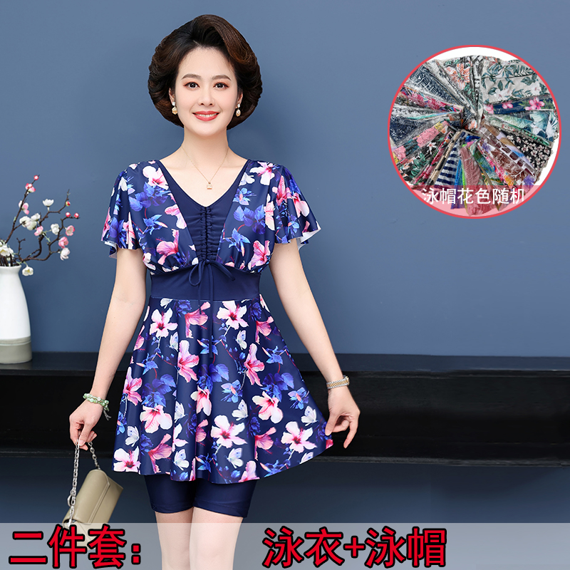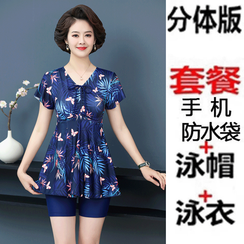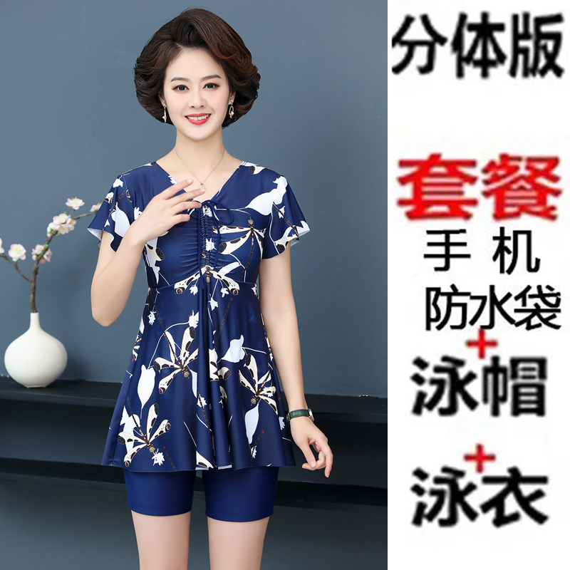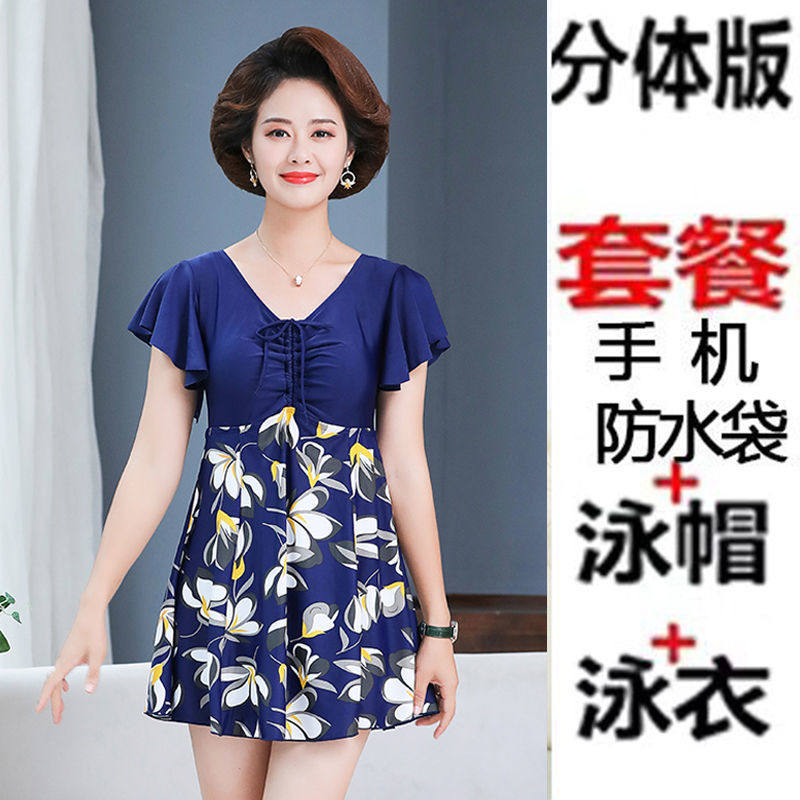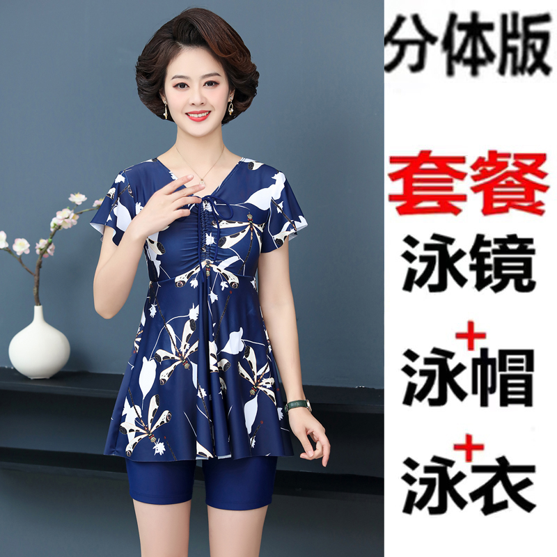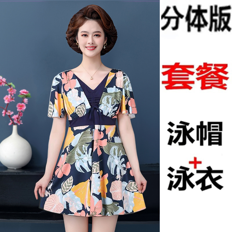 泳衣女中年妈妈款女士分体裙式保守遮肚显瘦中老年大码时尚游泳装