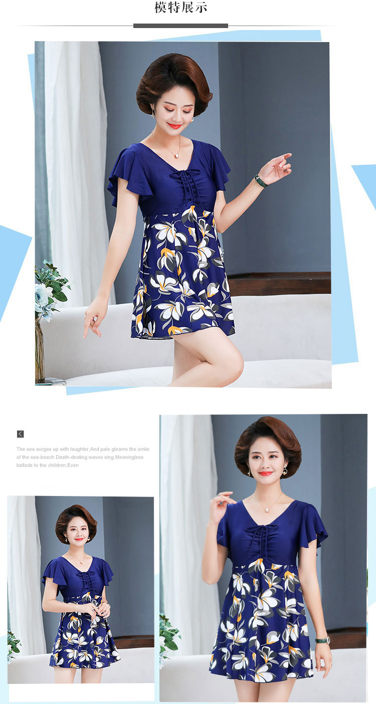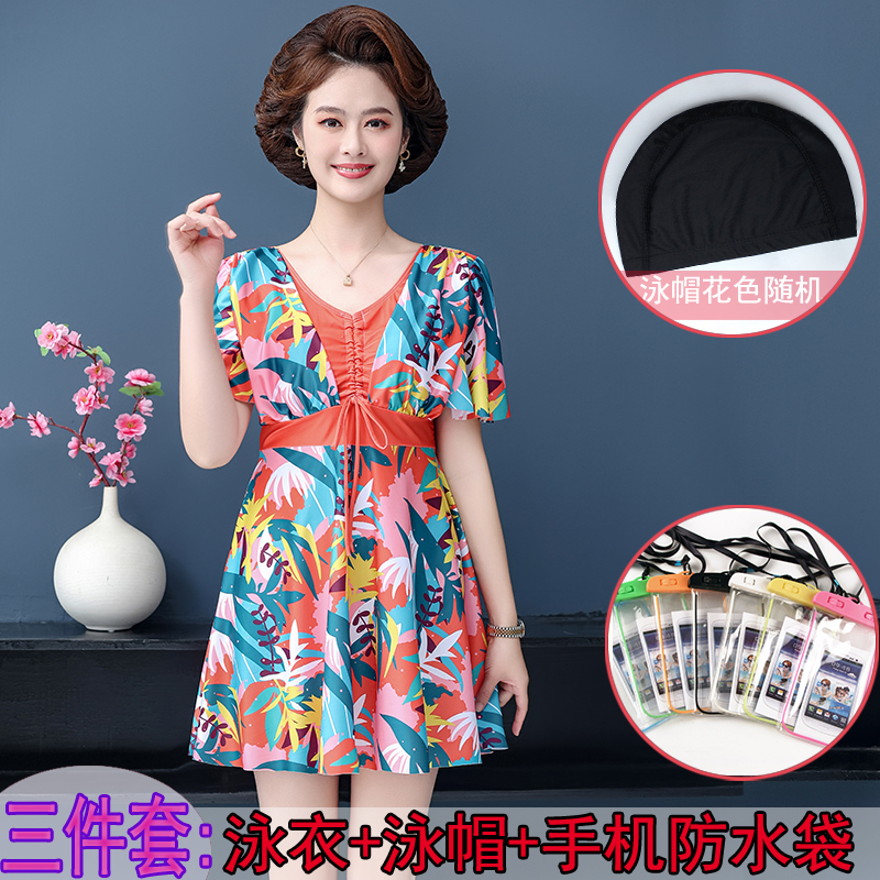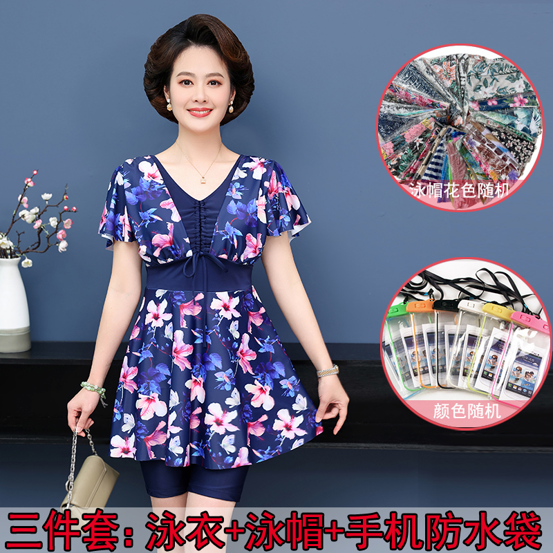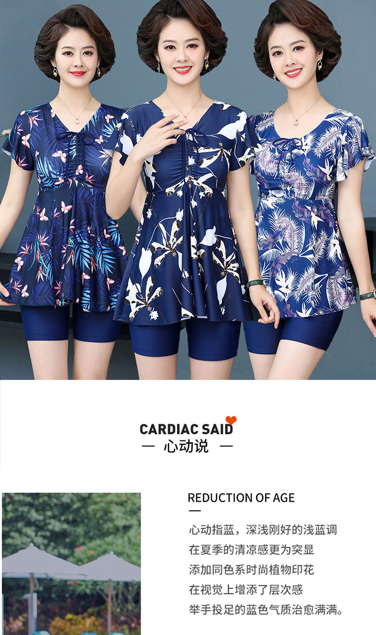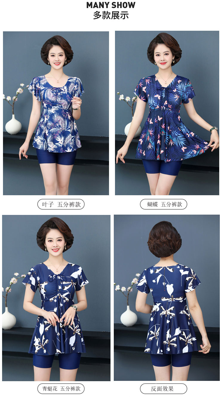 泳衣女中年妈妈款女士分体裙式保守遮肚显瘦中老年大码时尚游泳装