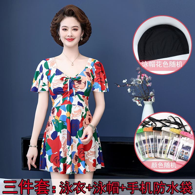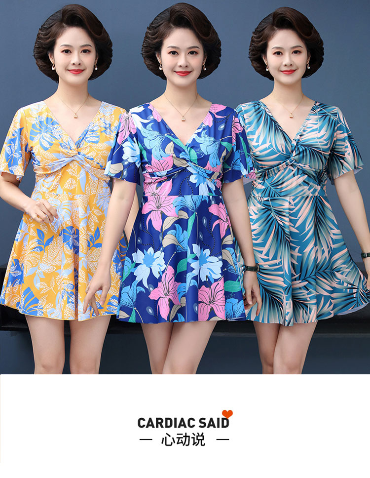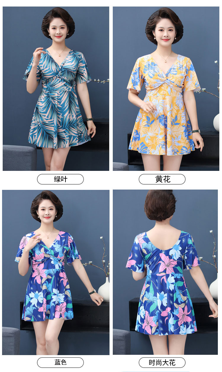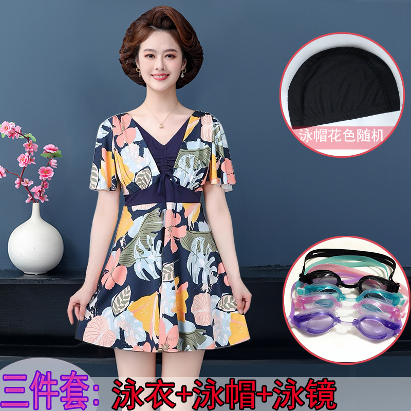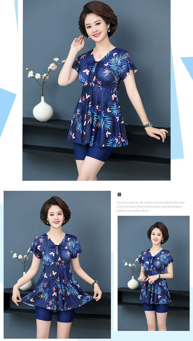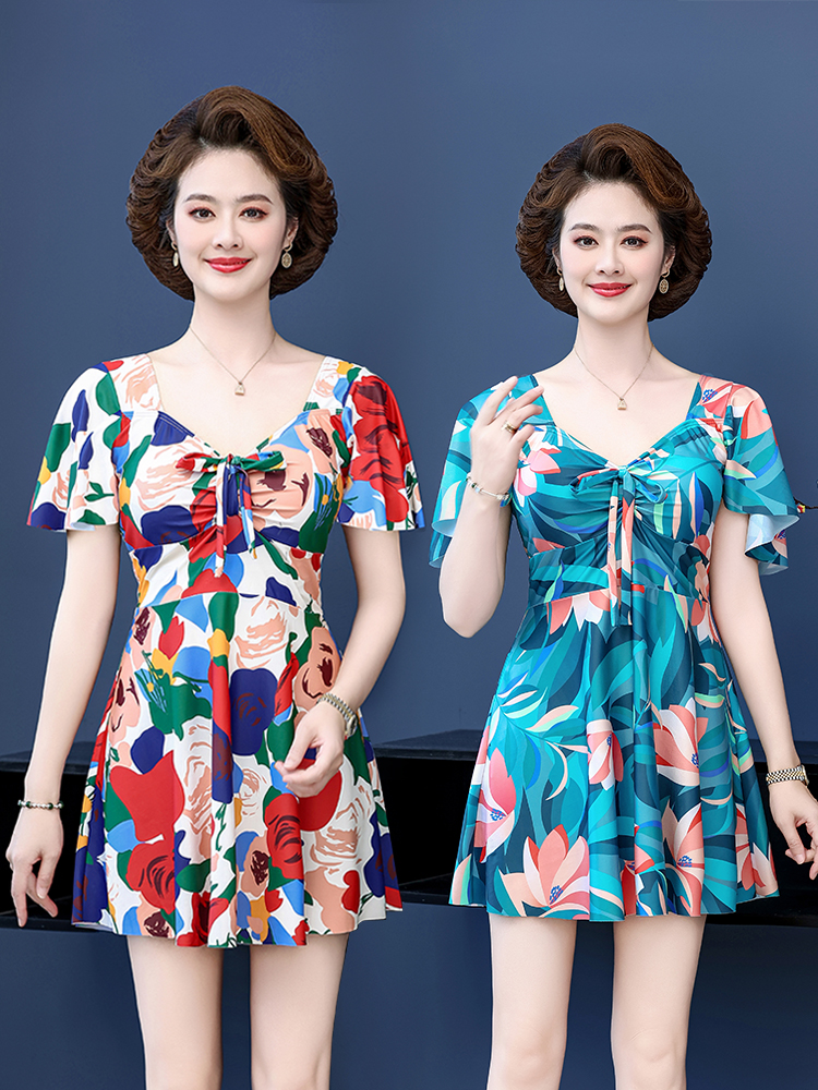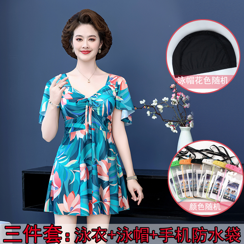 泳衣女中年妈妈款女士分体裙式保守遮肚显瘦中老年大码时尚游泳装