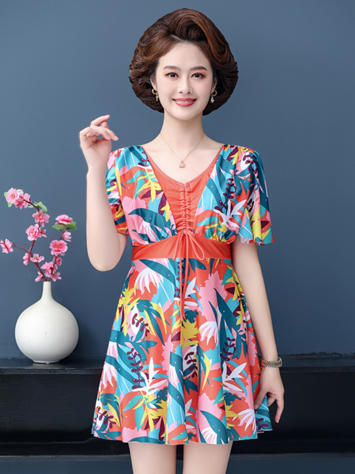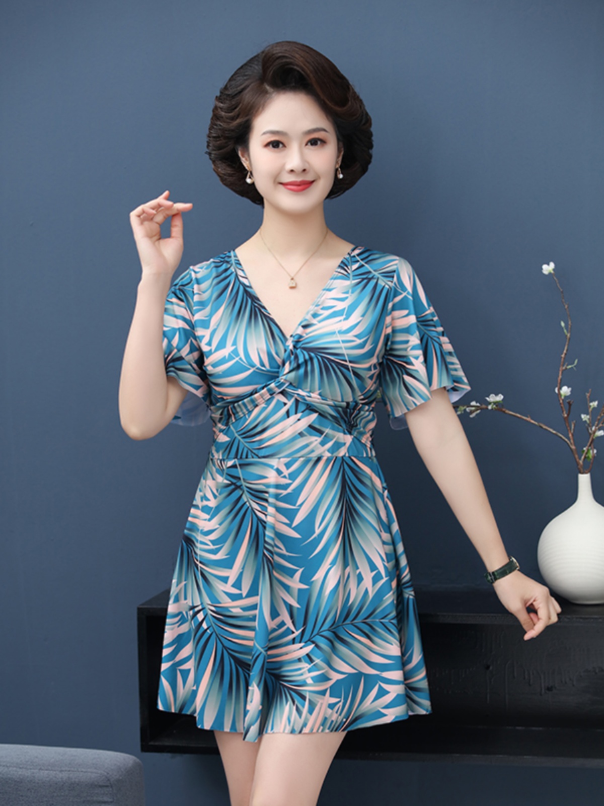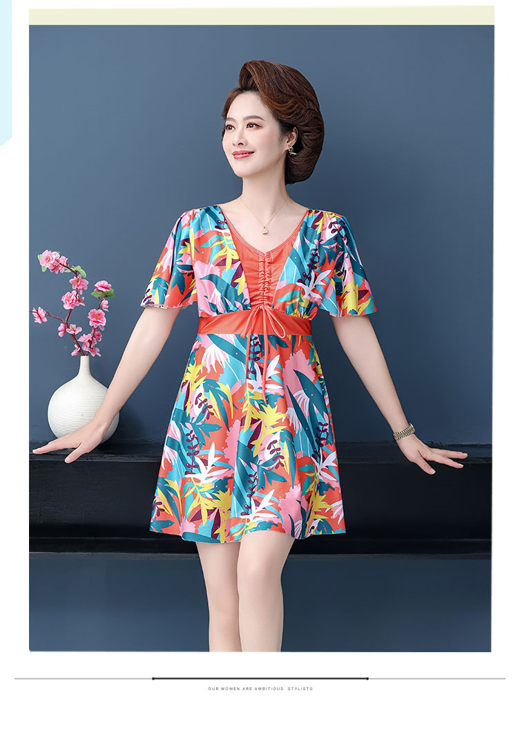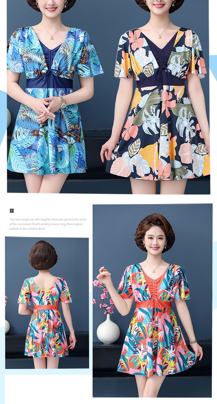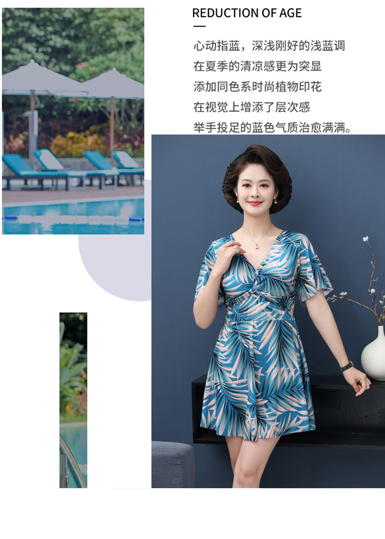 泳衣女中年妈妈款女士分体裙式保守遮肚显瘦中老年大码时尚游泳装