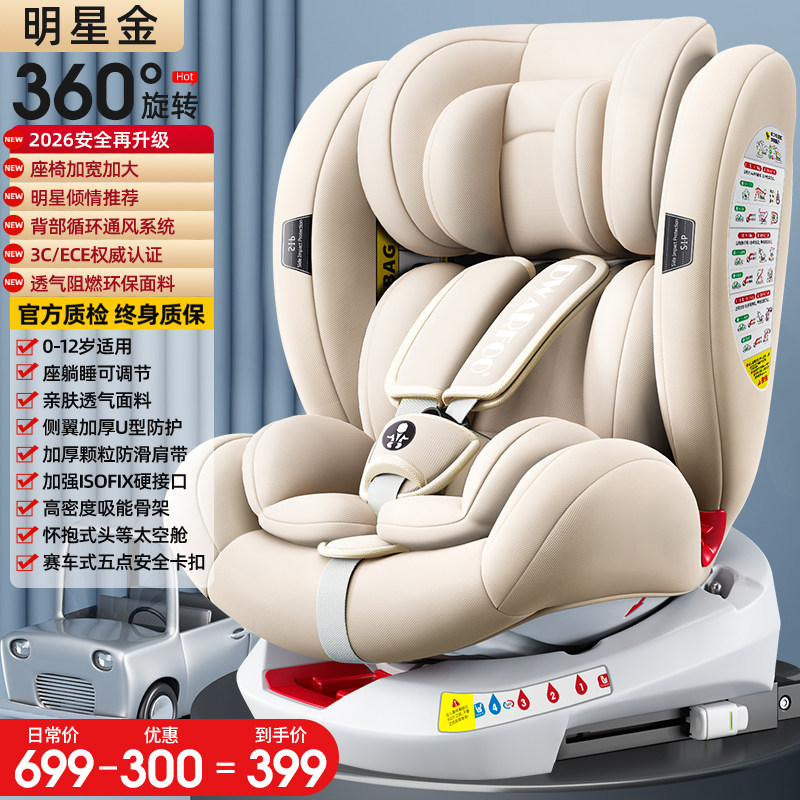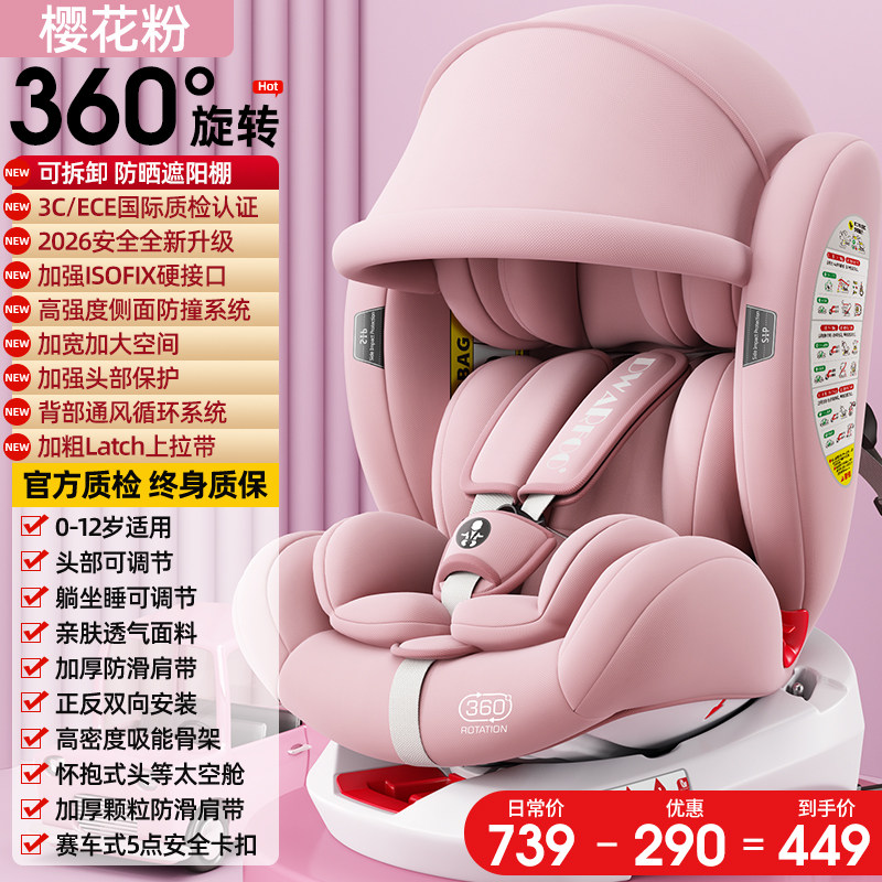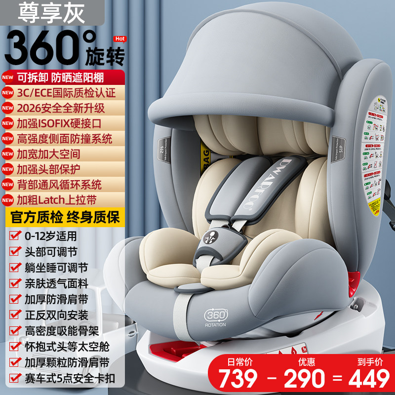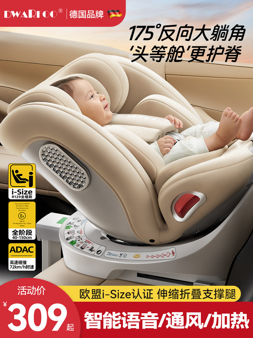 德国DWARFOO儿童安全座椅汽车用婴儿宝宝车载0到12岁便携式坐椅躺