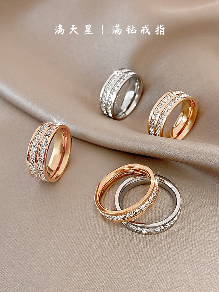 满天星戒指女小众设计情侣对戒素圈钛钢戒指女轻奢高级感尾戒指环