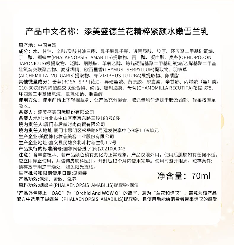nywow o女娲oao雪兰乳70ml兰花精萃紧颜水嫩保湿滋养官方旗舰店