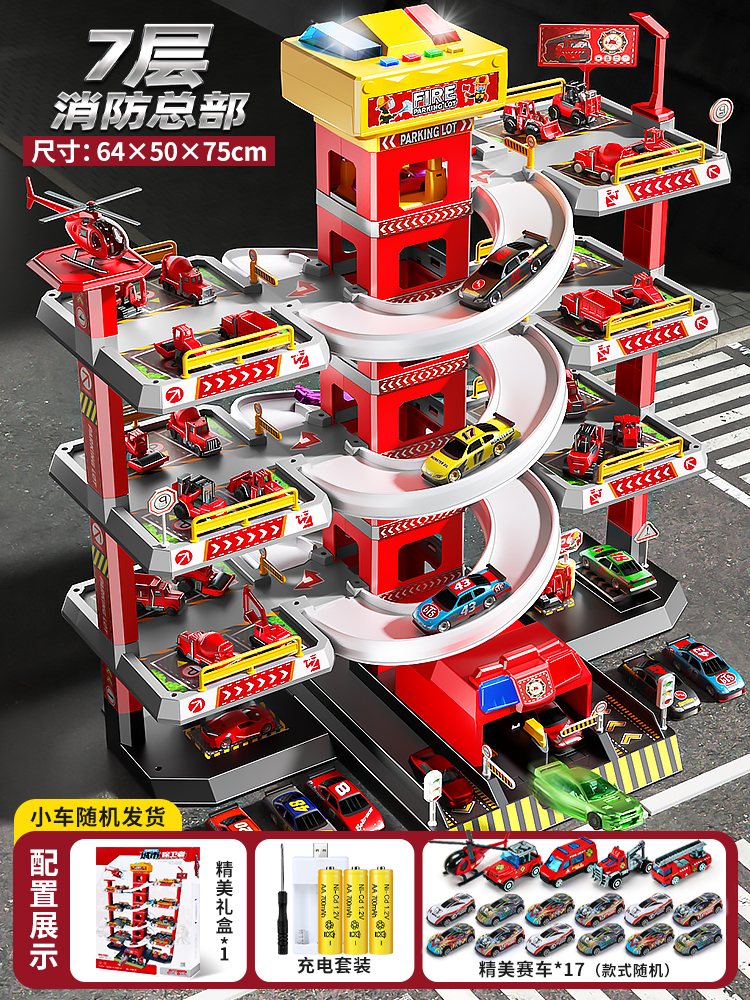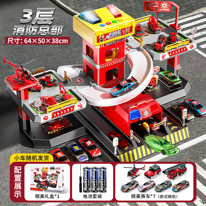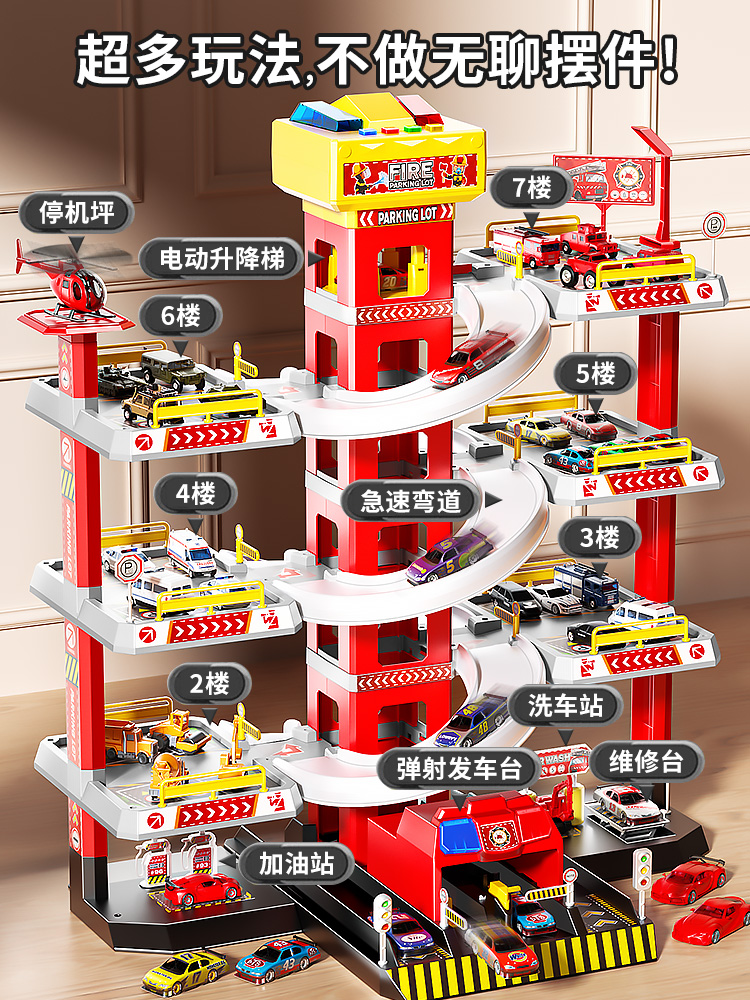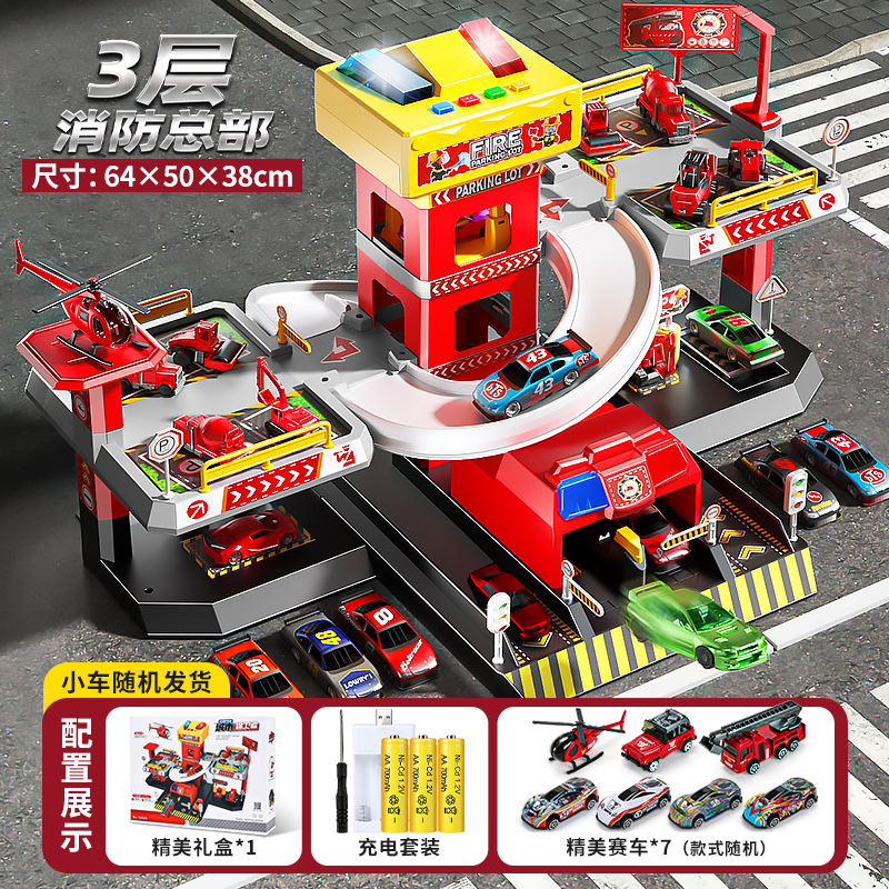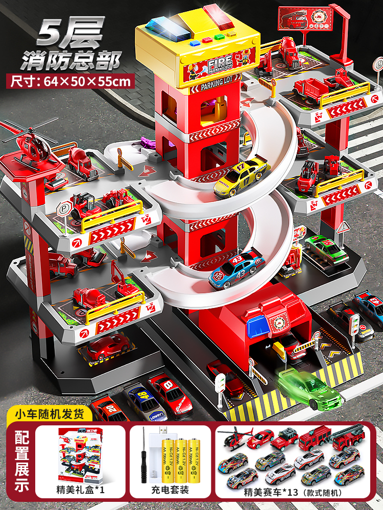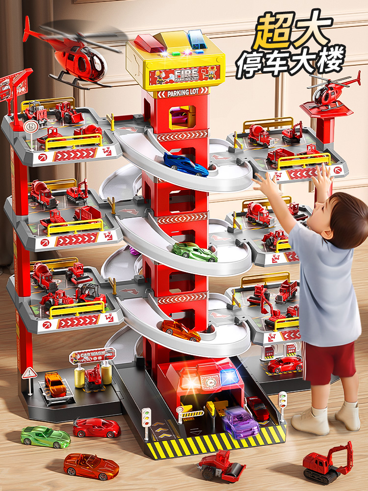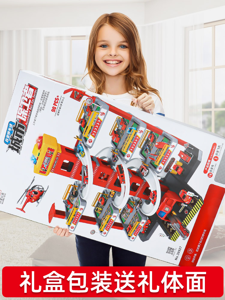 轨道车停车场大楼玩具车小汽车消防3-4岁儿童6益智男孩工程车礼物