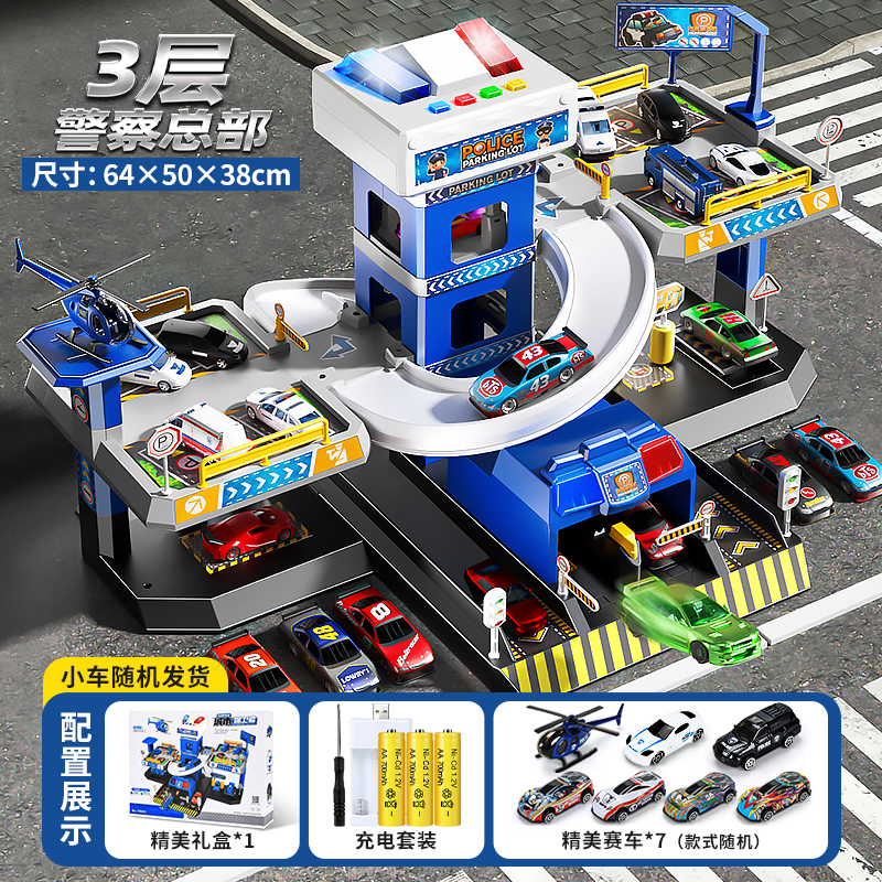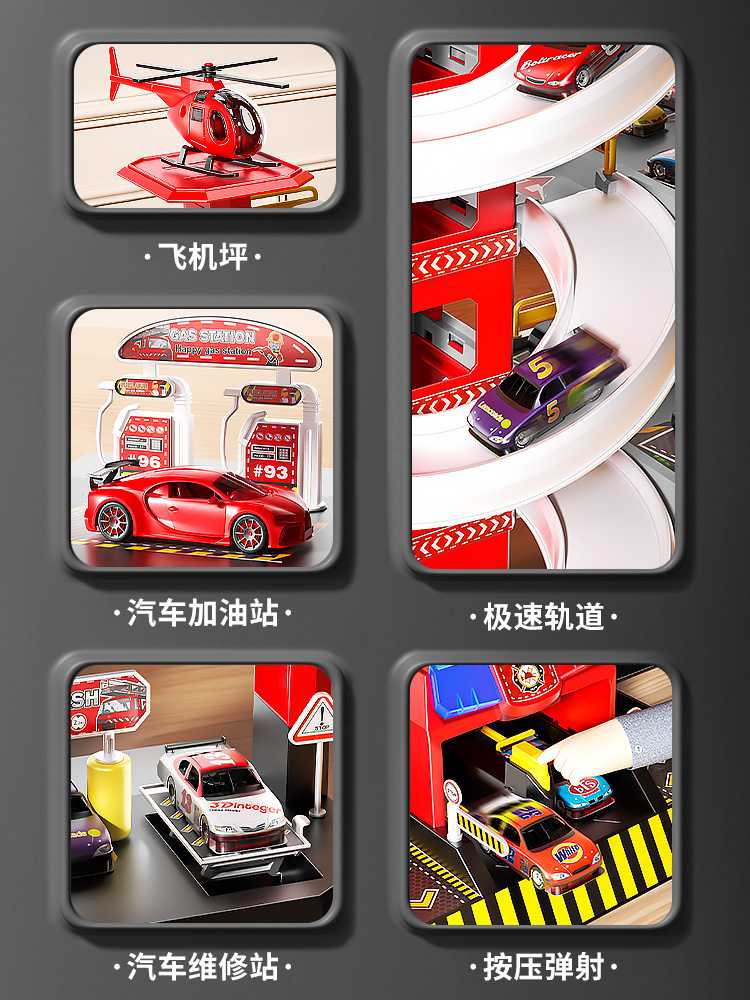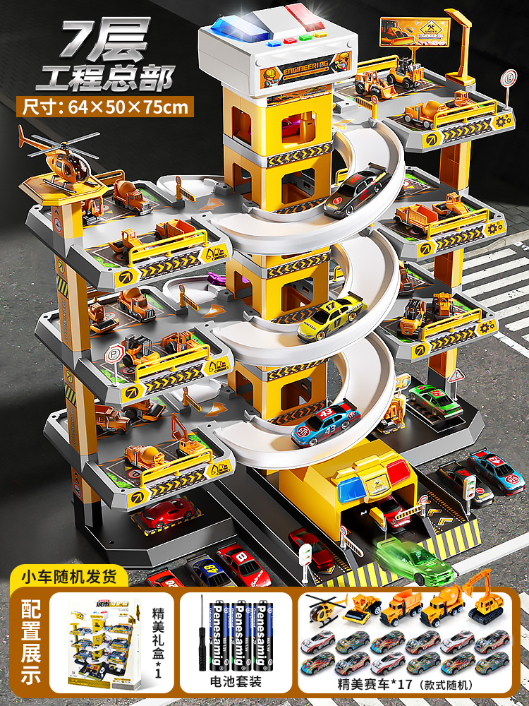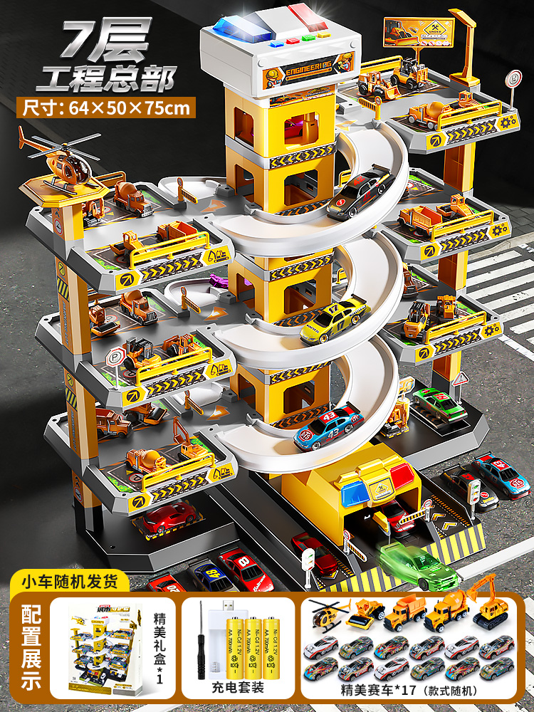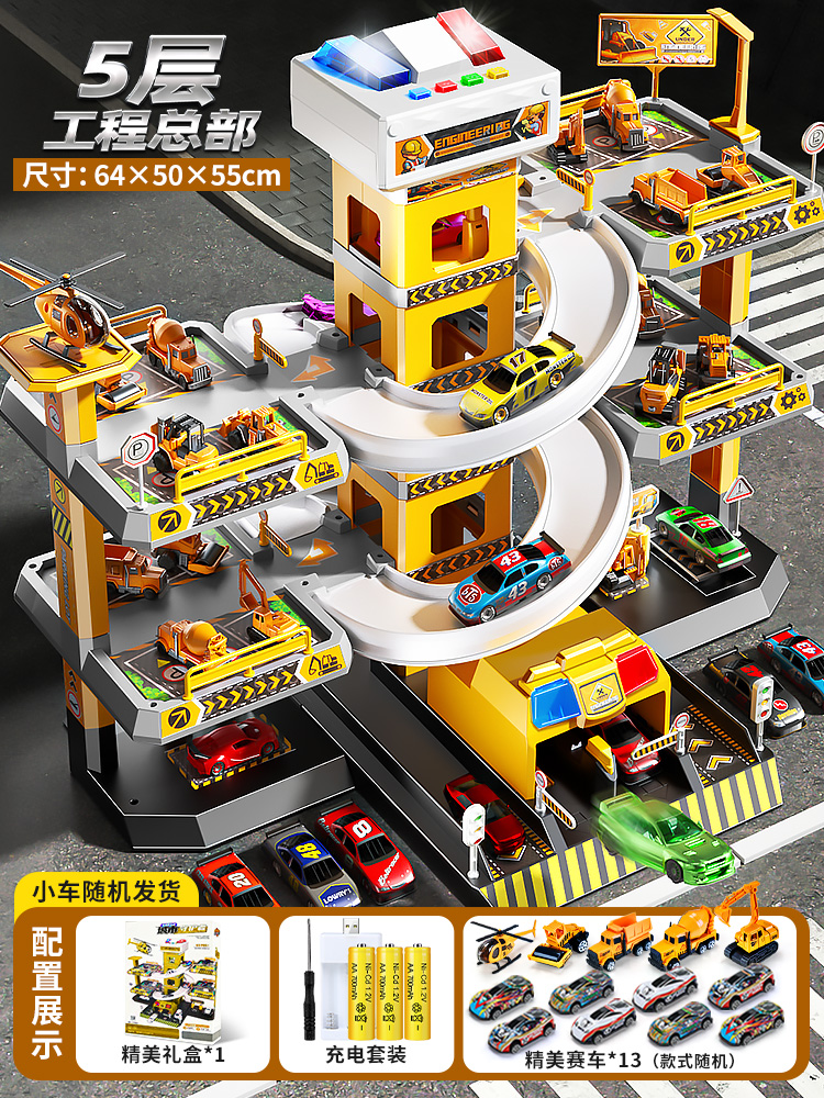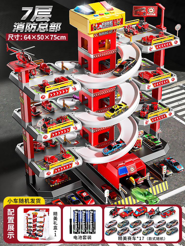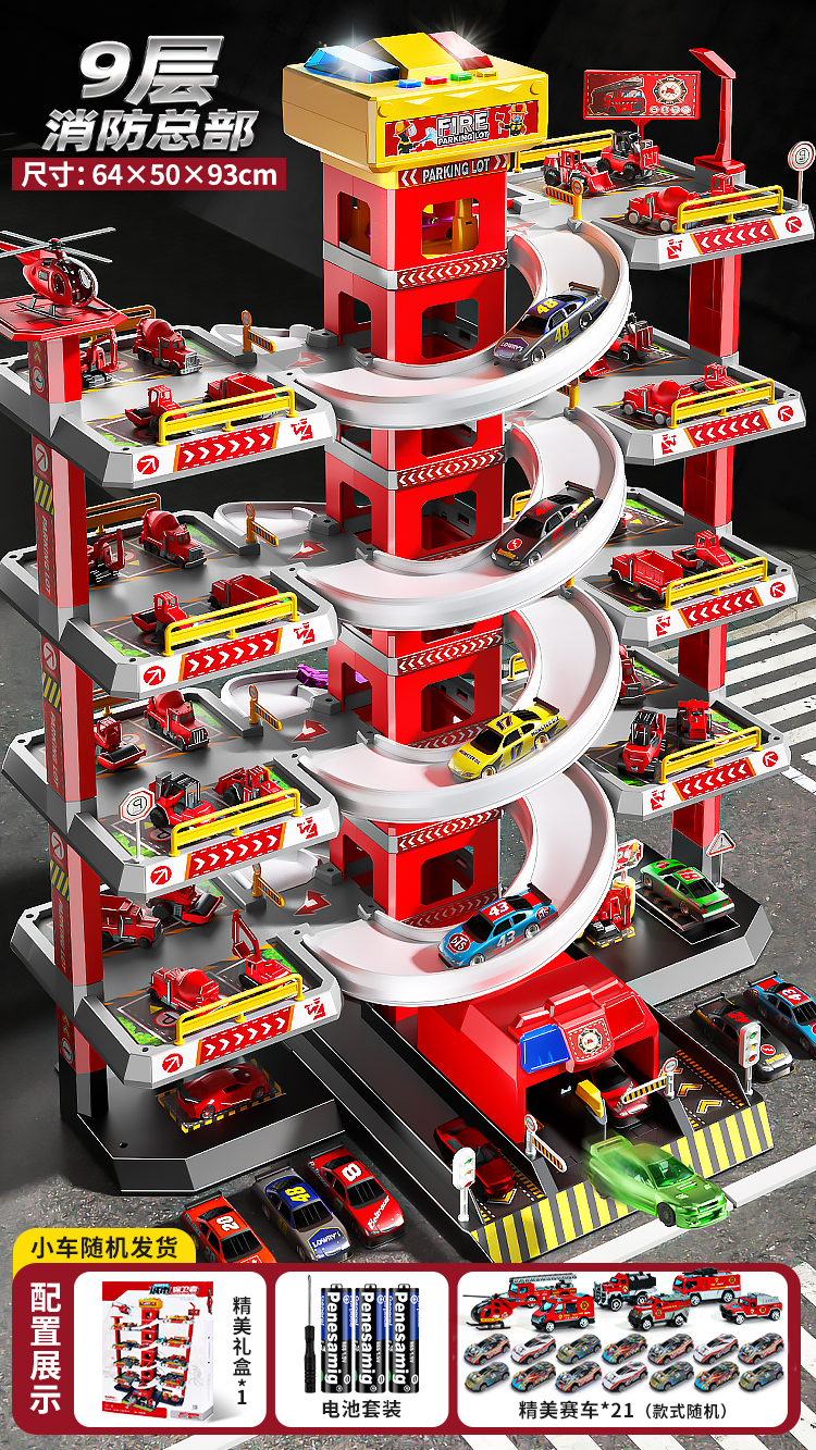 轨道车停车场大楼玩具车小汽车消防3-4岁儿童6益智男孩工程车礼物