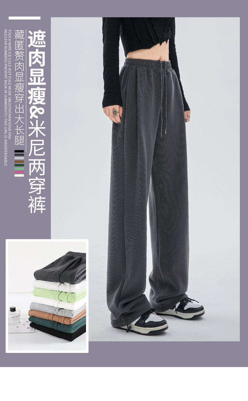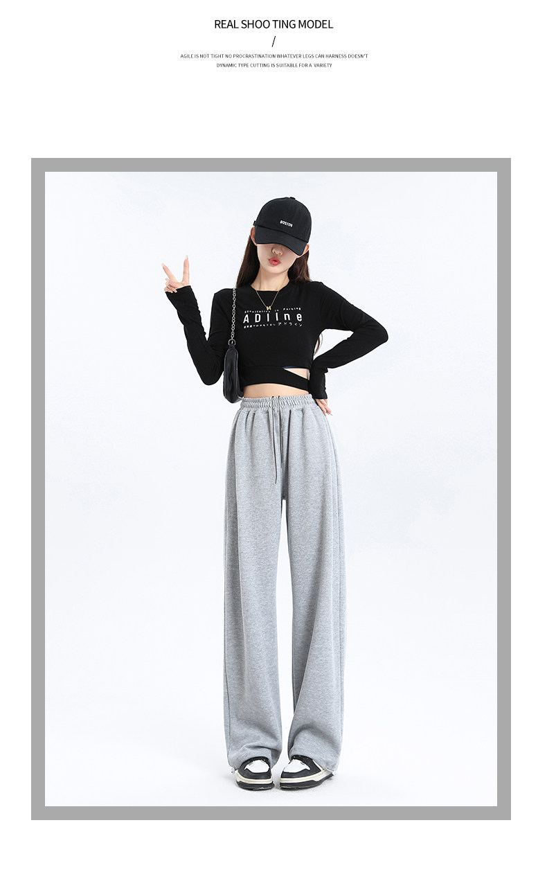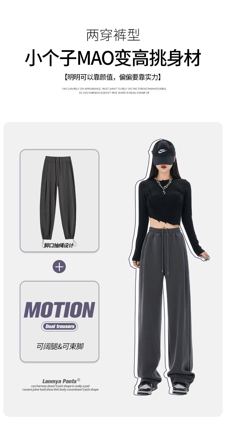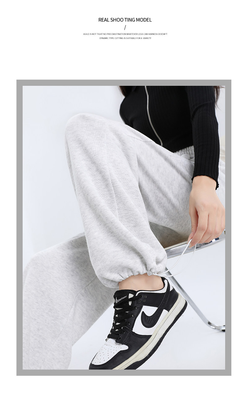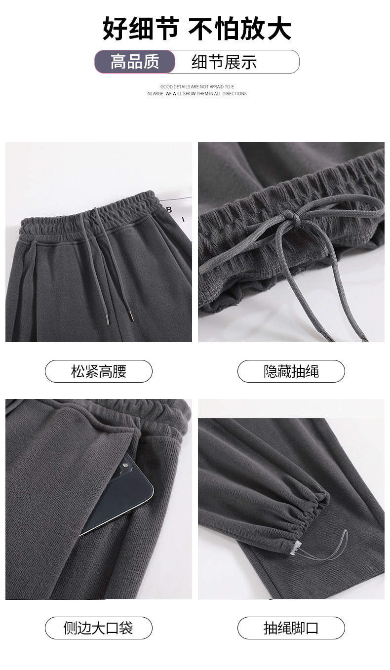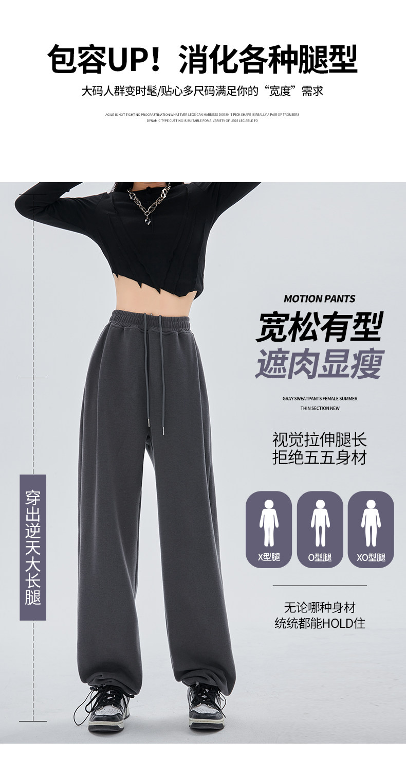 灰色运动裤女春秋宽松直筒束脚休闲美式卫裤小个子秋冬加绒阔腿裤