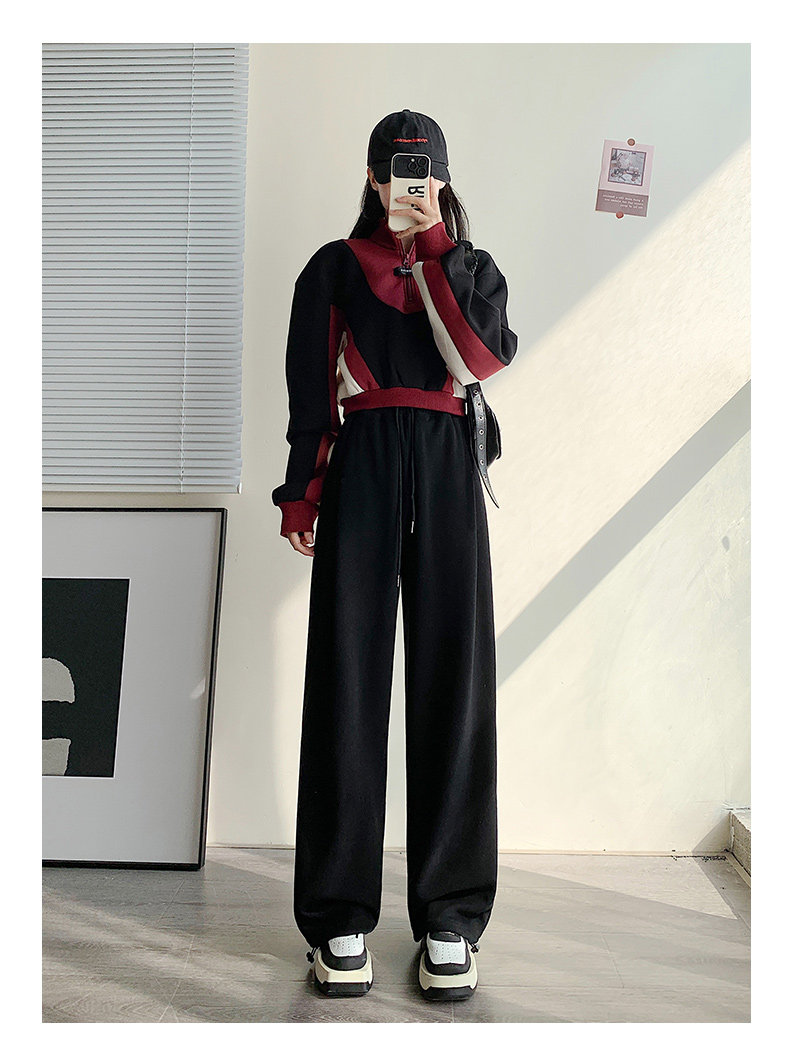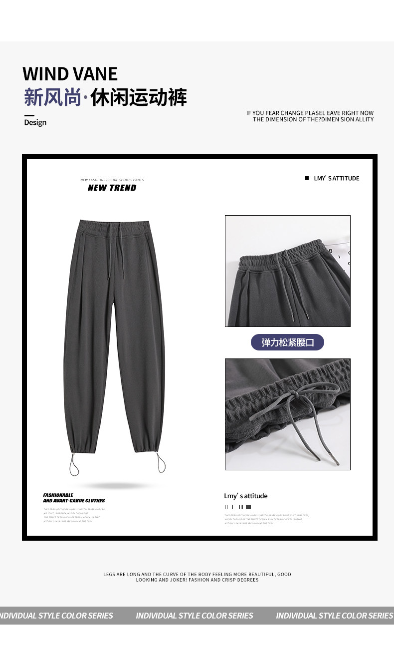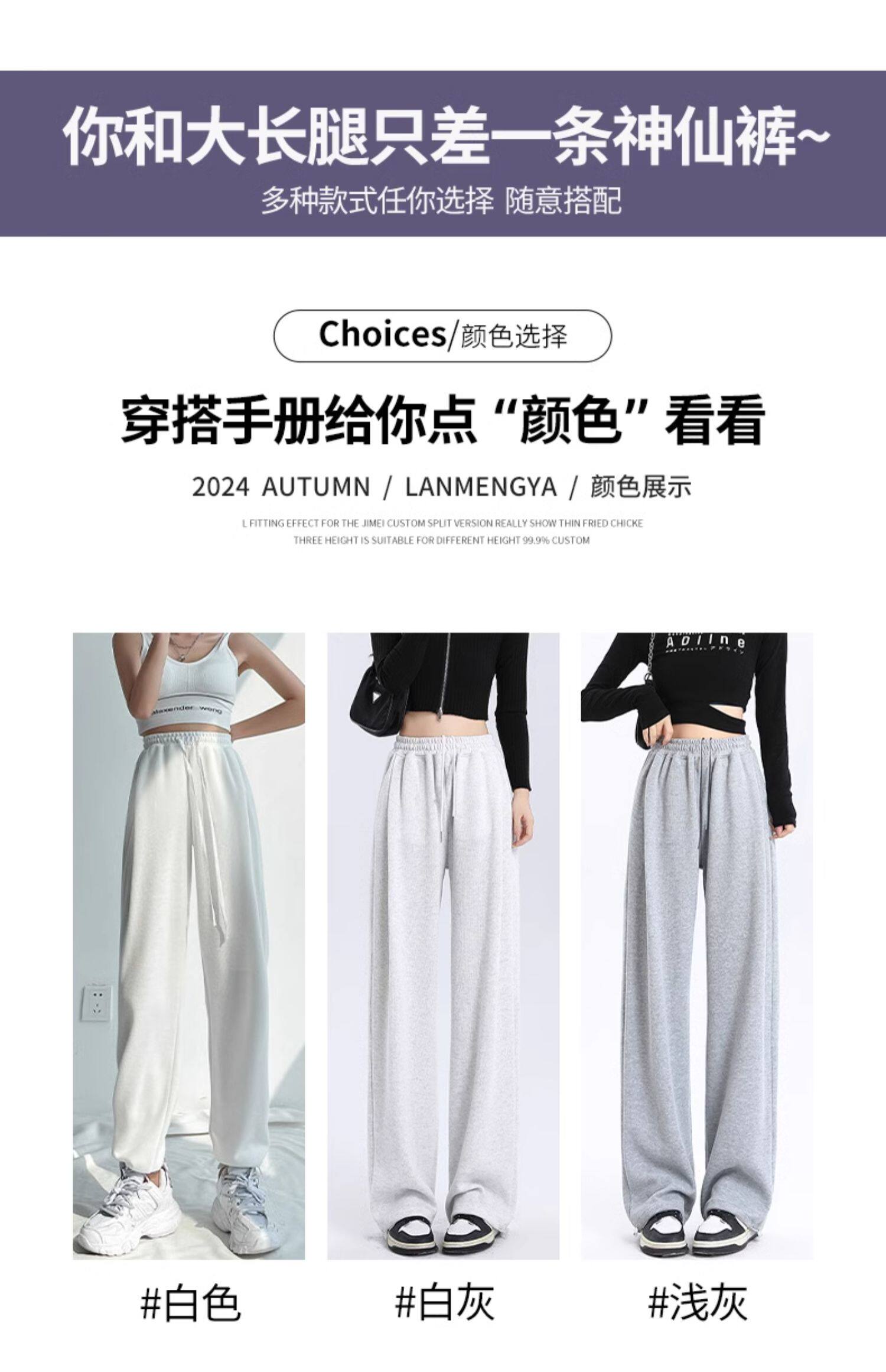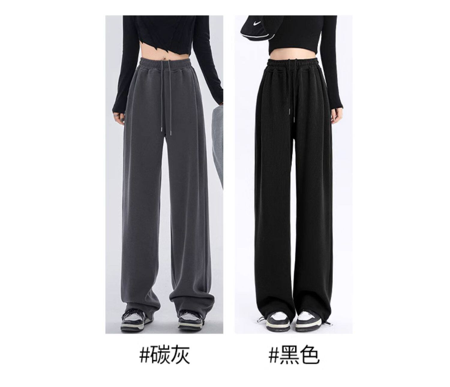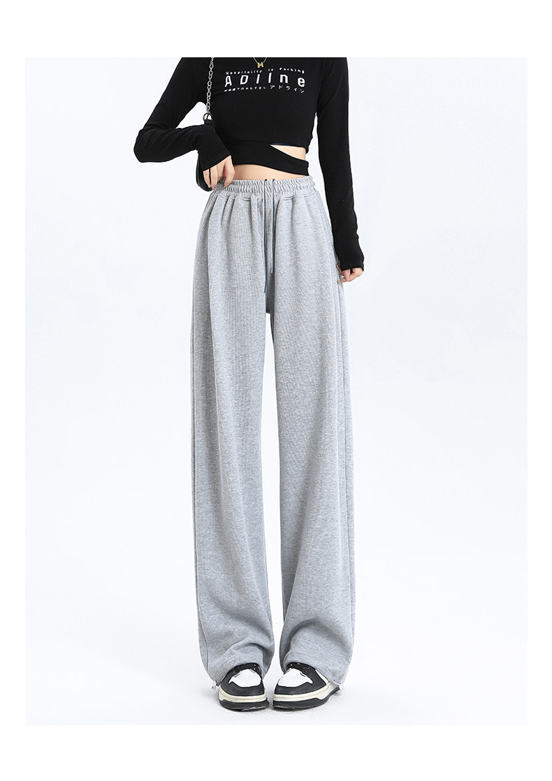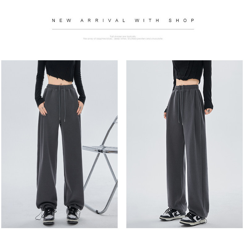 灰色运动裤女春秋宽松直筒束脚休闲美式卫裤小个子秋冬加绒阔腿裤