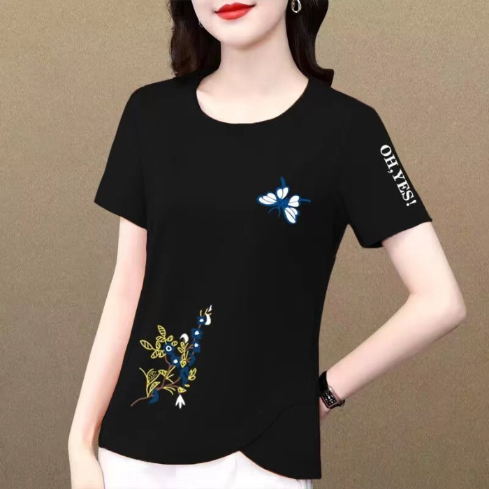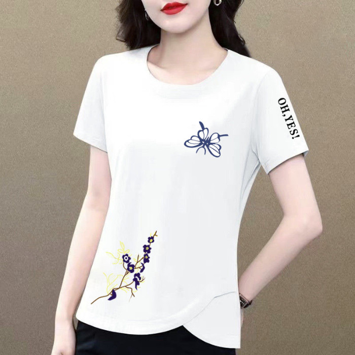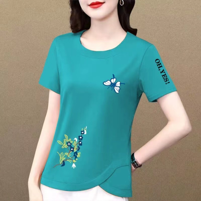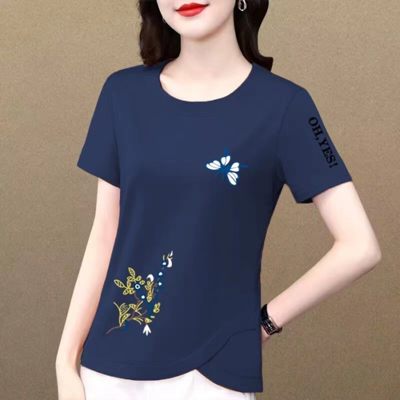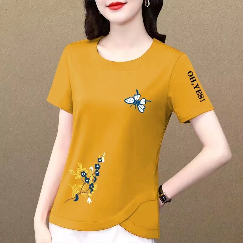 纯棉短袖t恤女2026新款时尚中年妈妈洋气夏装不规则上衣减龄小衫