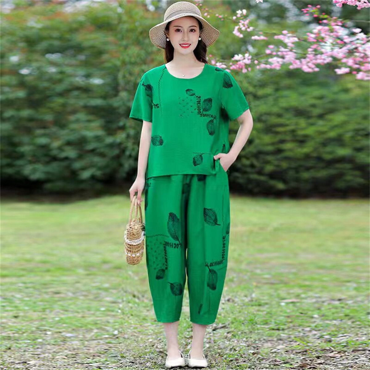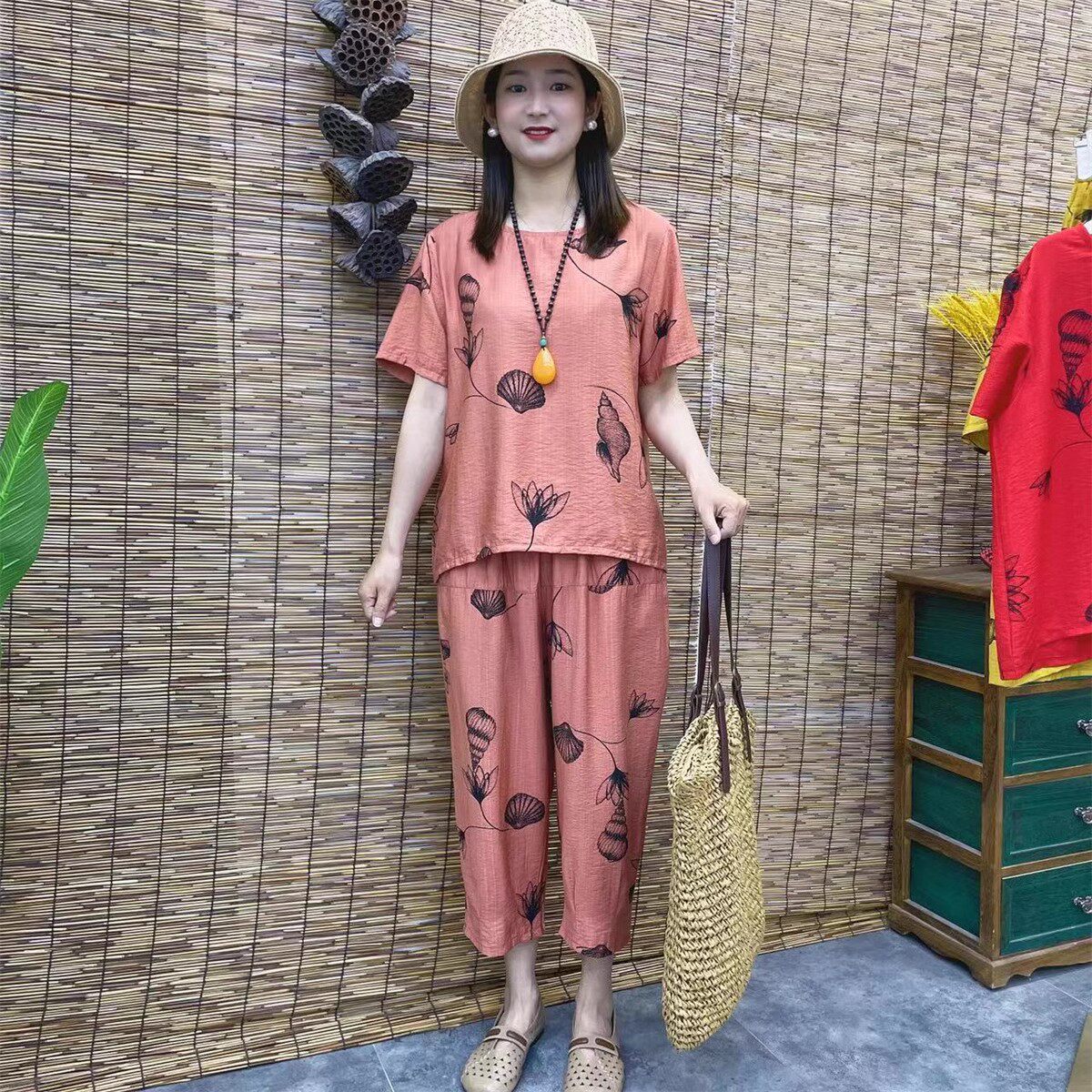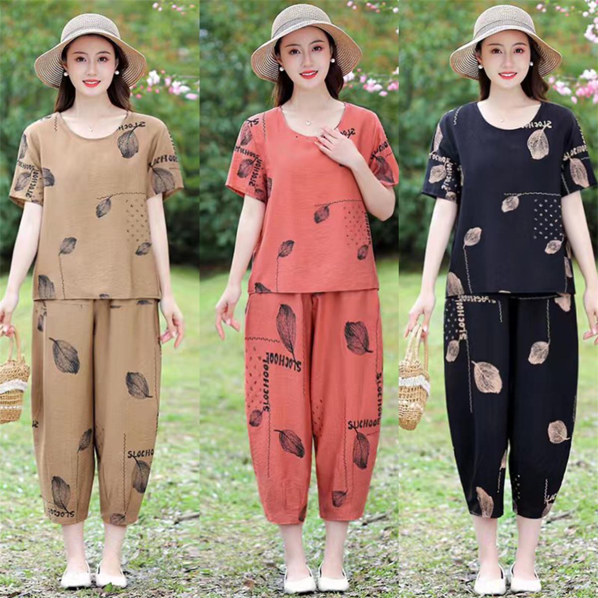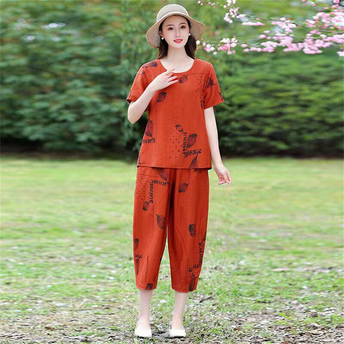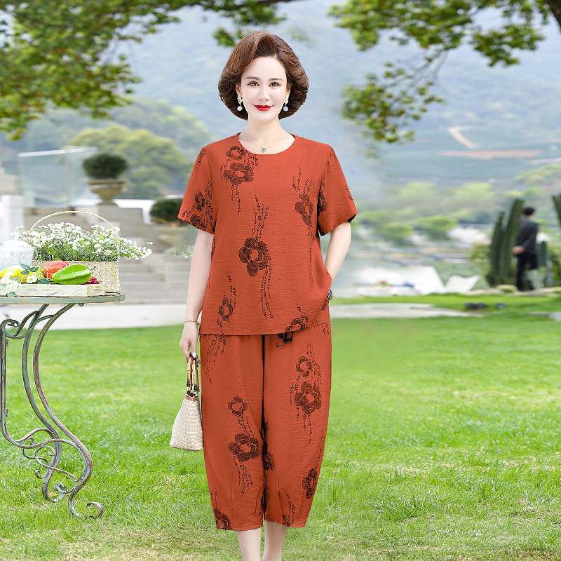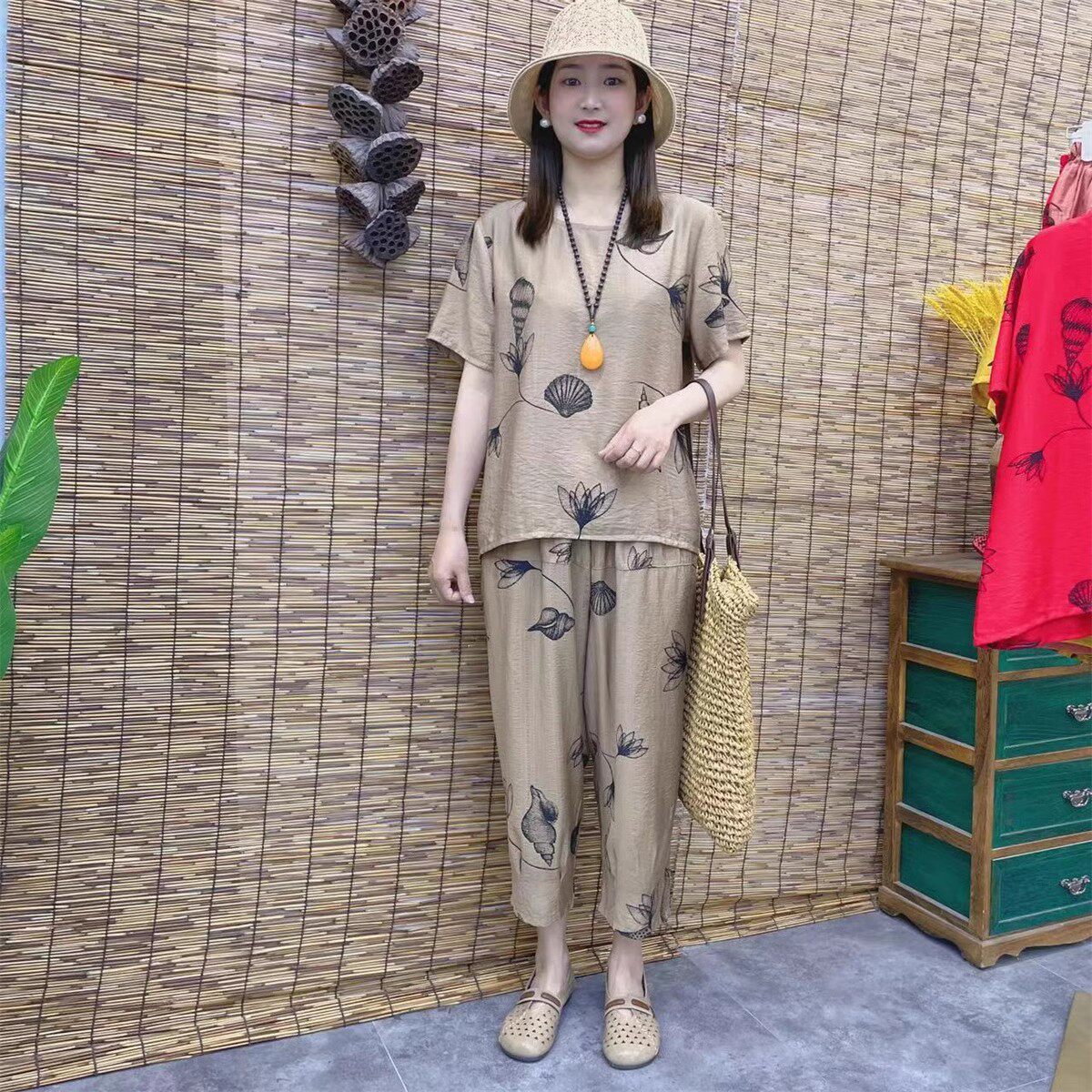 冰丝棉麻套装女中年妈妈夏装2026新款短袖中老年人大码休闲两件套