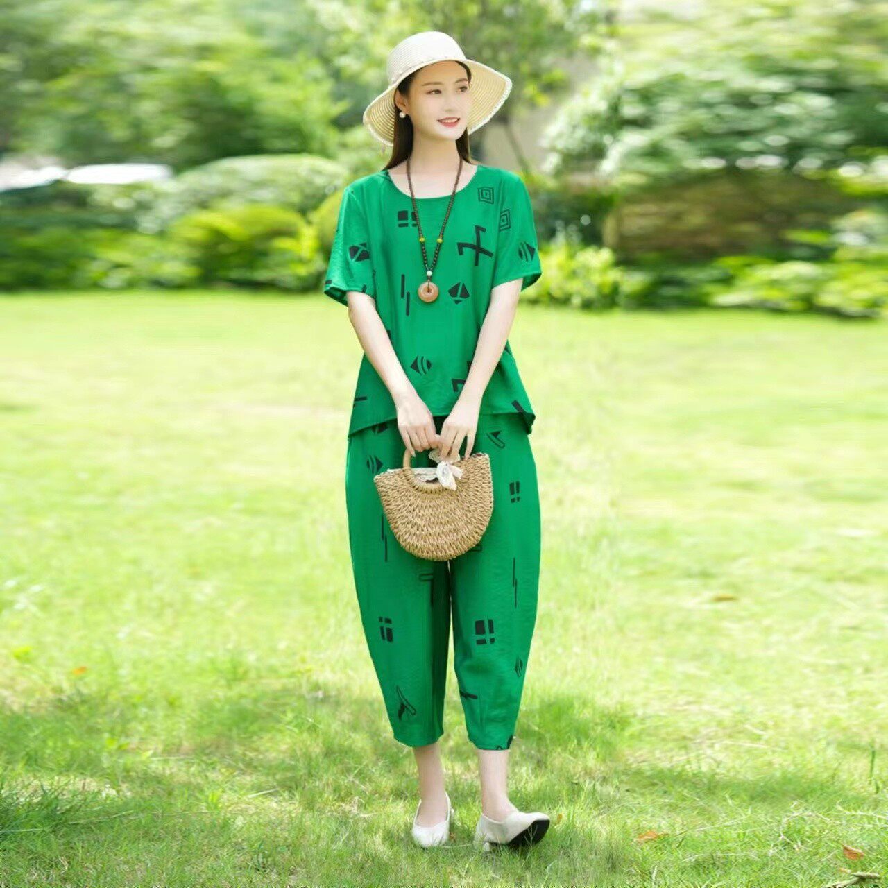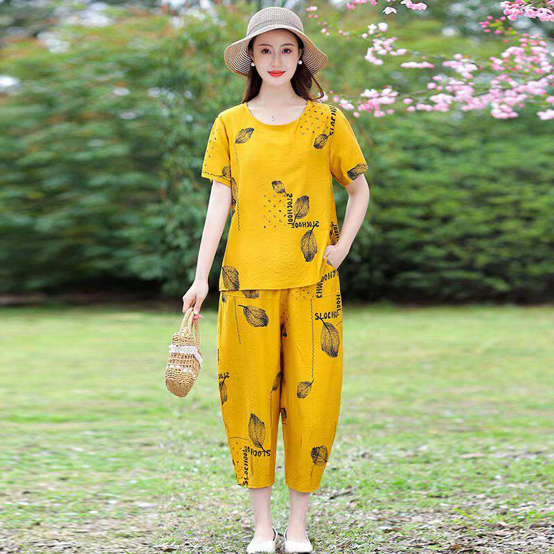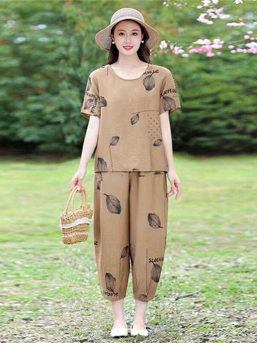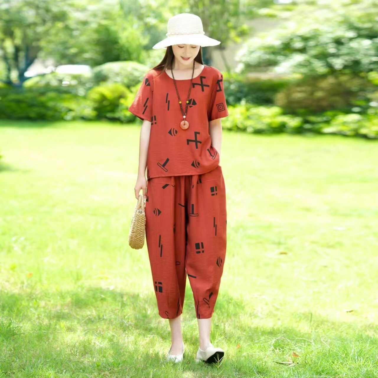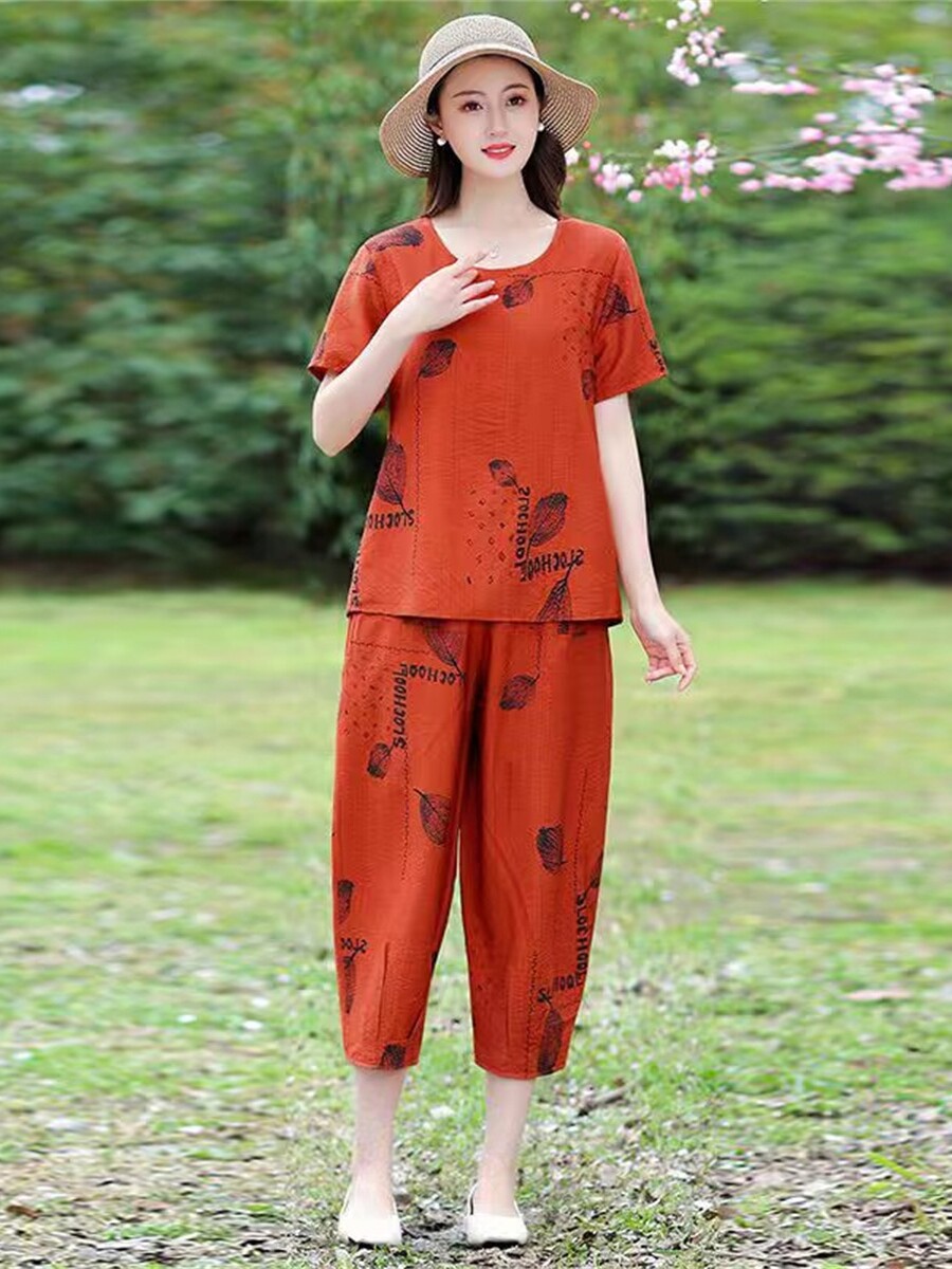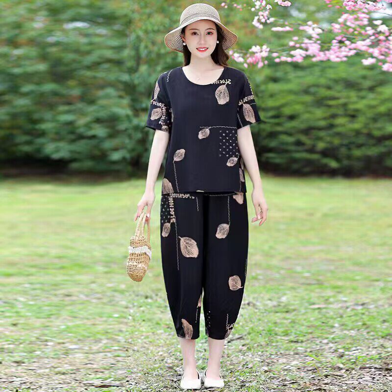 冰丝棉麻套装女中年妈妈夏装2026新款短袖中老年人大码休闲两件套