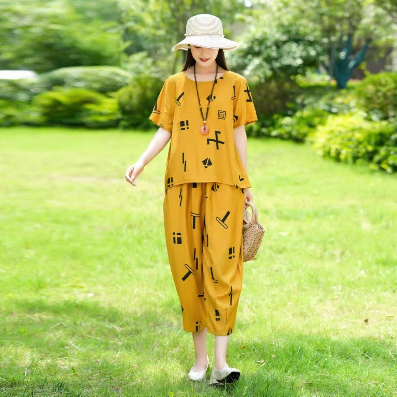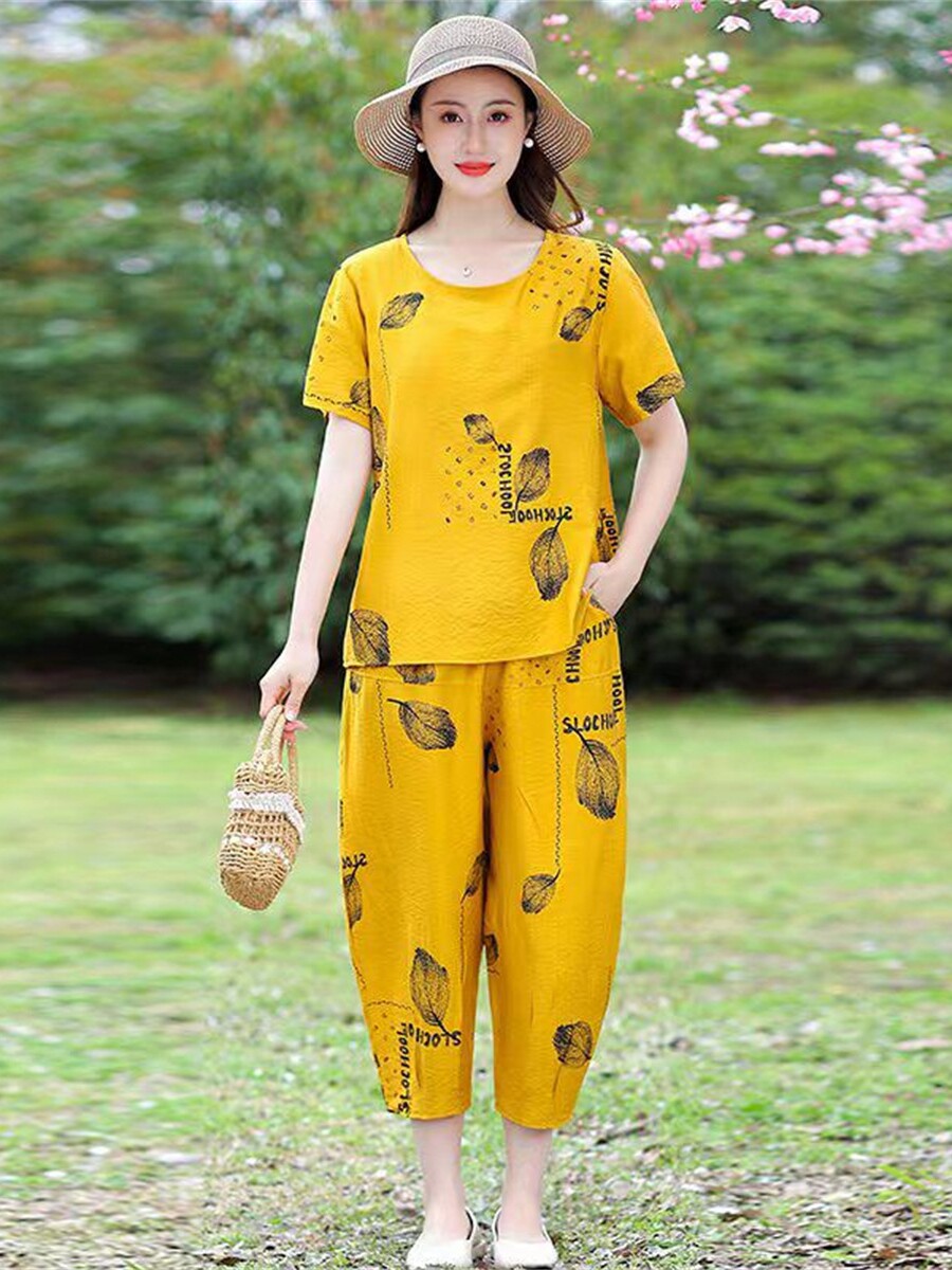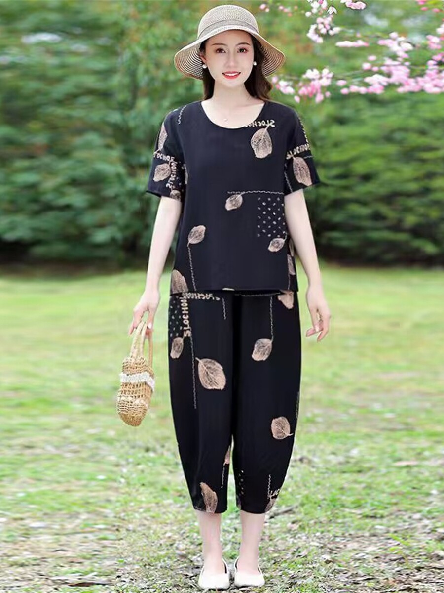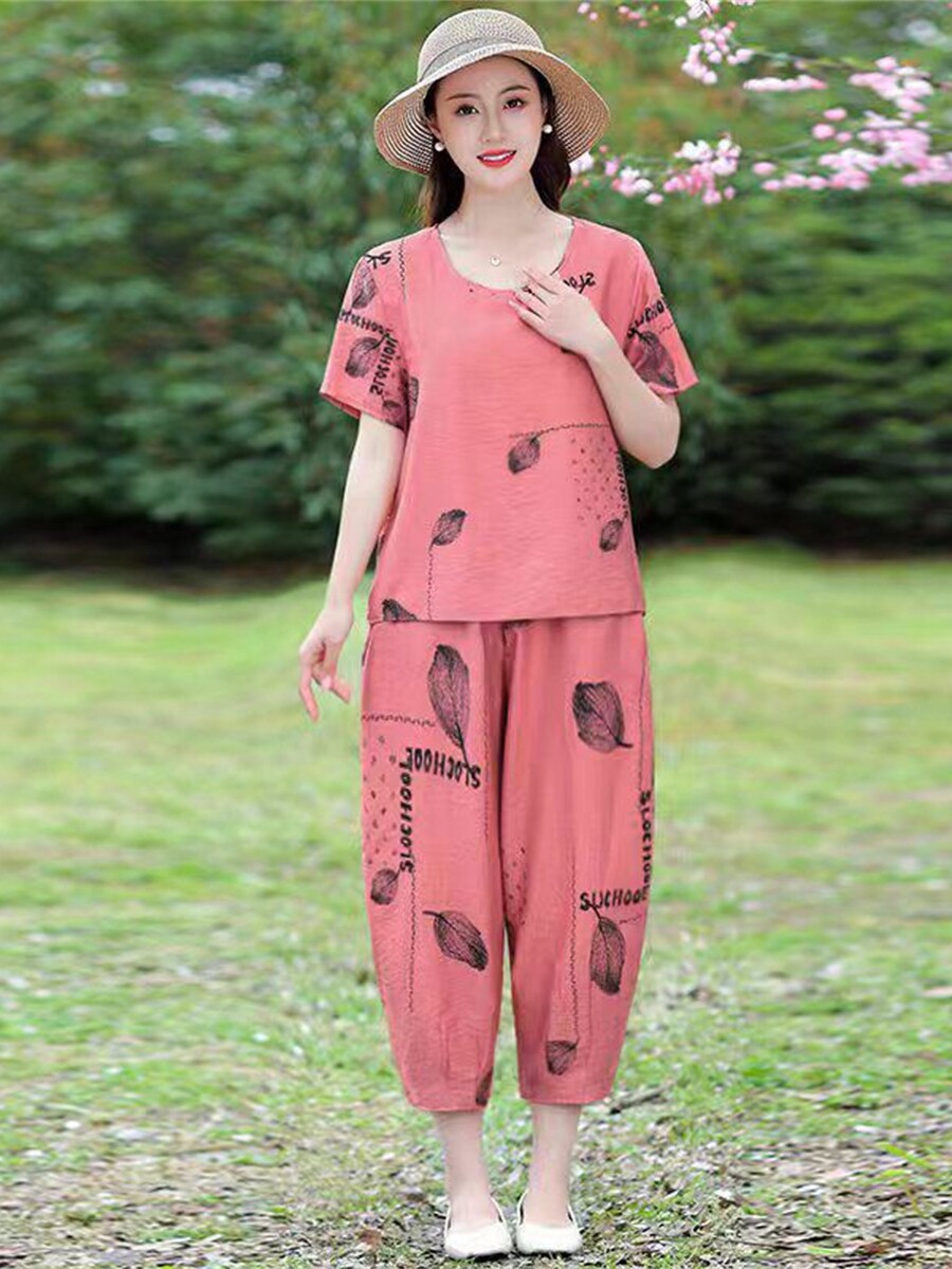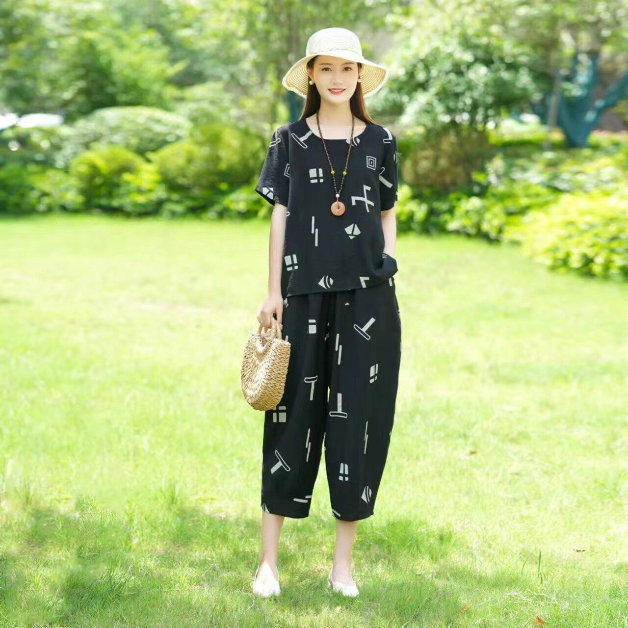 冰丝棉麻套装女中年妈妈夏装2026新款短袖中老年人大码休闲两件套