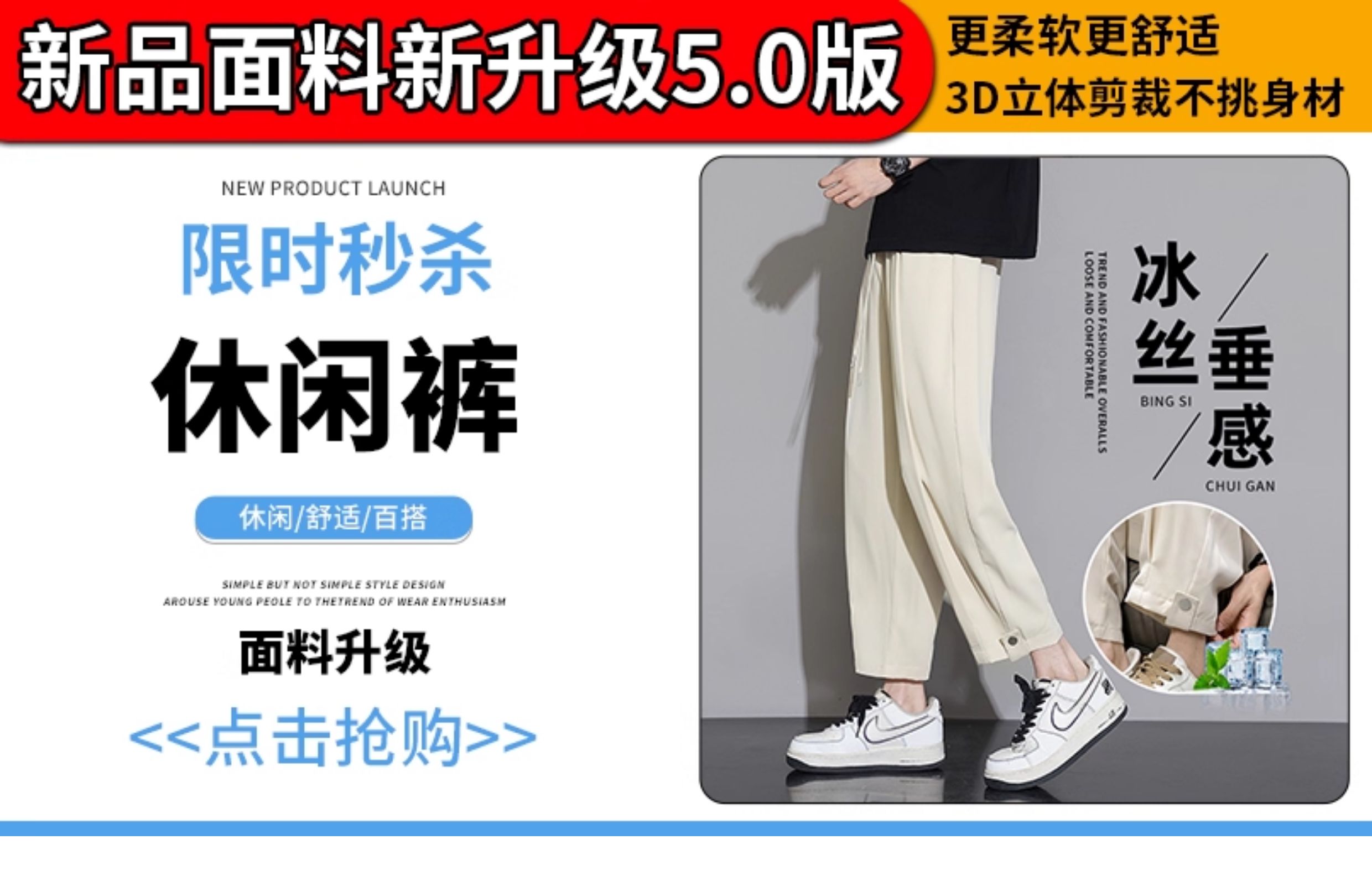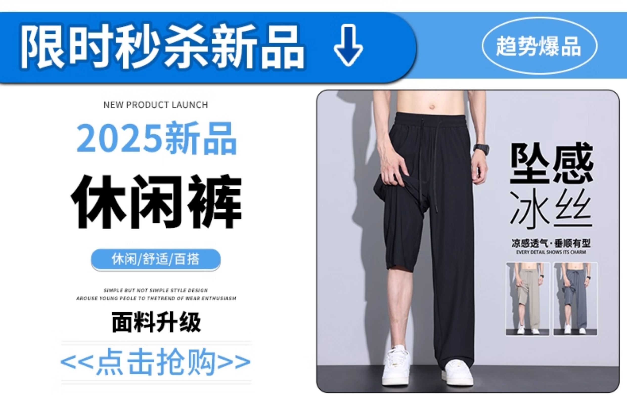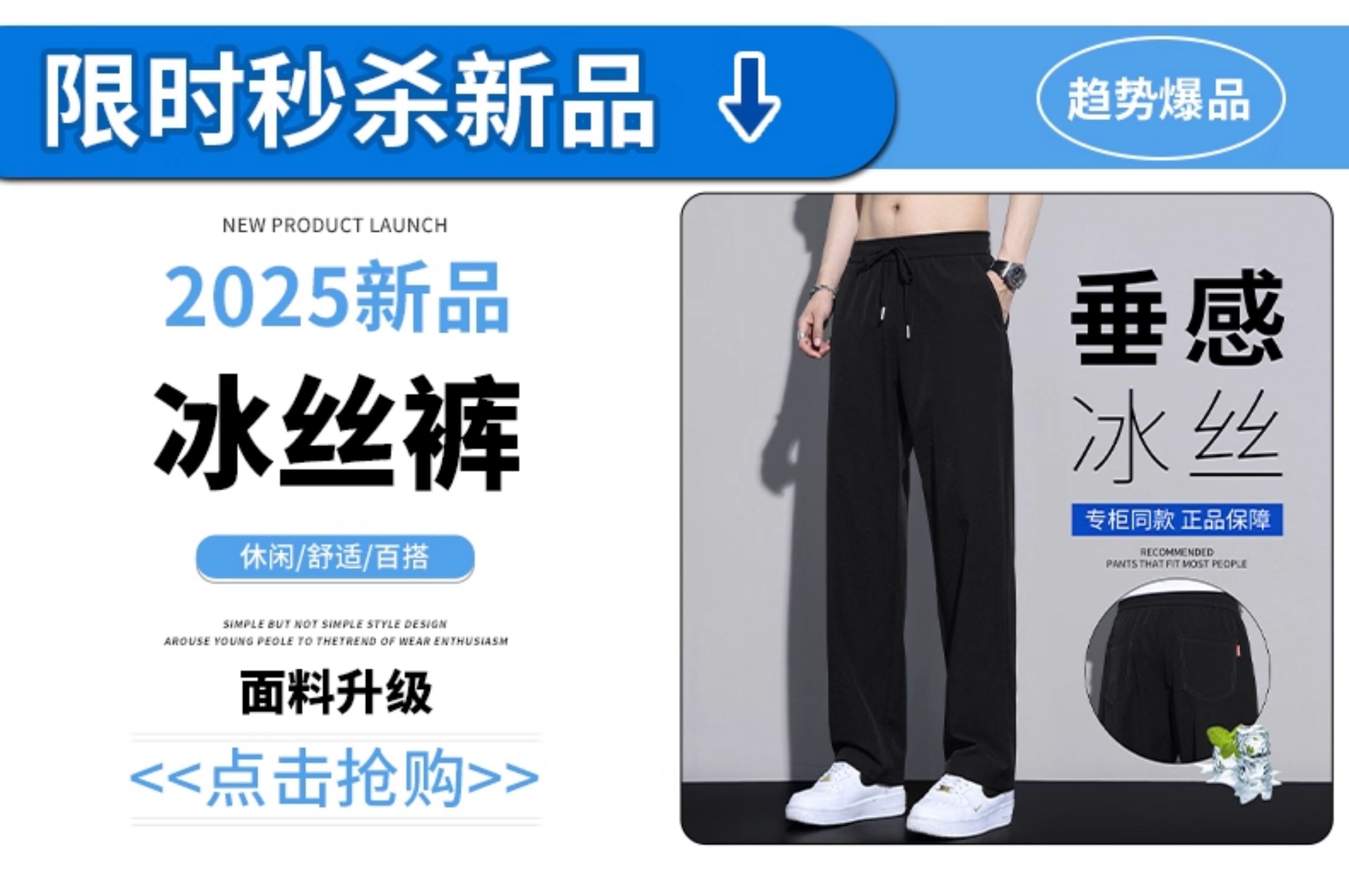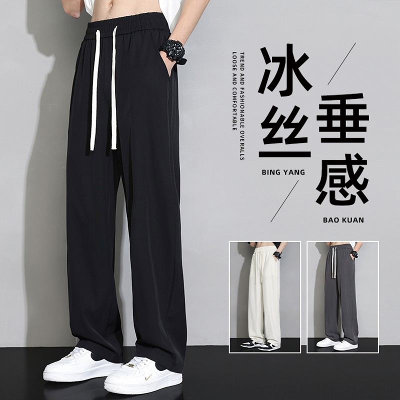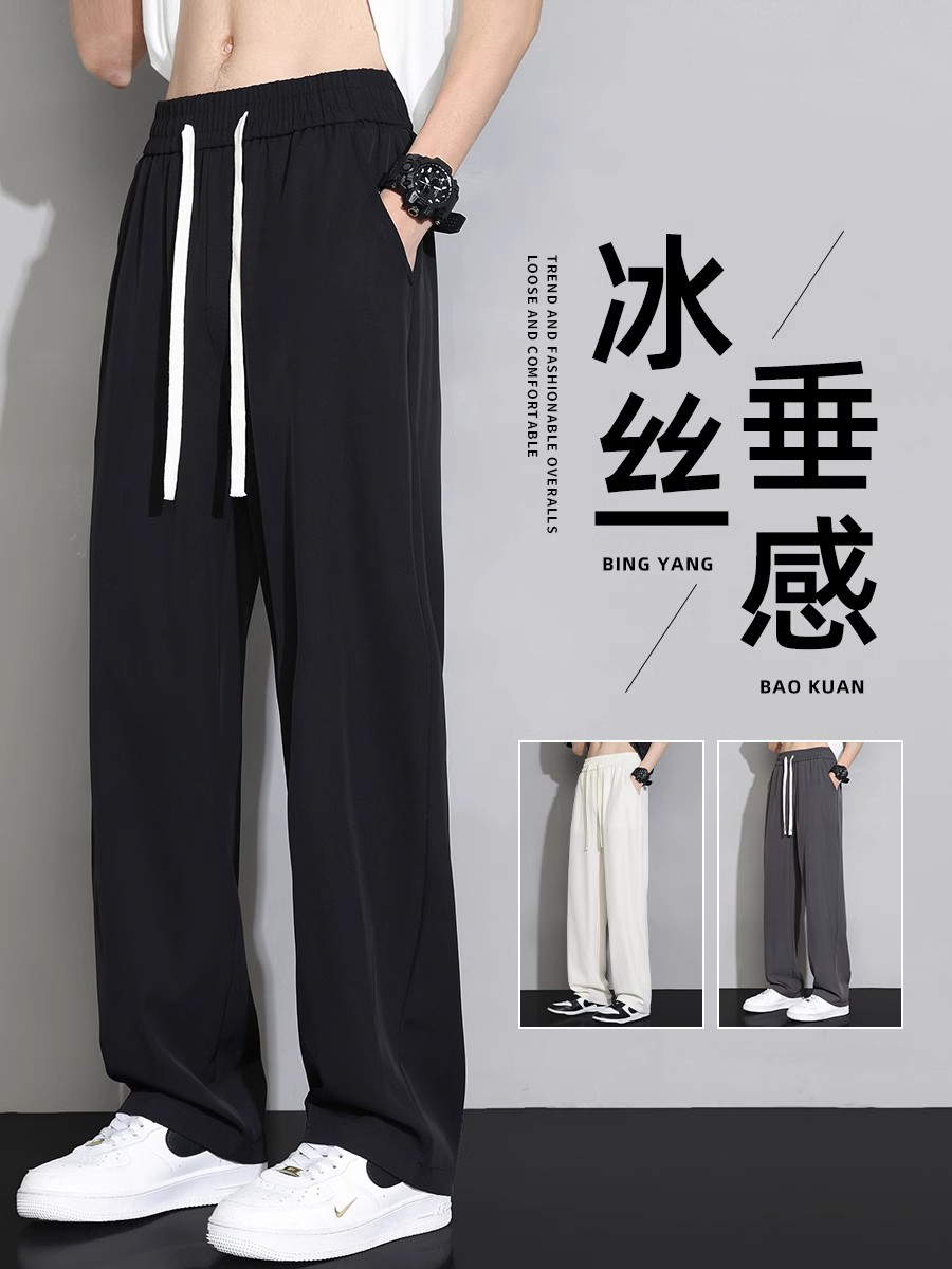 冰丝阔腿裤男生2025新款夏季薄款速干男士休闲长裤子宽松直筒秋季