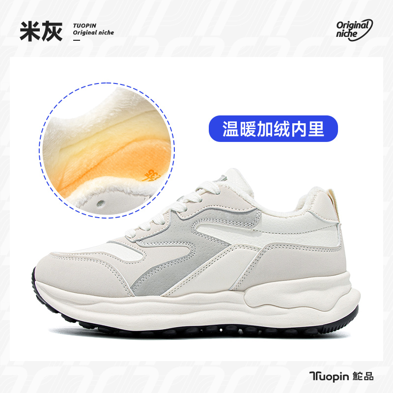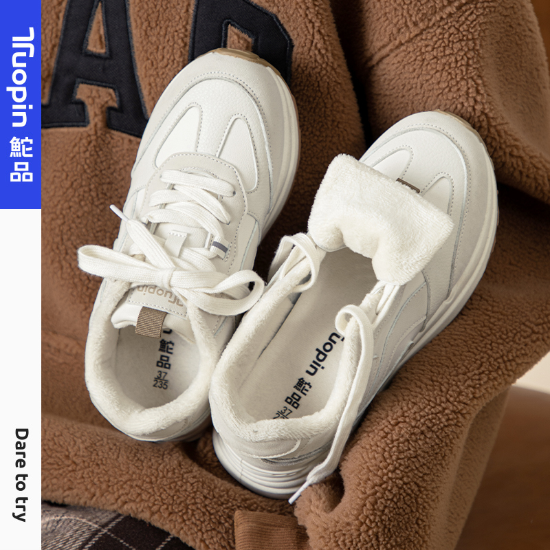 鮀品运动鞋女2025秋冬加绒新款厚底保暖百搭休闲跑步二棉老爹鞋子