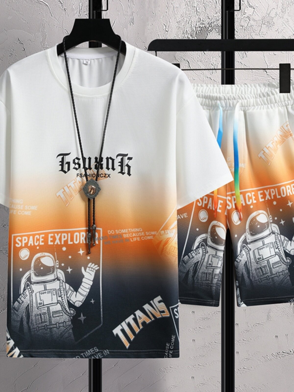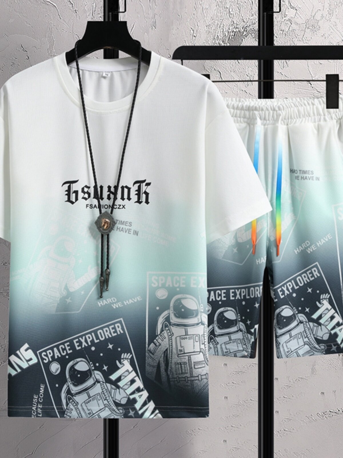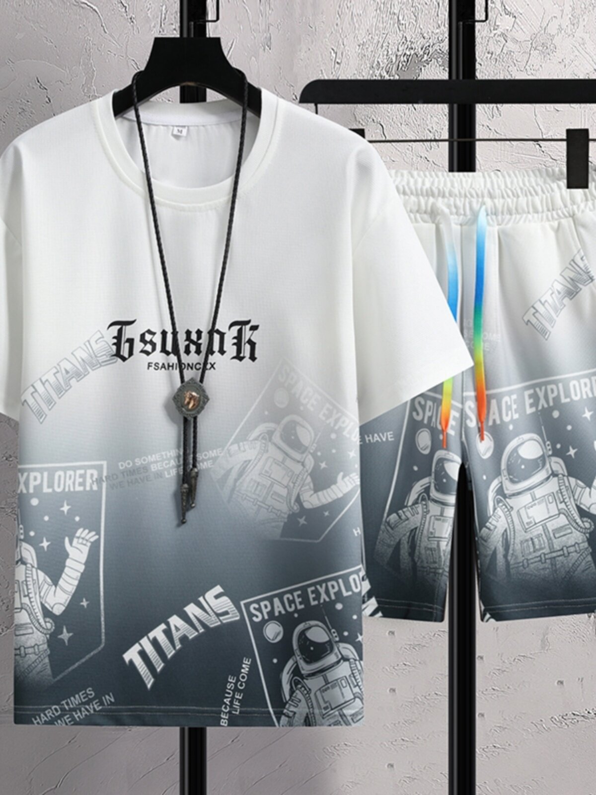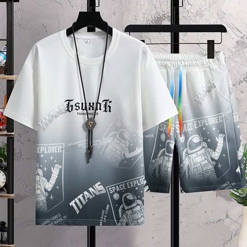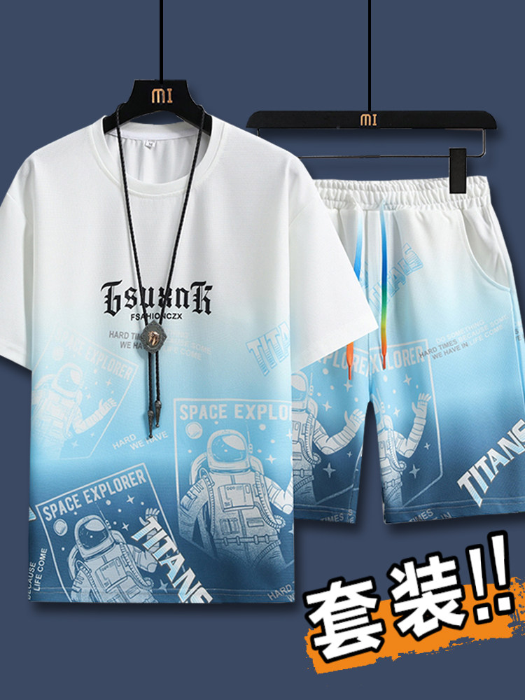 休闲运动套装男士夏季2026新款搭配帅气青少年夏装冰丝短袖+短裤