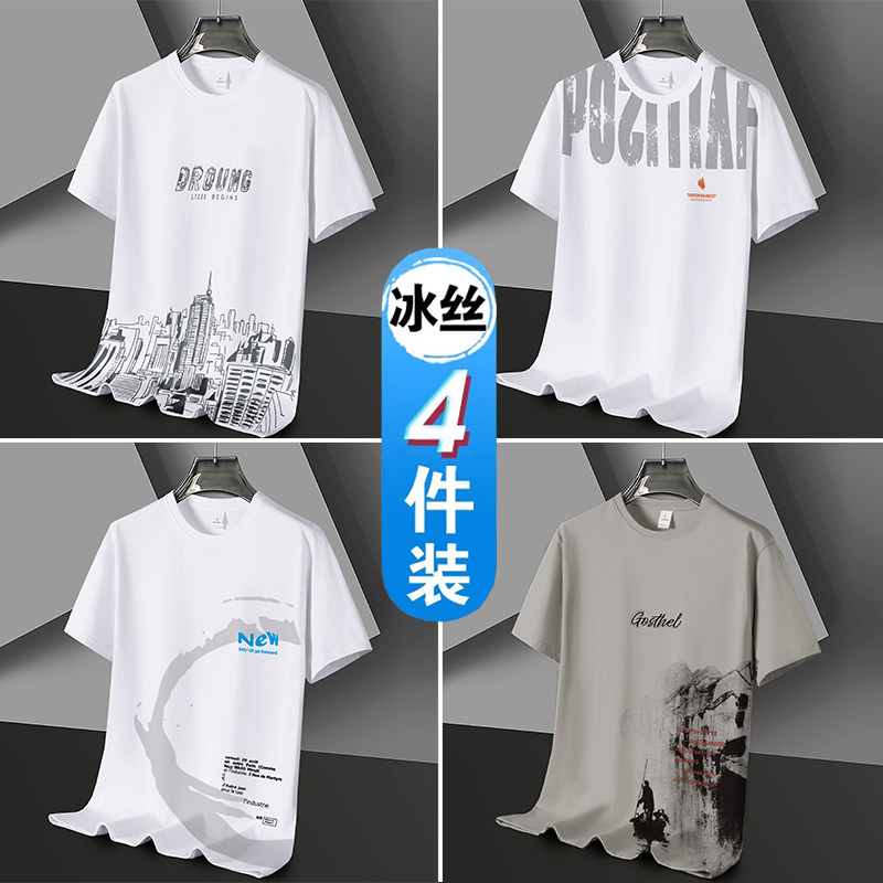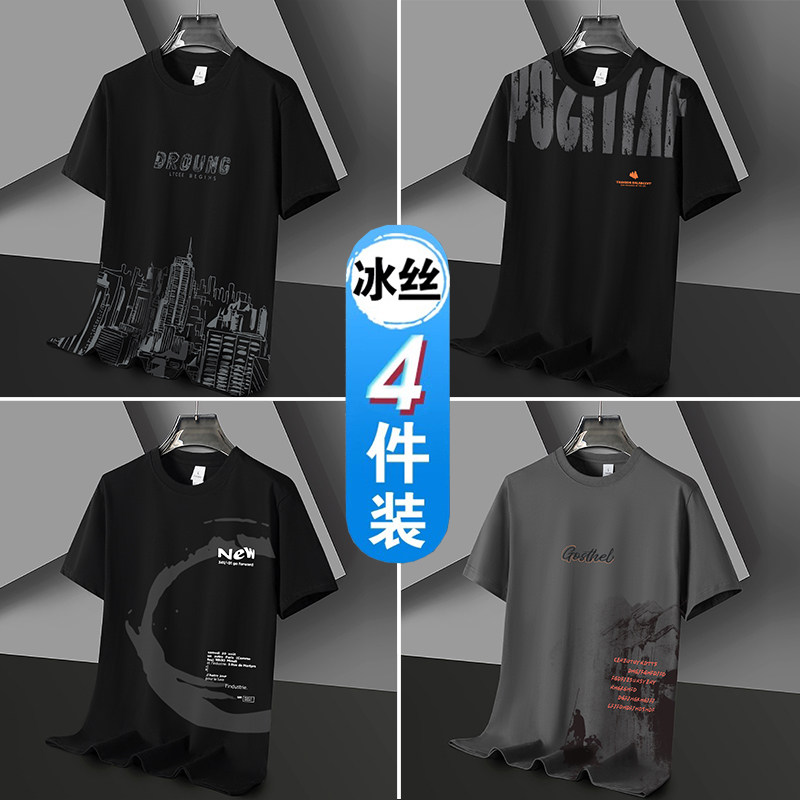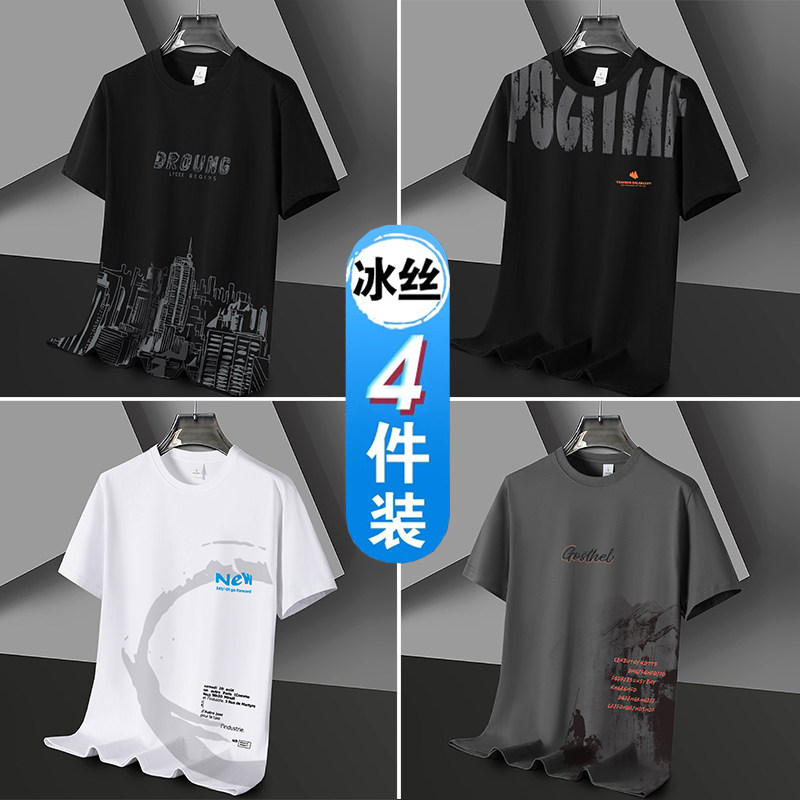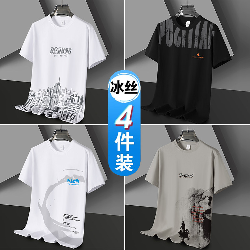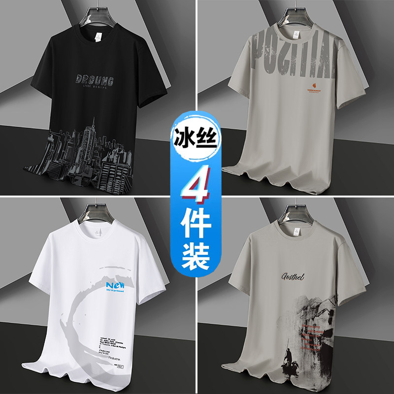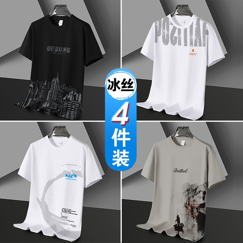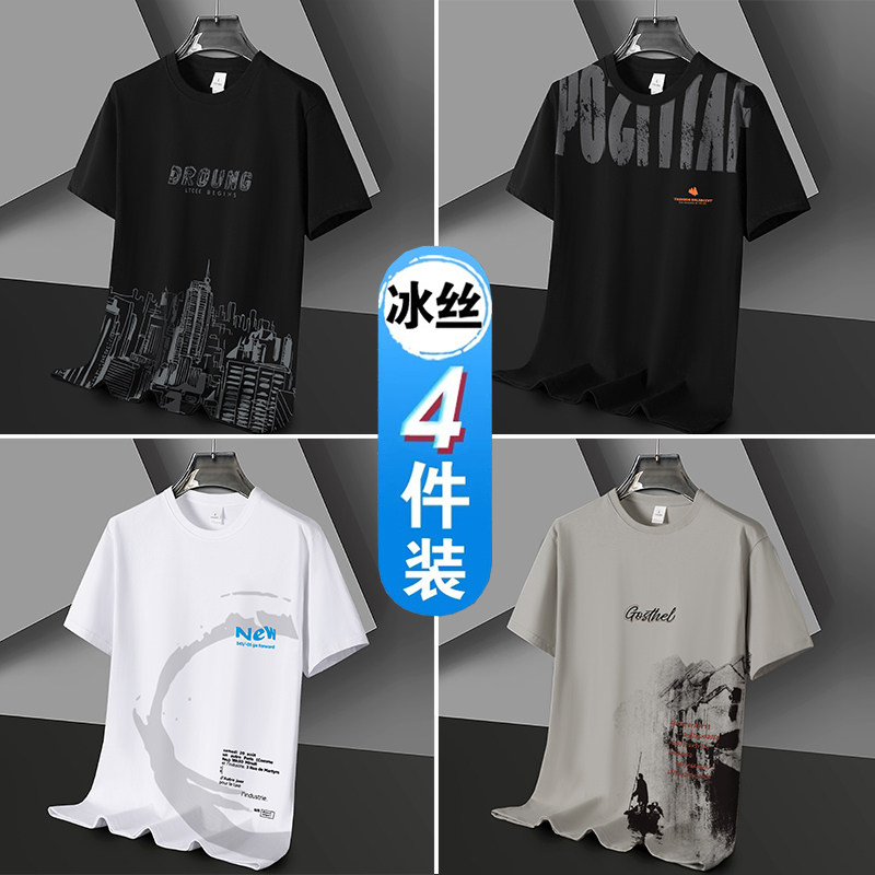 凉感冰丝短袖t恤男士潮流潮牌半袖体恤宽松2026新款青年学生衣服