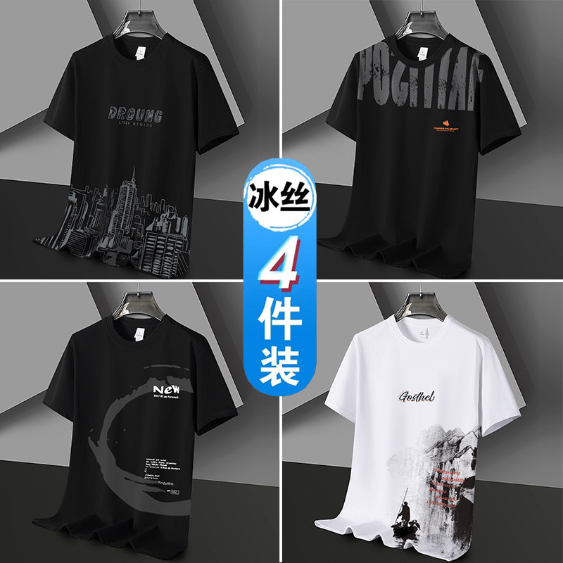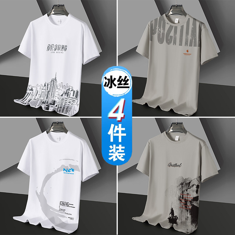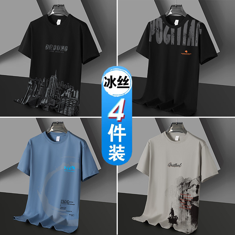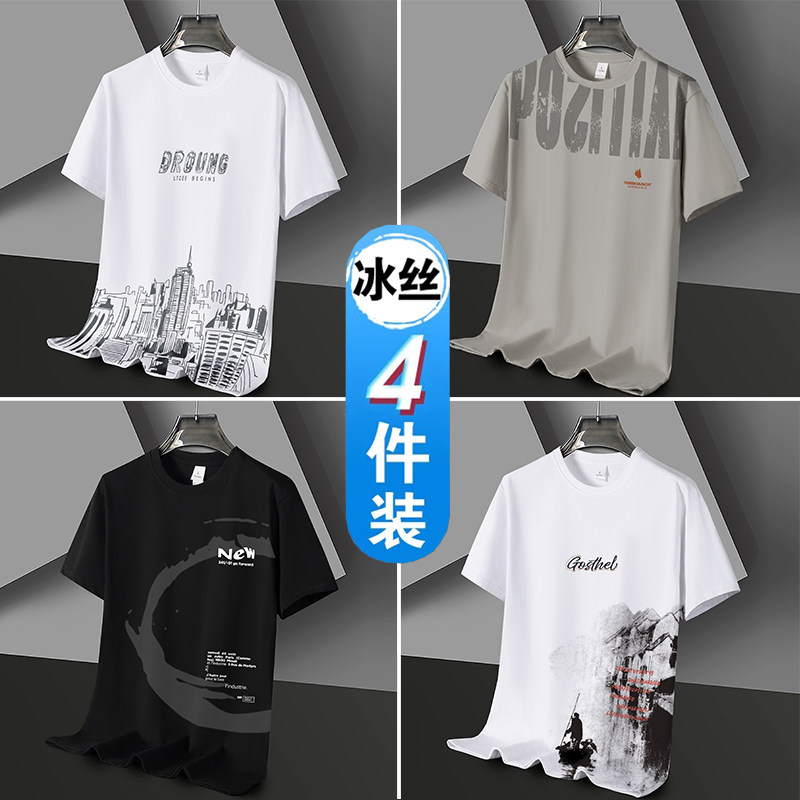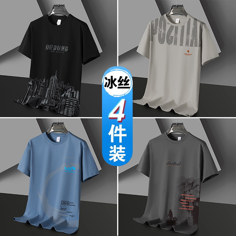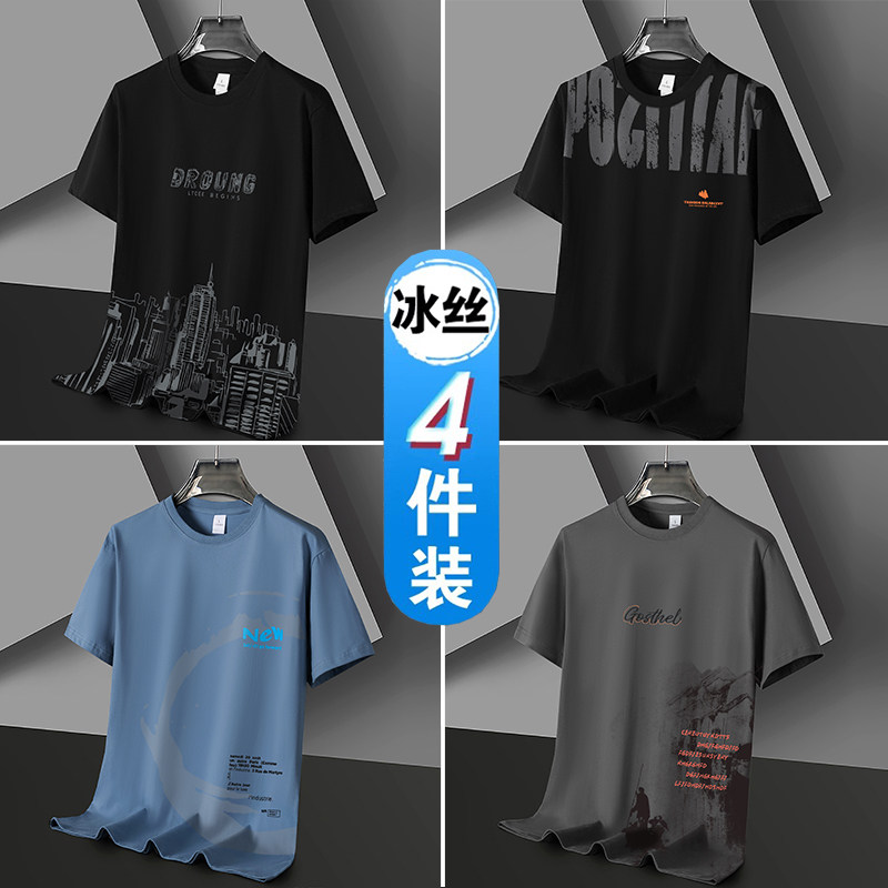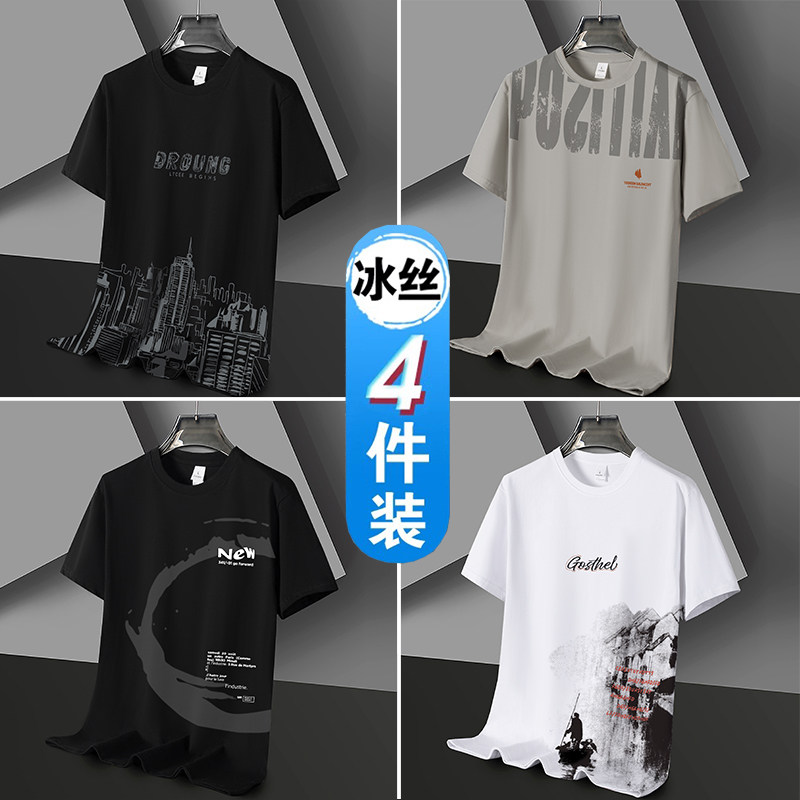 凉感冰丝短袖t恤男士潮流潮牌半袖体恤宽松2026新款青年学生衣服