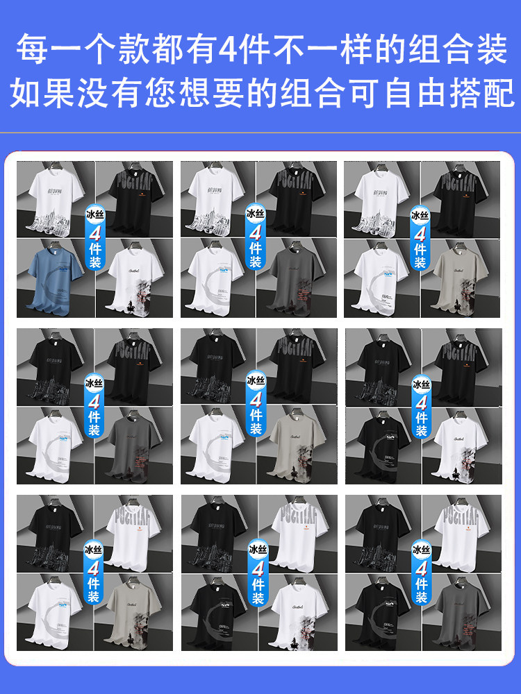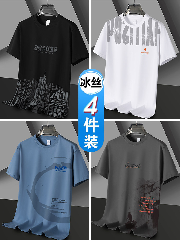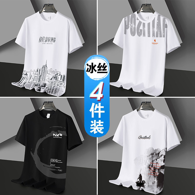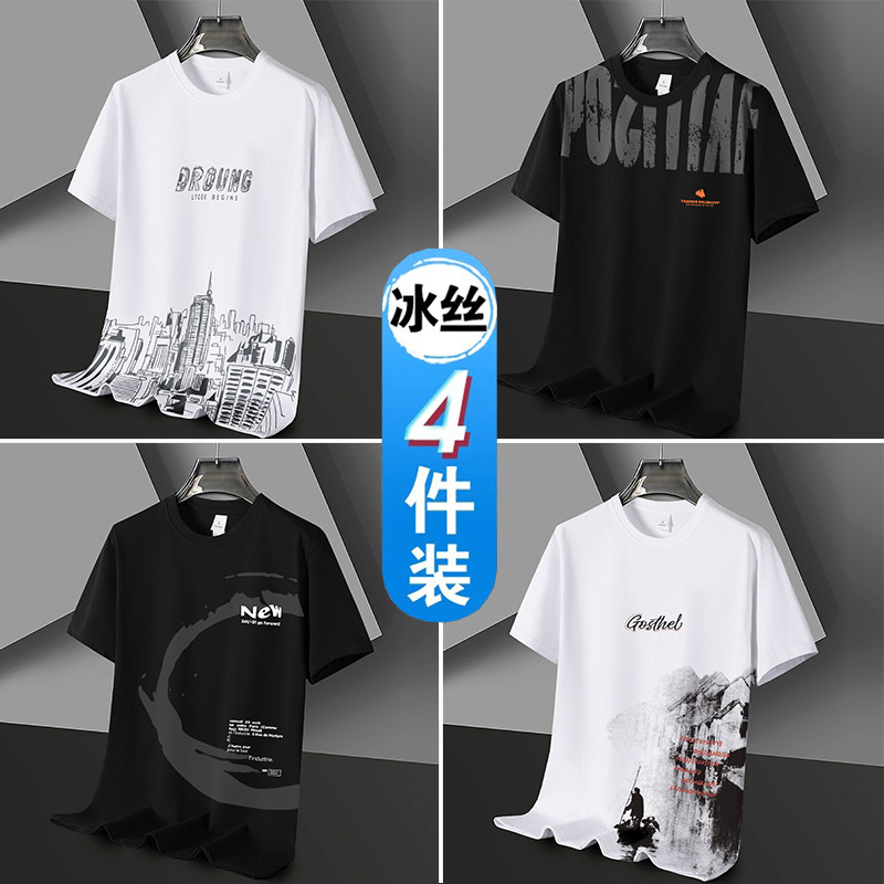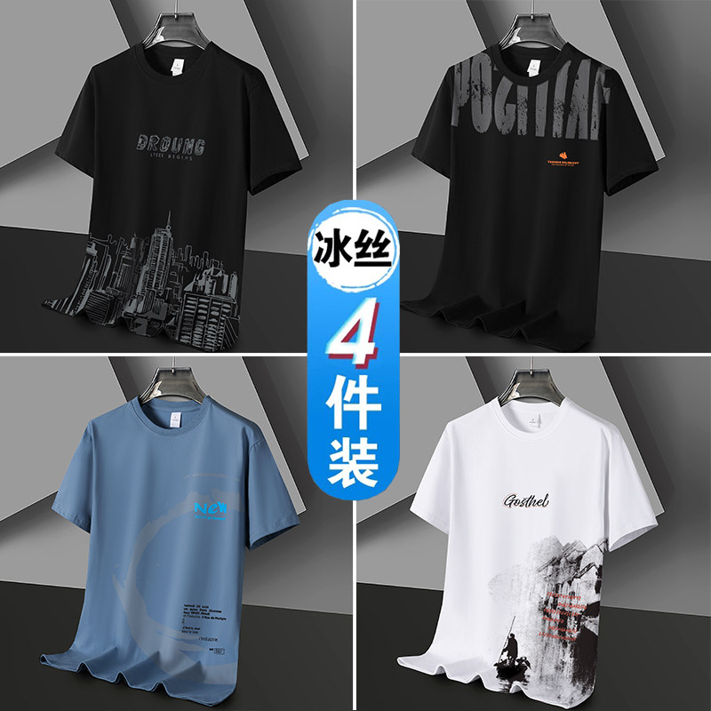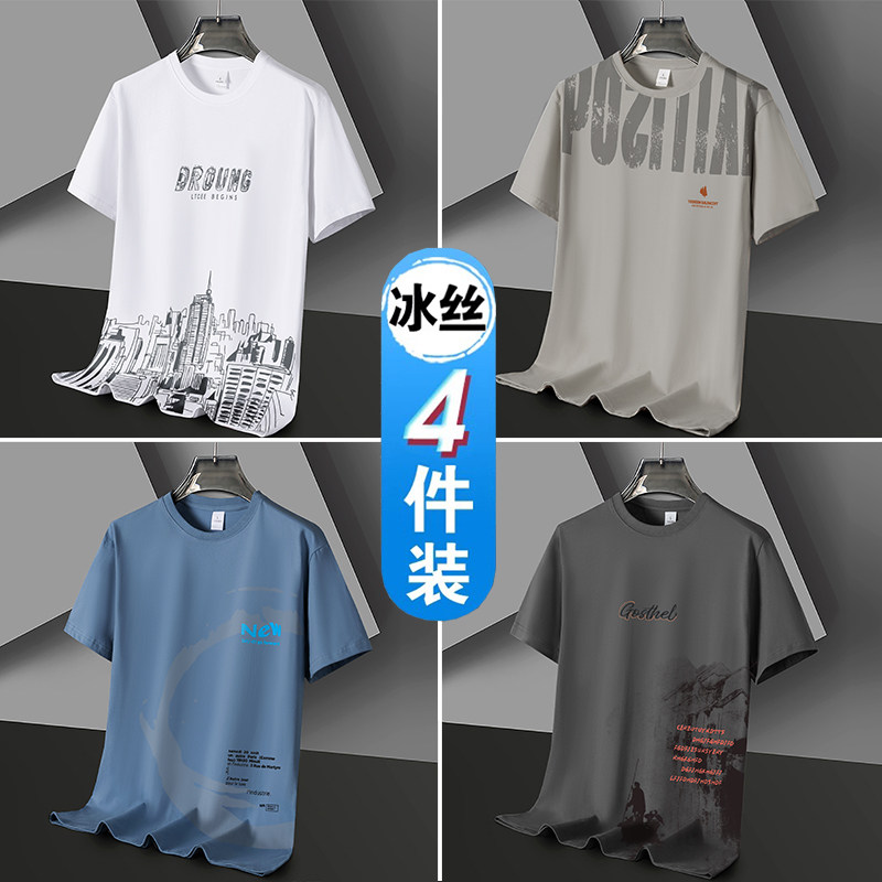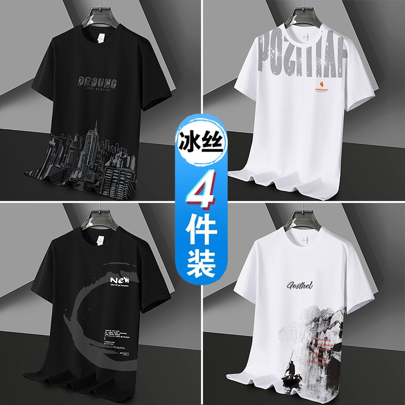 凉感冰丝短袖t恤男士潮流潮牌半袖体恤宽松2026新款青年学生衣服