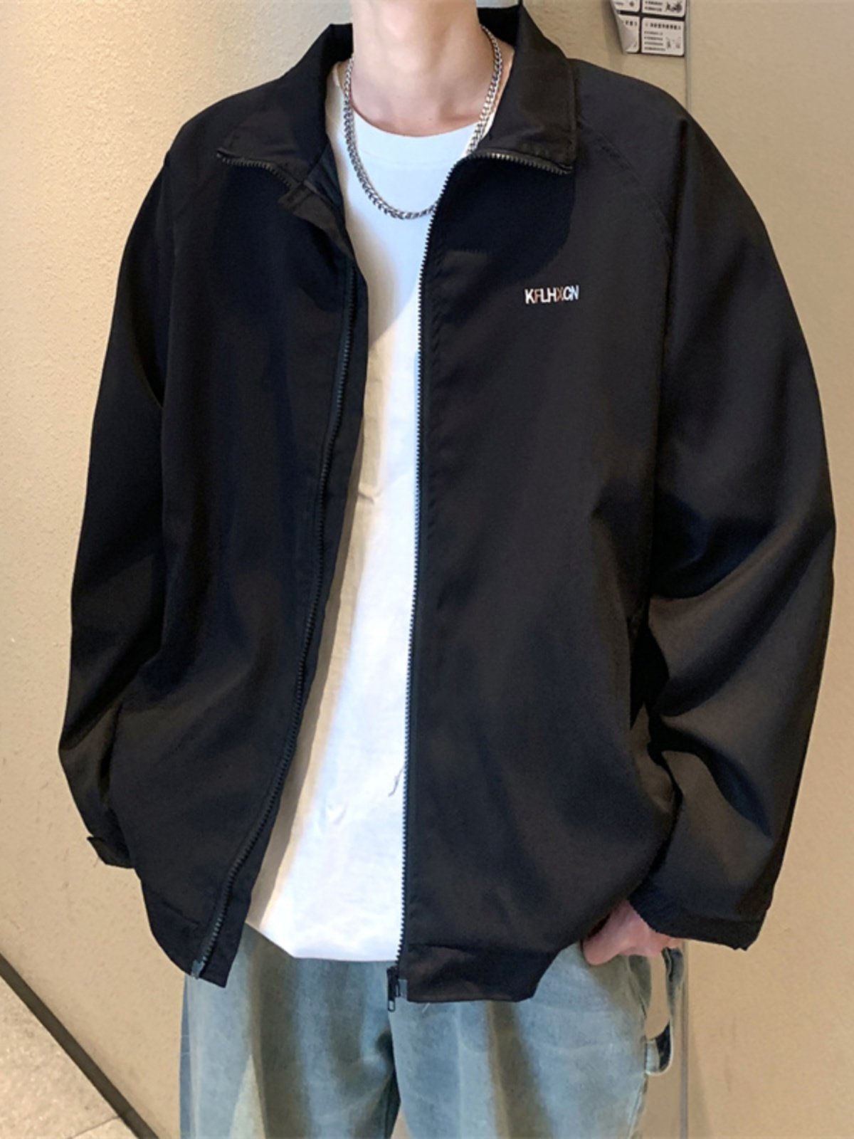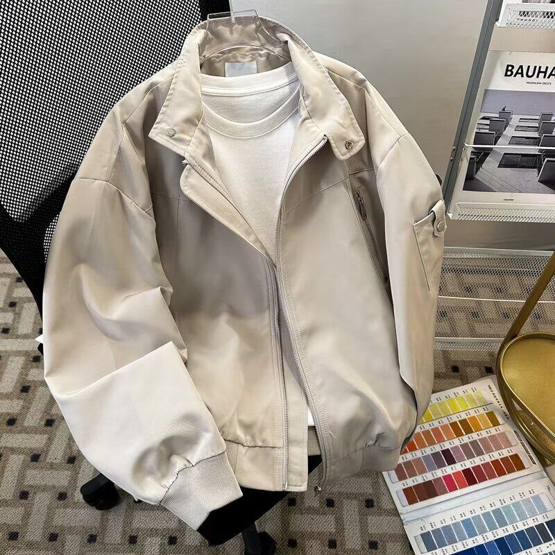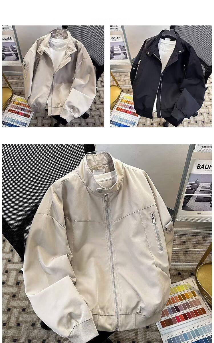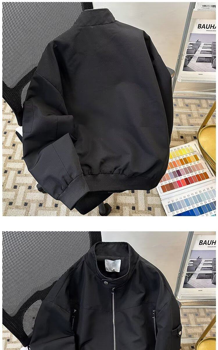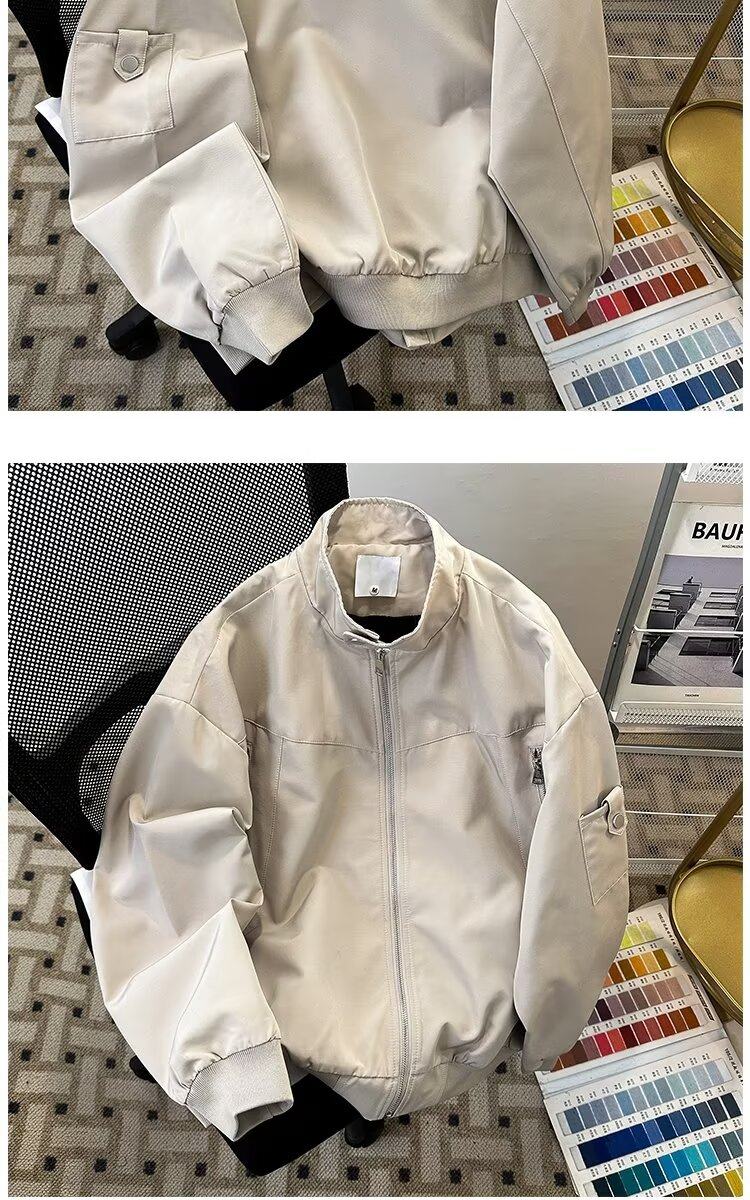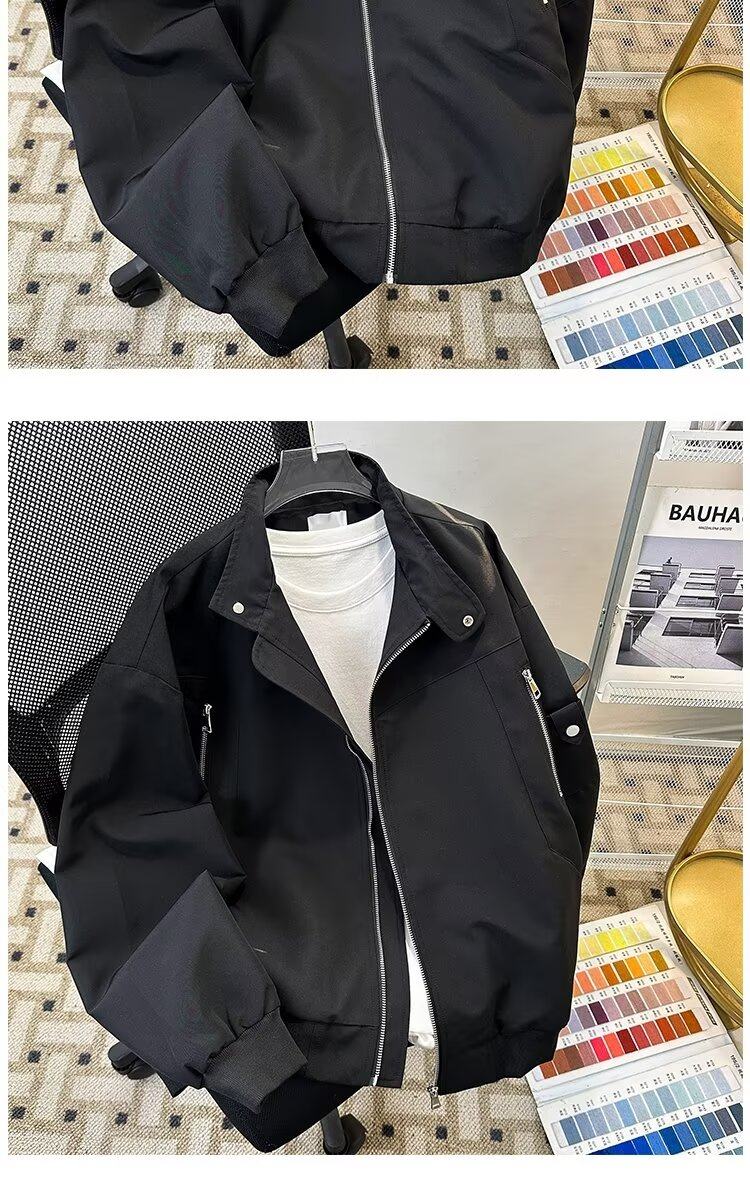 2023港风新款休闲外套男春秋季韩版潮流刺绣简约夹克ins宽松上衣