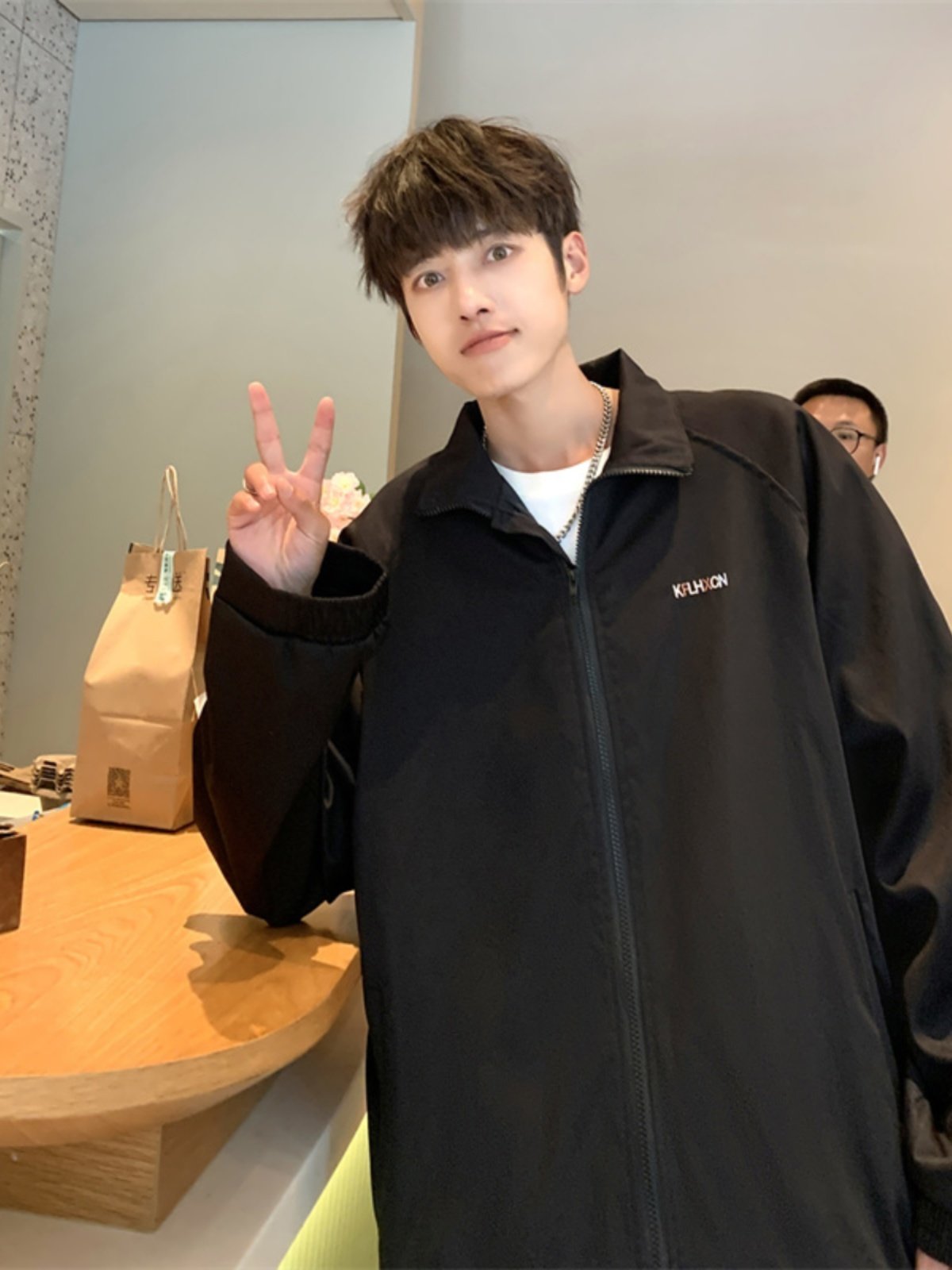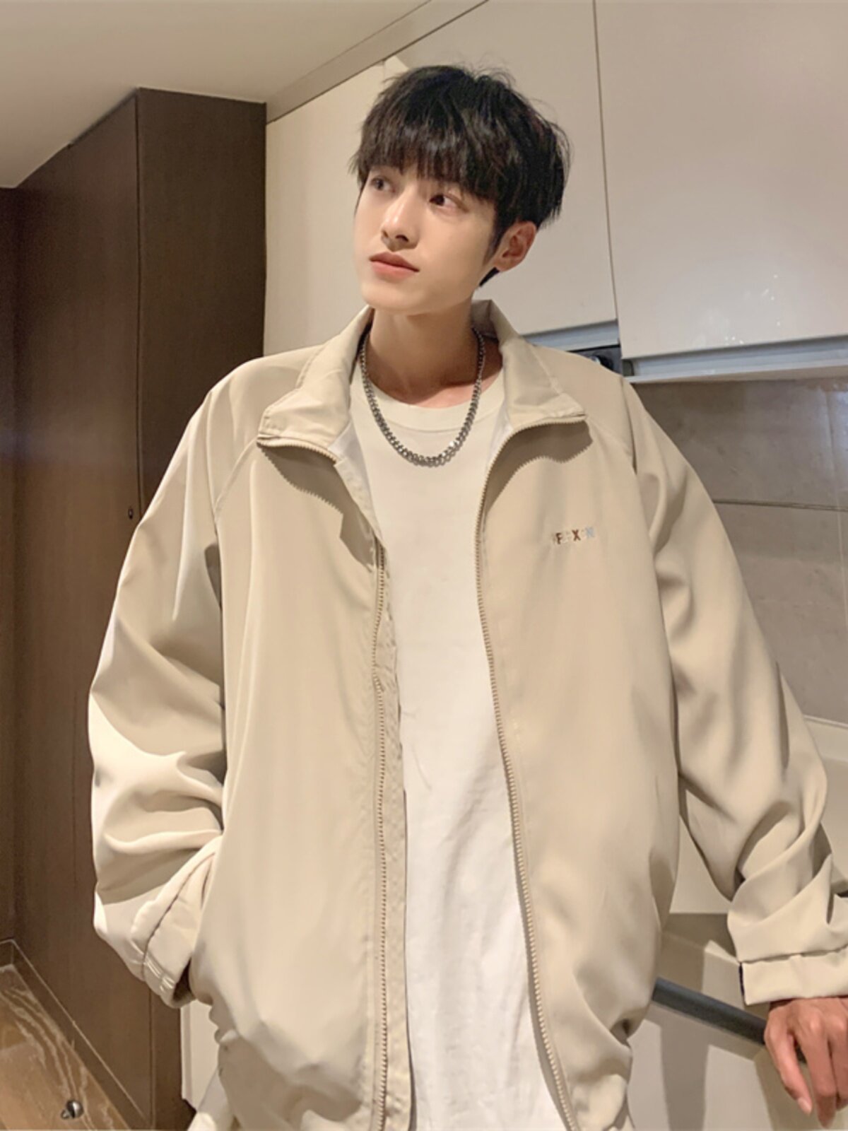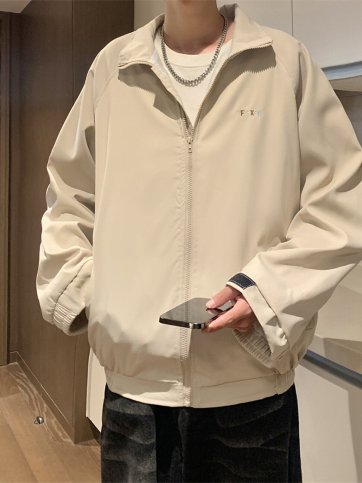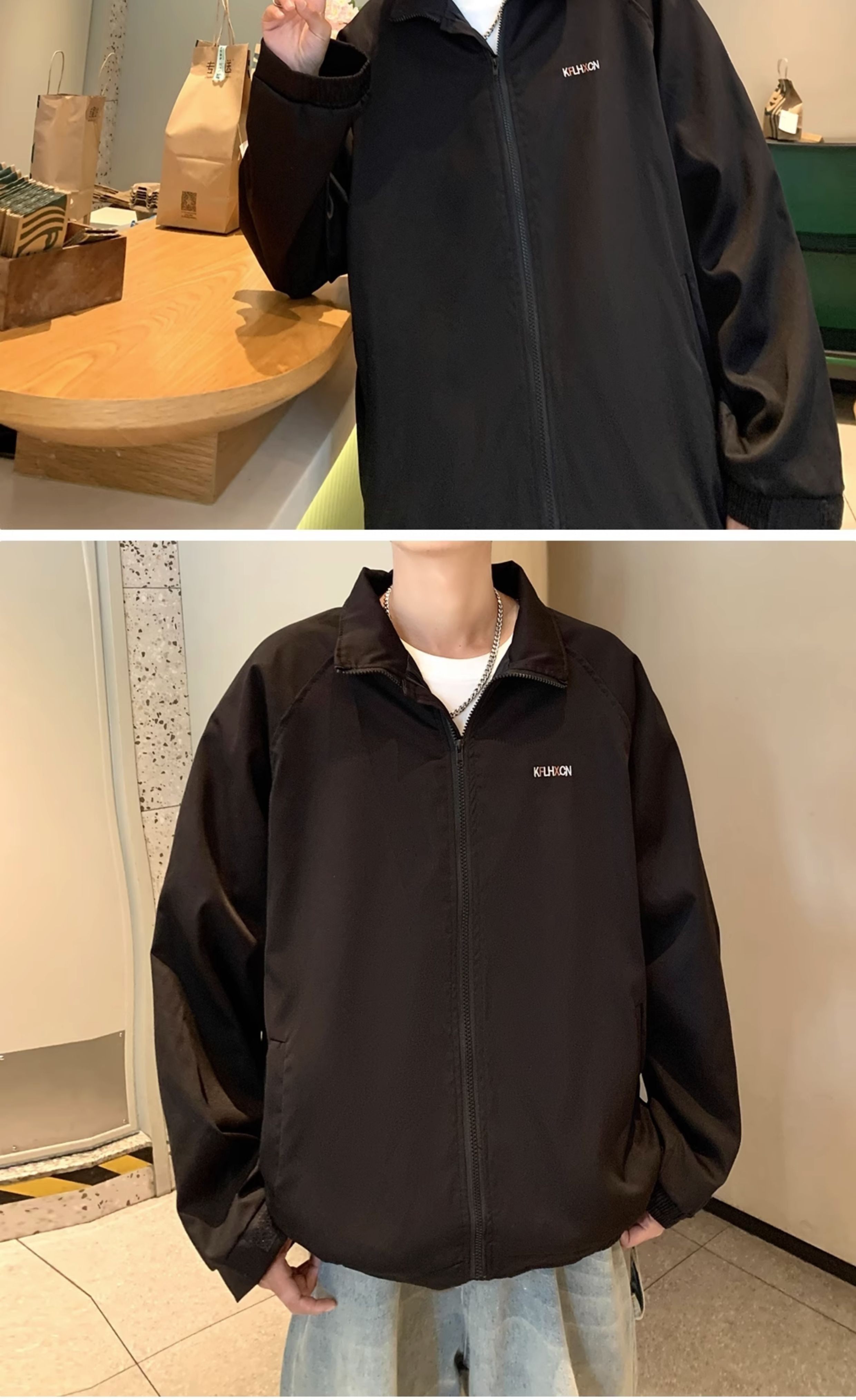 2023港风新款休闲外套男春秋季韩版潮流刺绣简约夹克ins宽松上衣