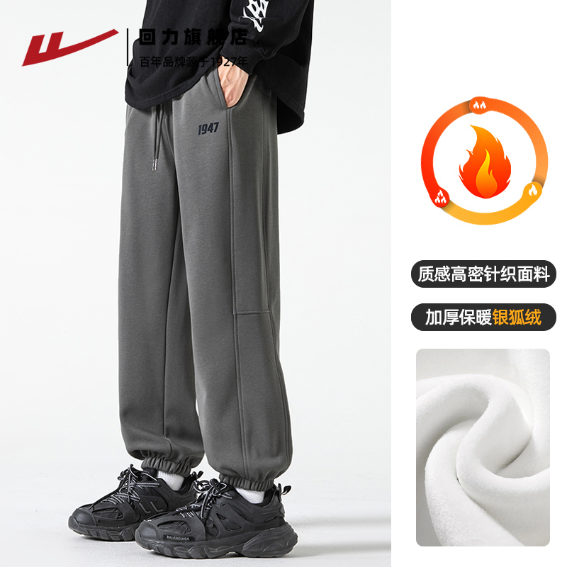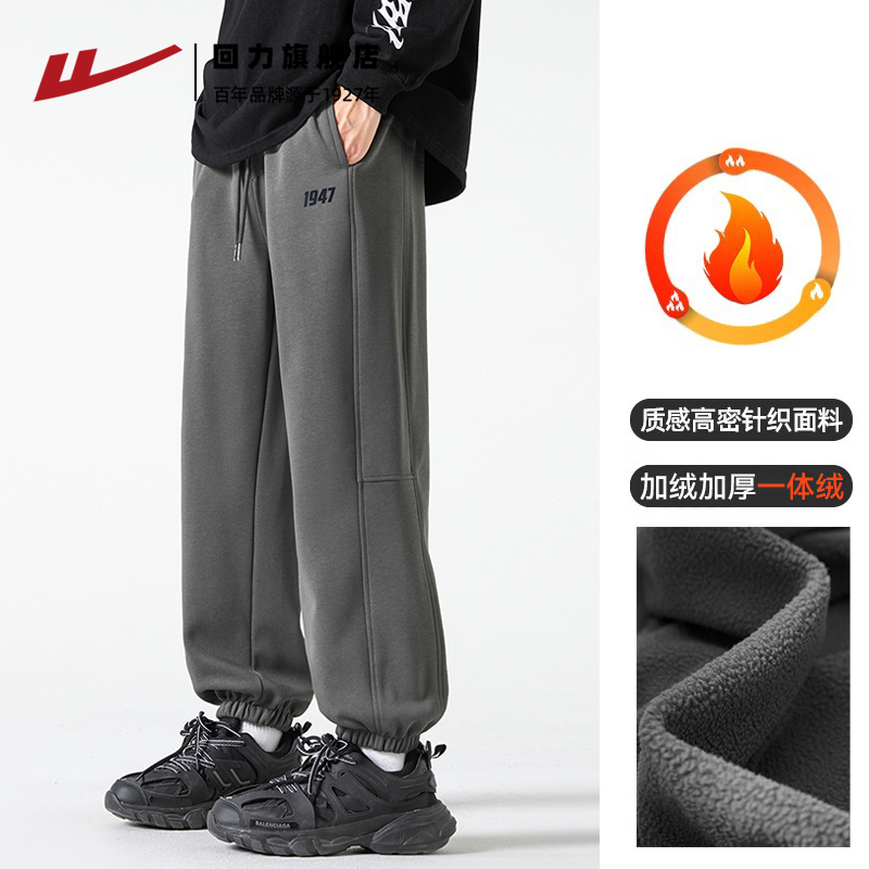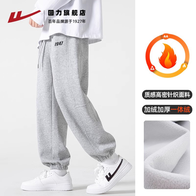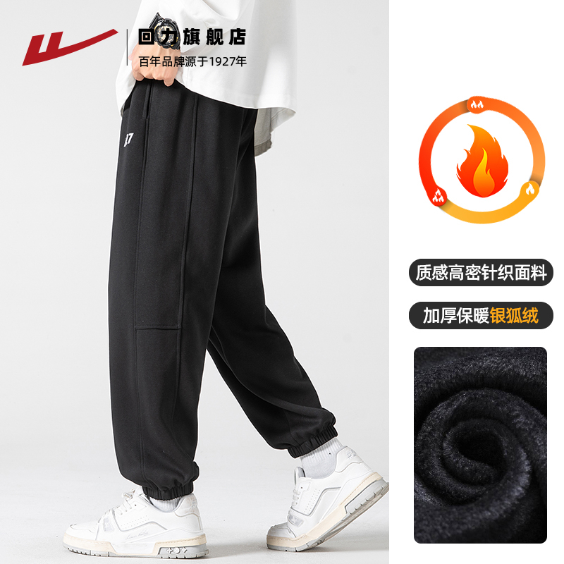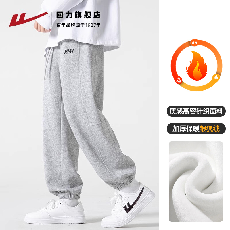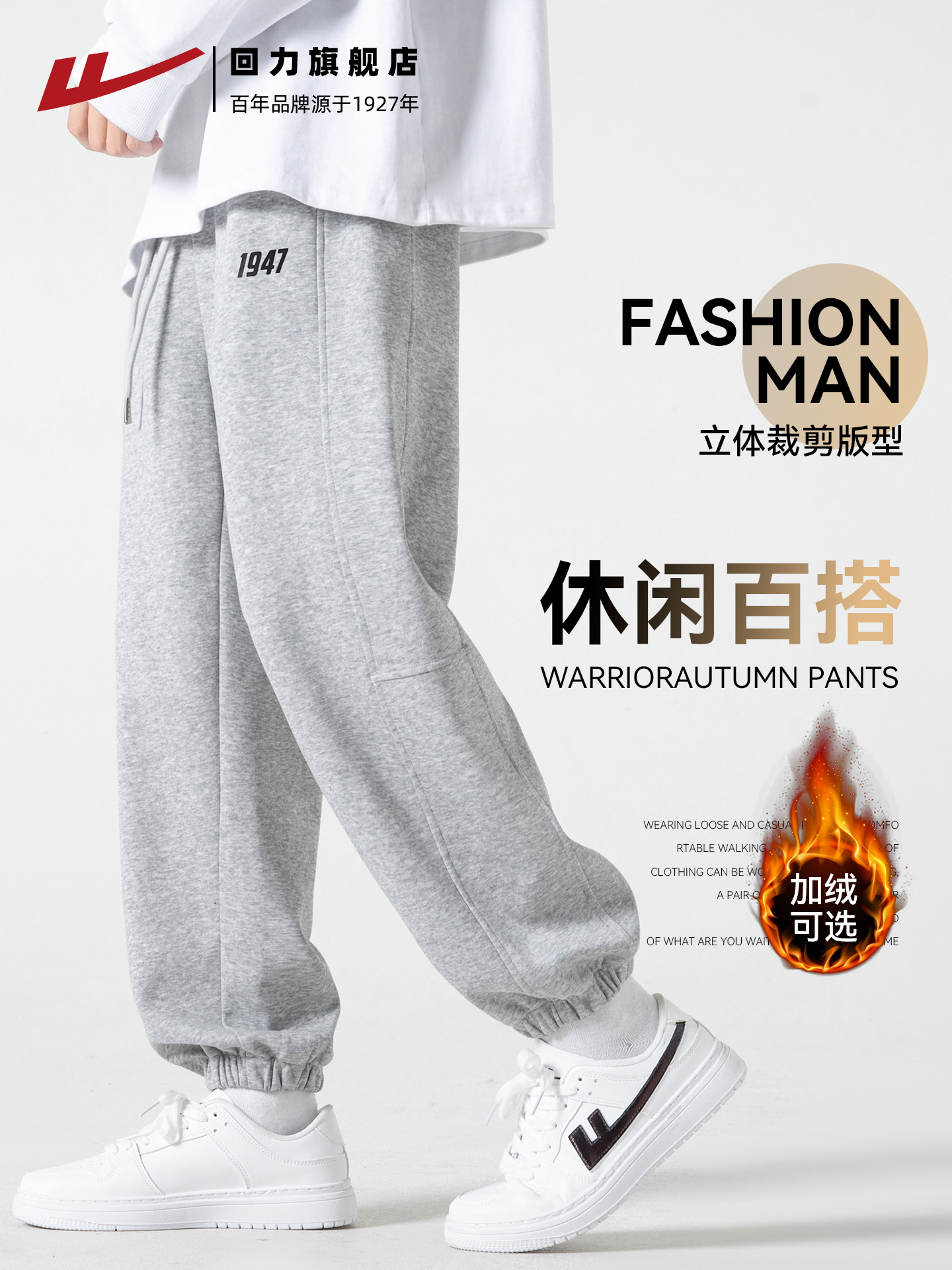 回力裤子男款秋冬运动2025新款宽松休闲男士长裤束脚加绒加厚卫裤