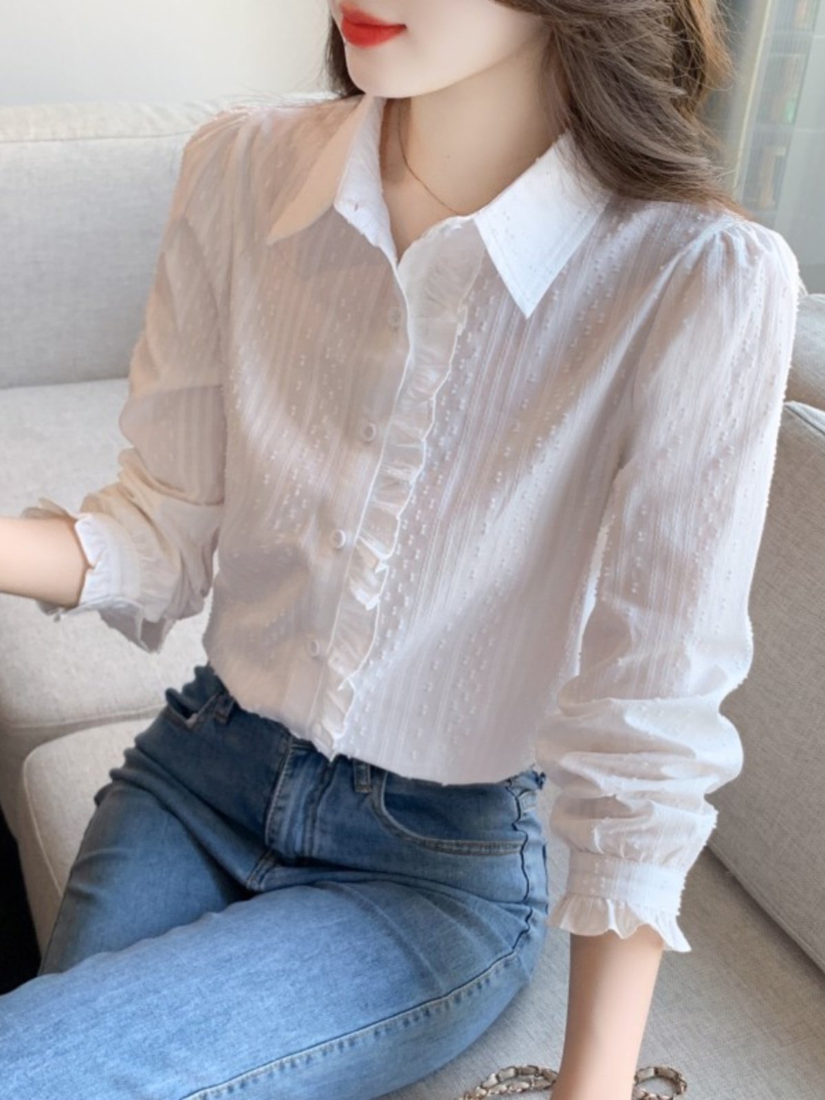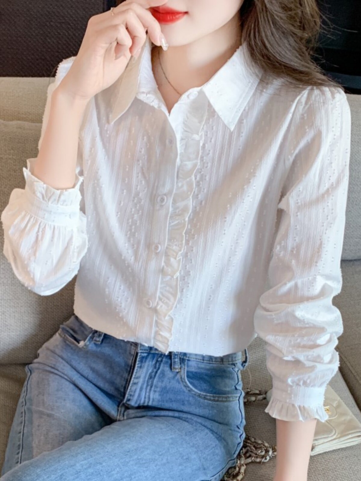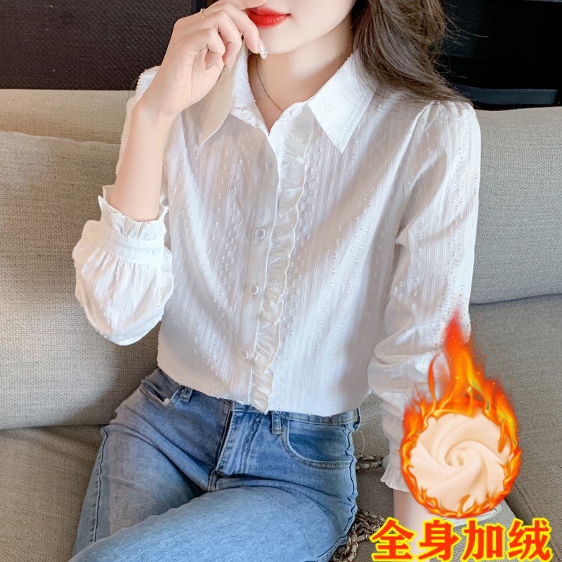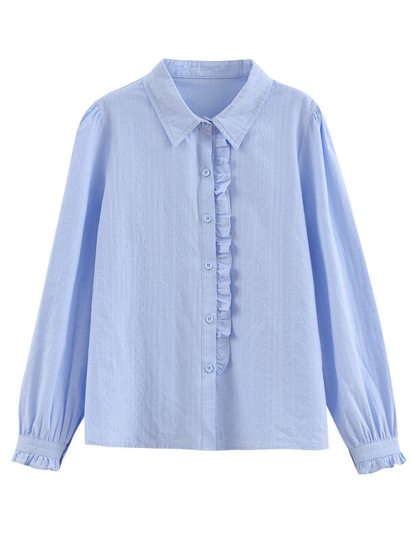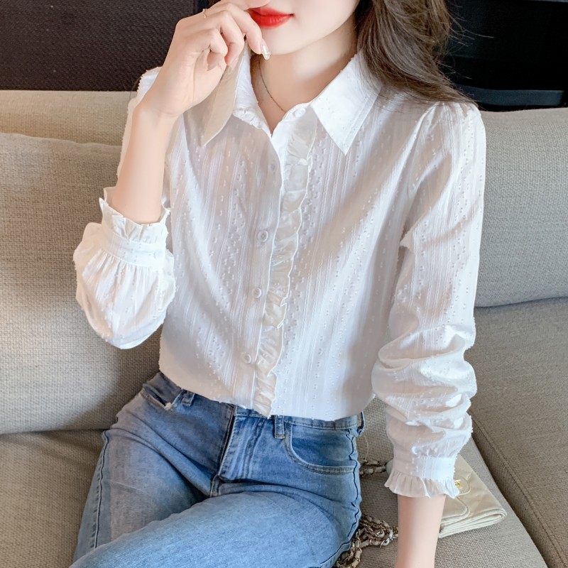 2025年春秋季新款女装时尚百搭纯棉衬衫女洋气全棉polo领长袖上衣