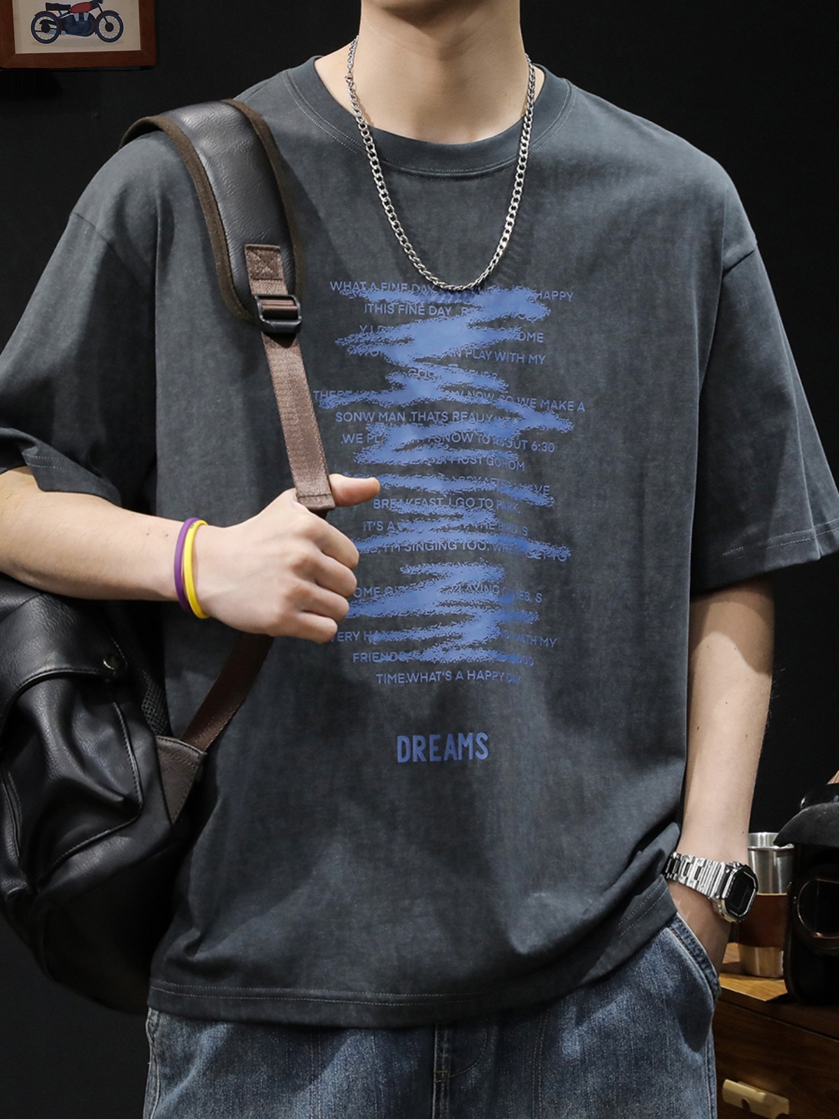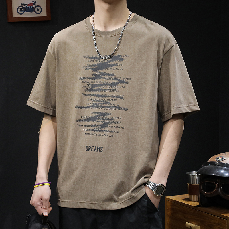 美式复古短袖t恤男士潮流衣服夏季2025新款大码潮牌男装长袖体恤