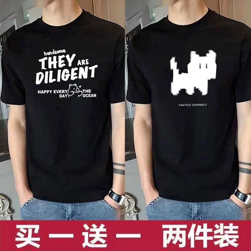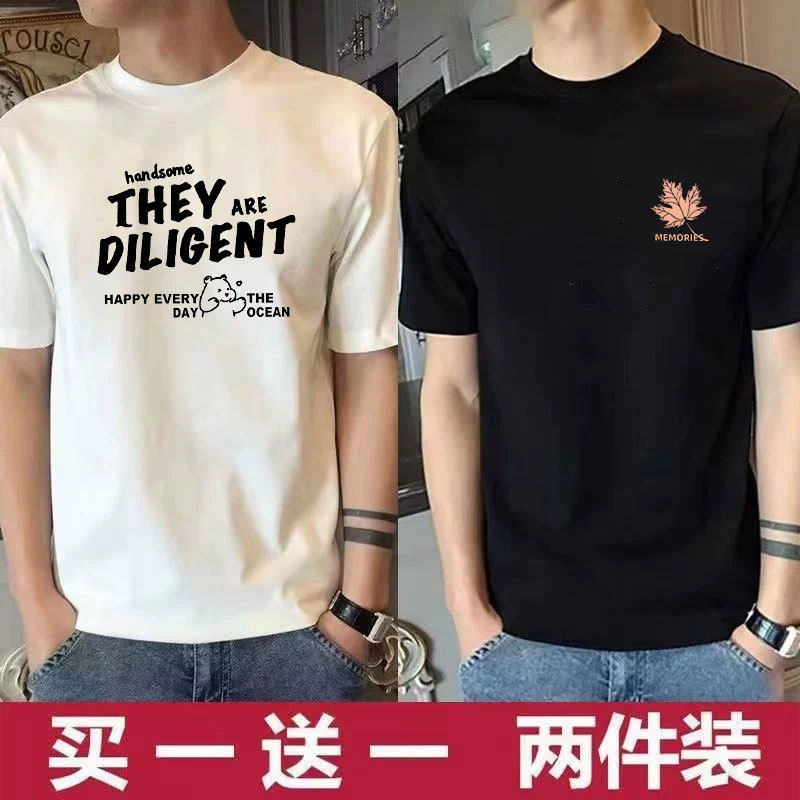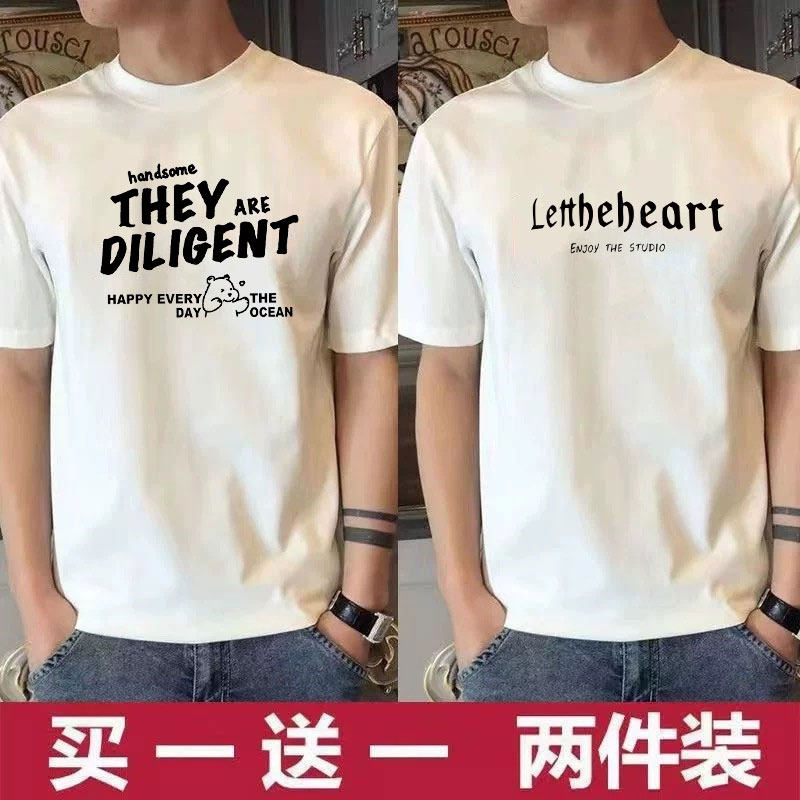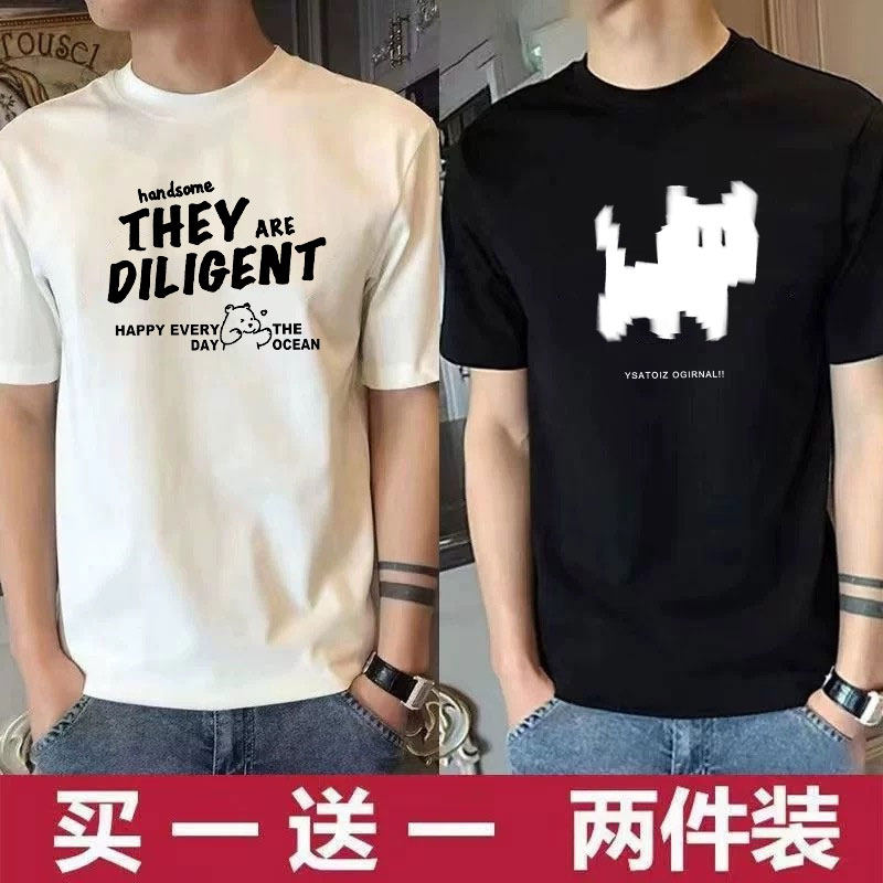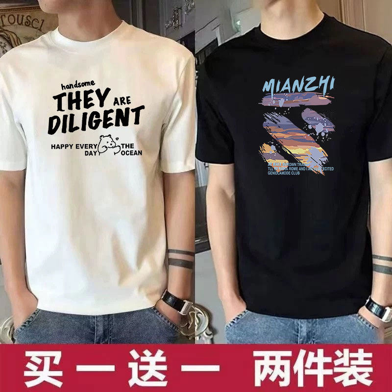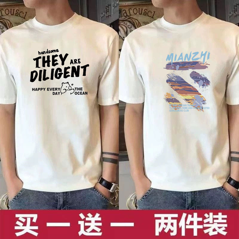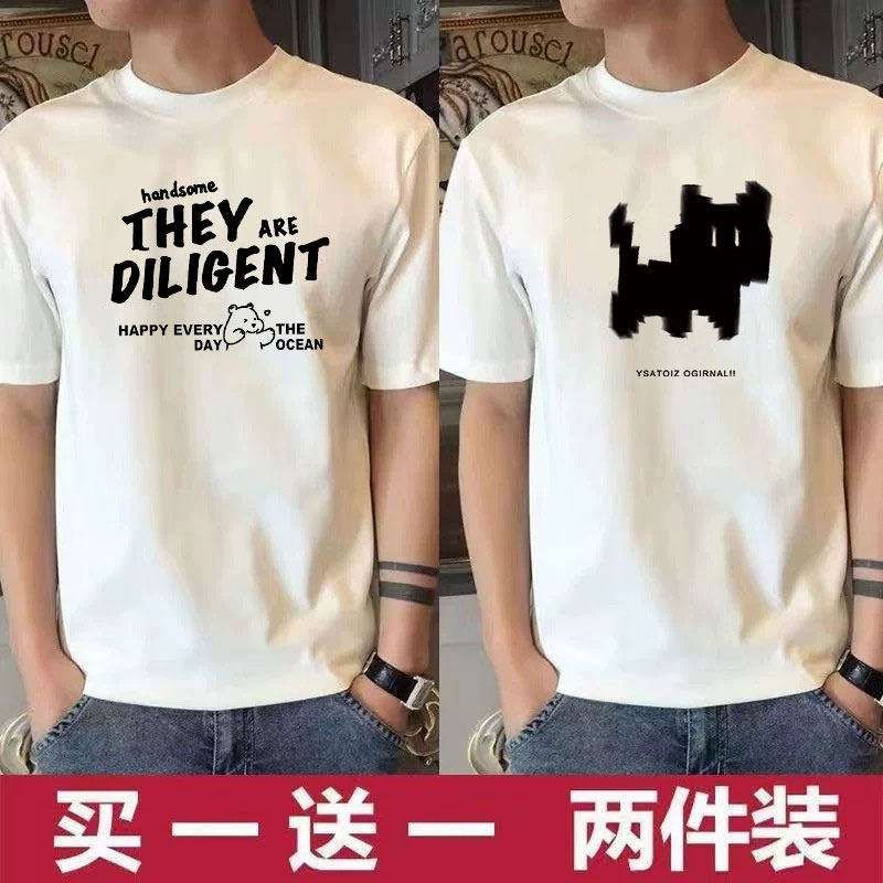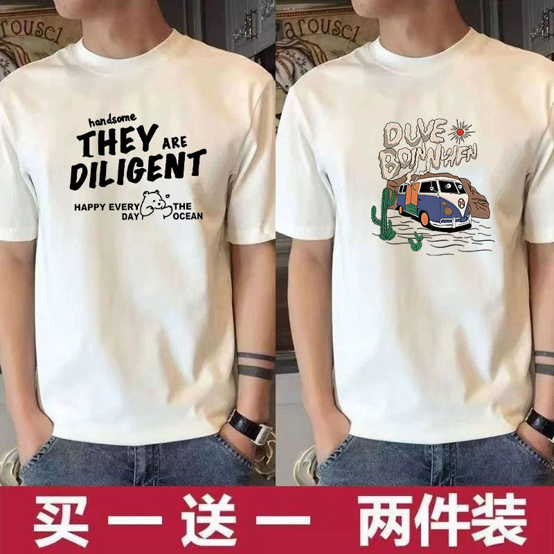 买一送一(两件装)夏季潮流新款短袖T恤男夏季男款宽松T体恤衫