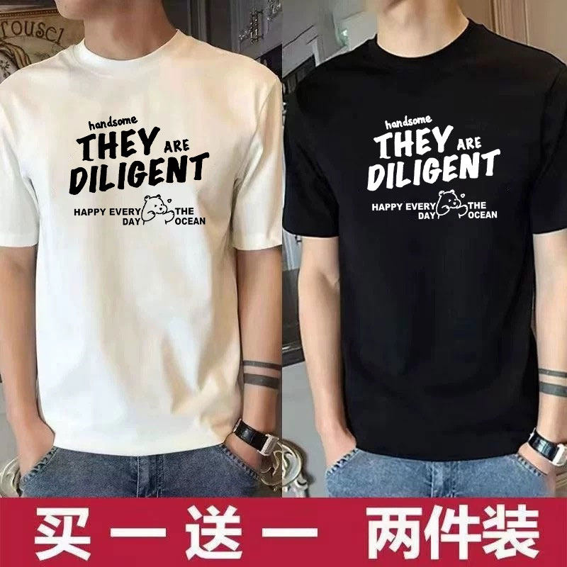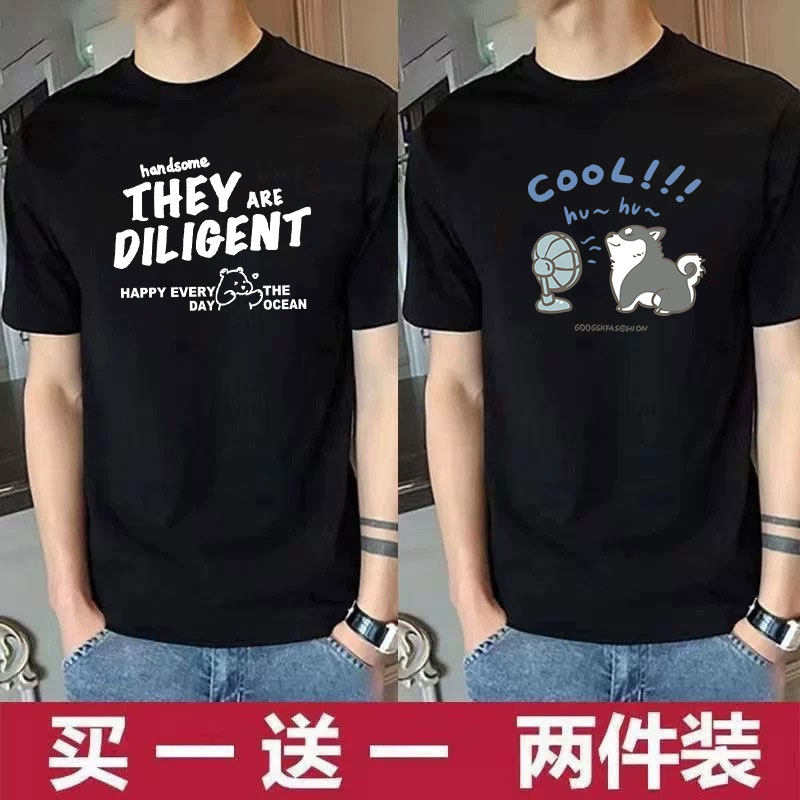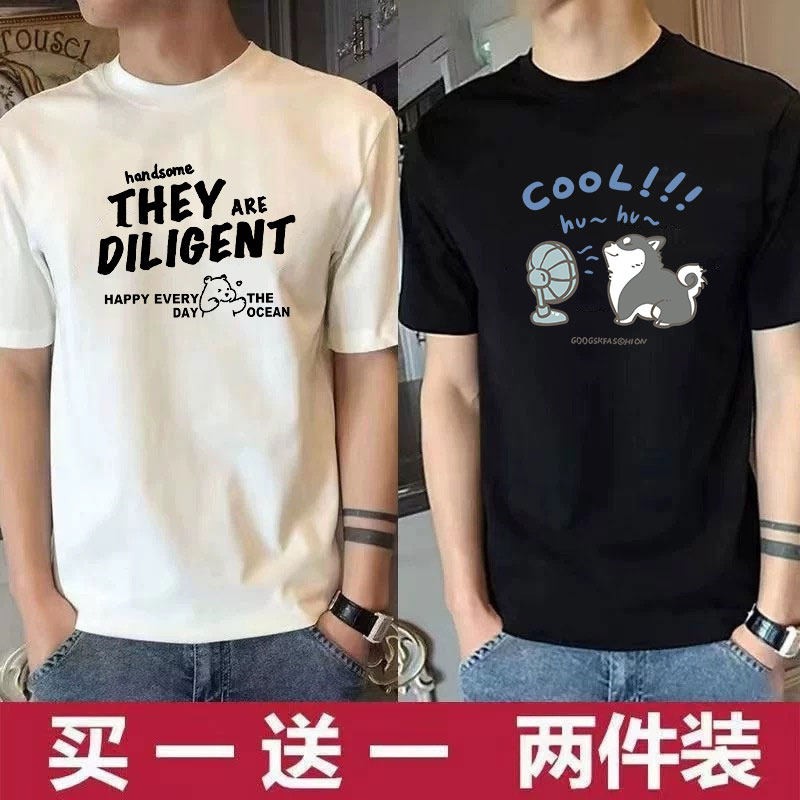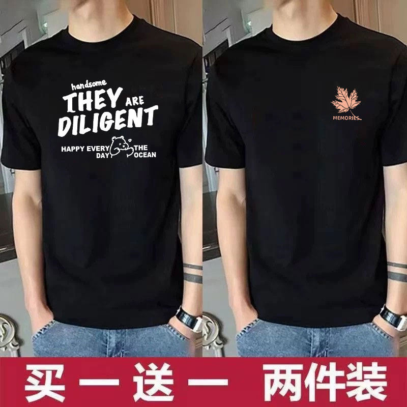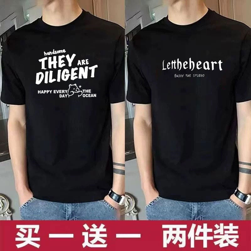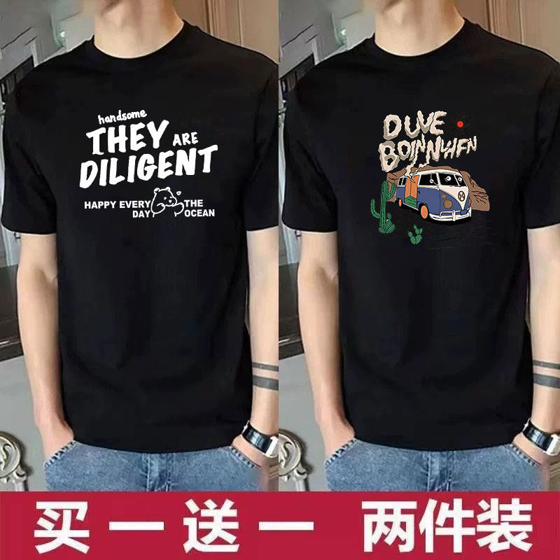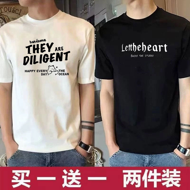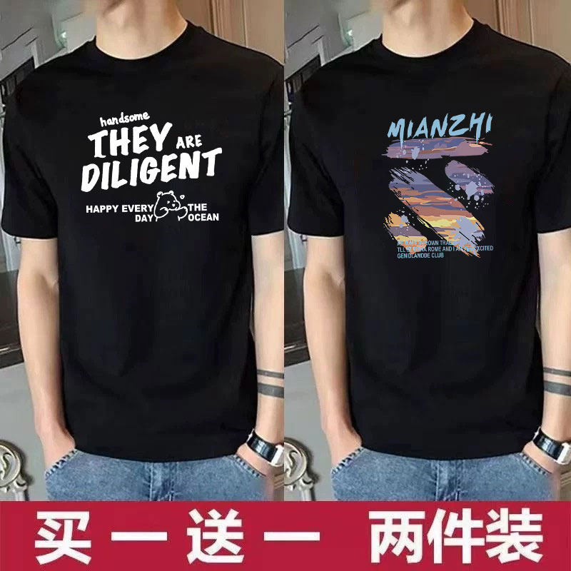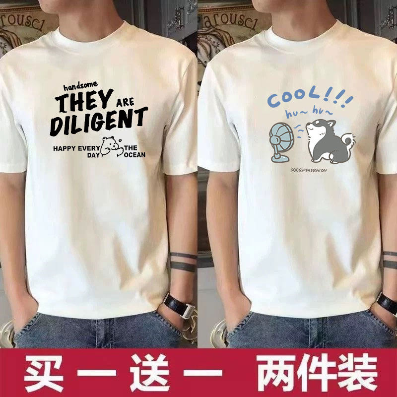 买一送一(两件装)夏季潮流新款短袖T恤男夏季男款宽松T体恤衫