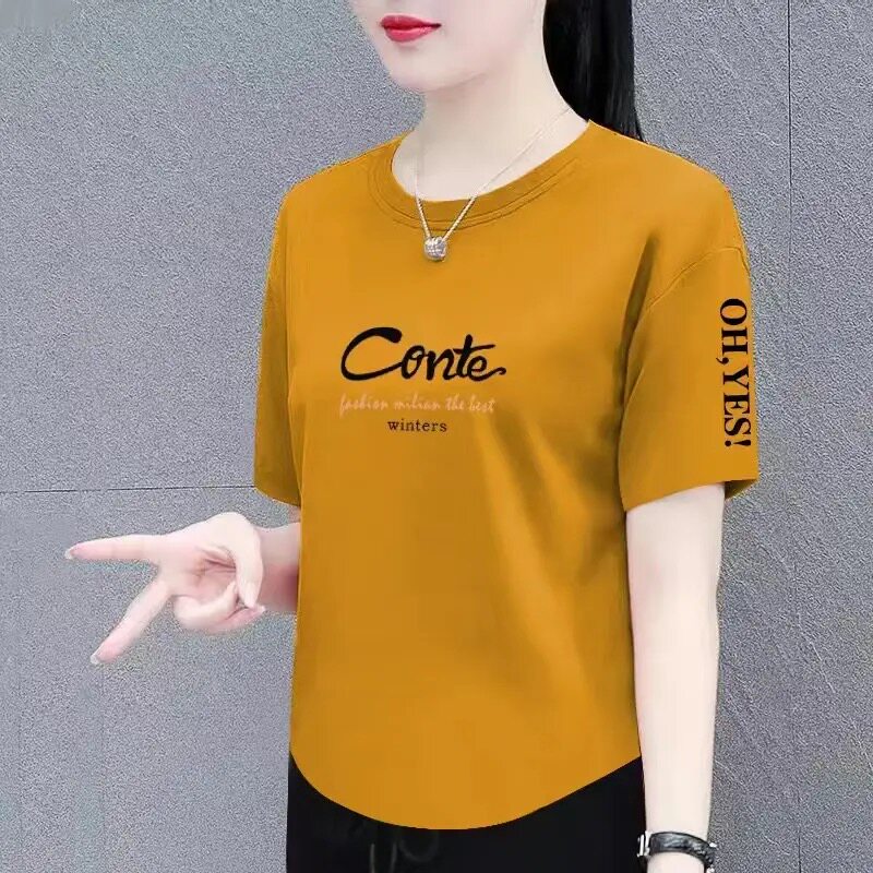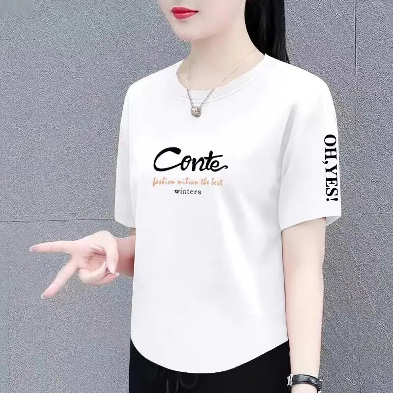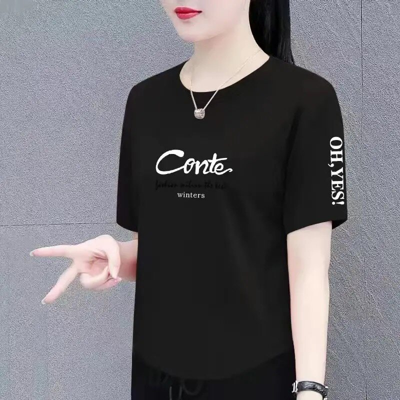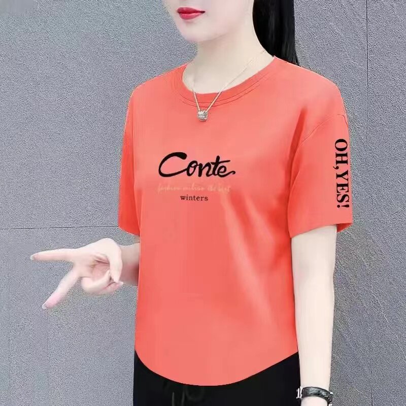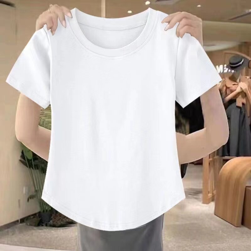 短袖t恤女夏季新款时尚百搭宽松显瘦大码女装遮肉遮肚上衣体恤衫