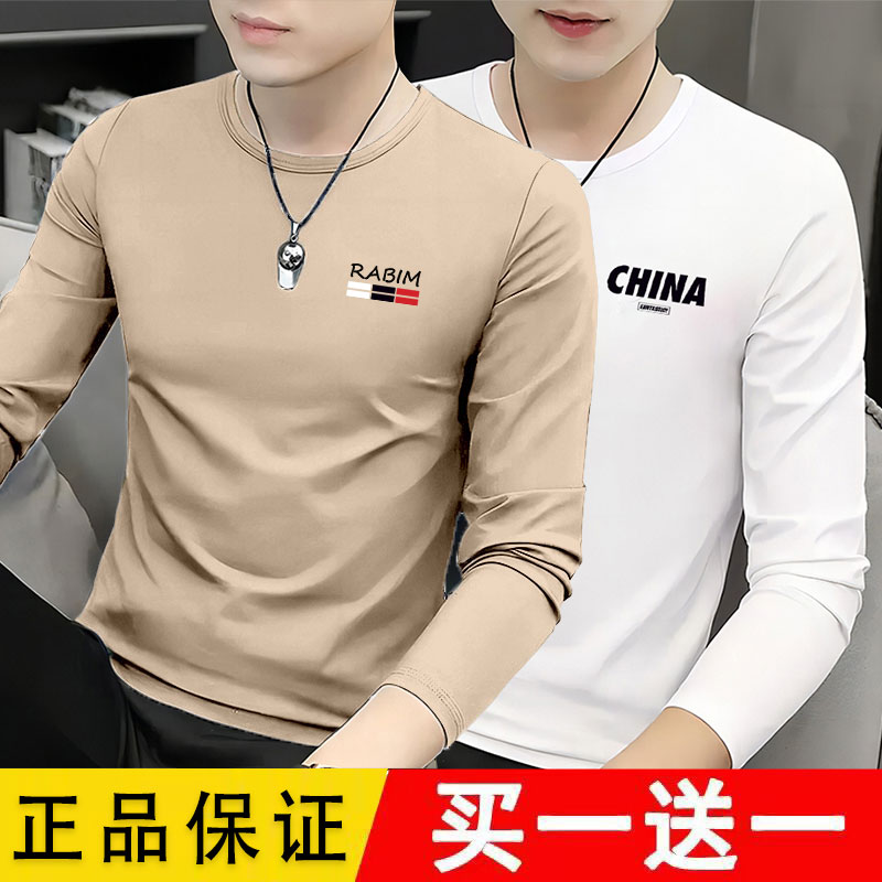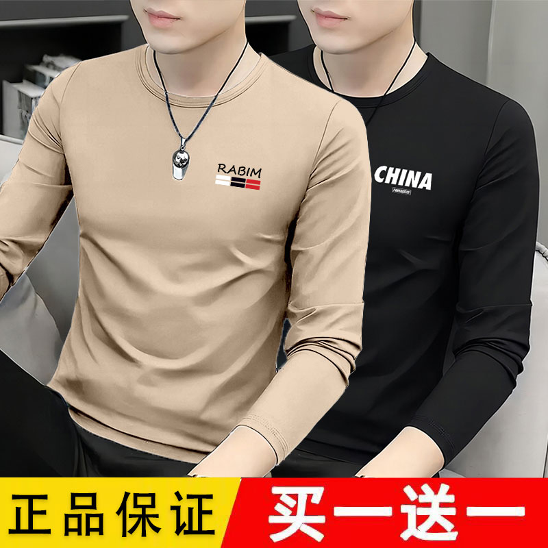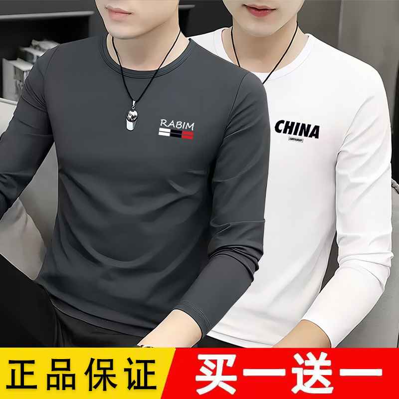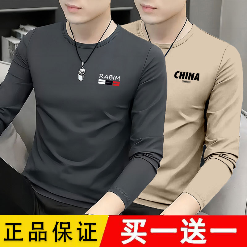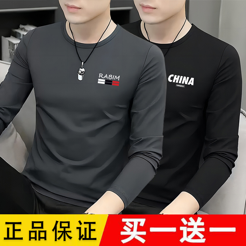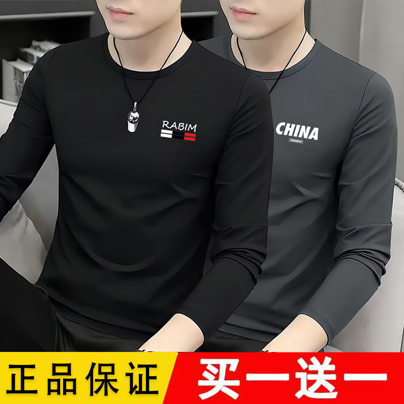 男士长袖t恤2025新款圆领春秋季秋衣上衣服装男款爆款修身打底衫