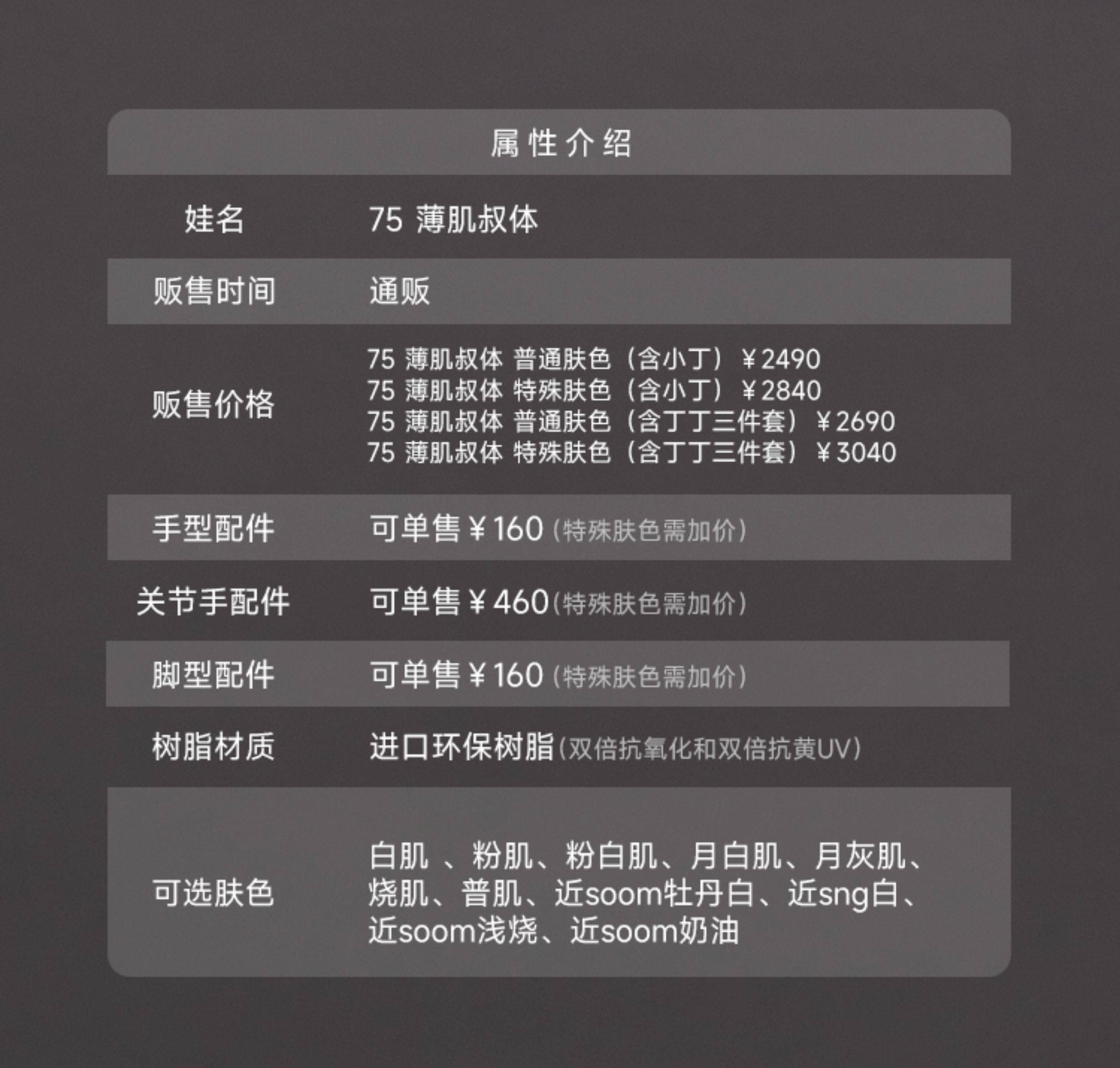 DollZone新75cm薄肌叔体BJD娃娃3分男体通贩DZ素体配体官方原创