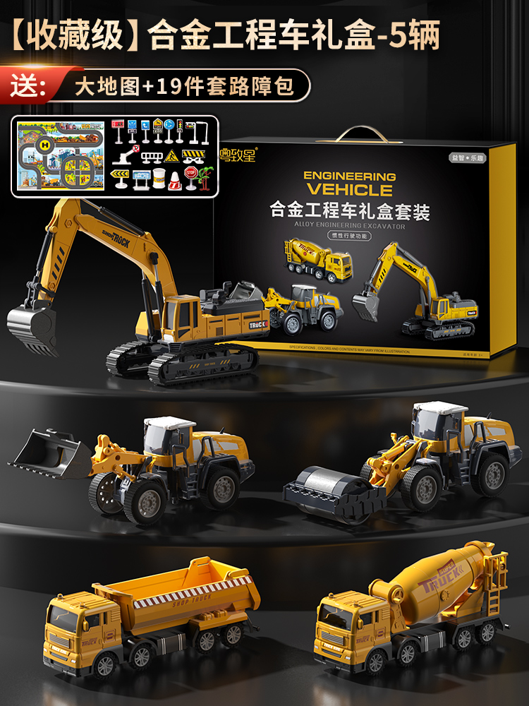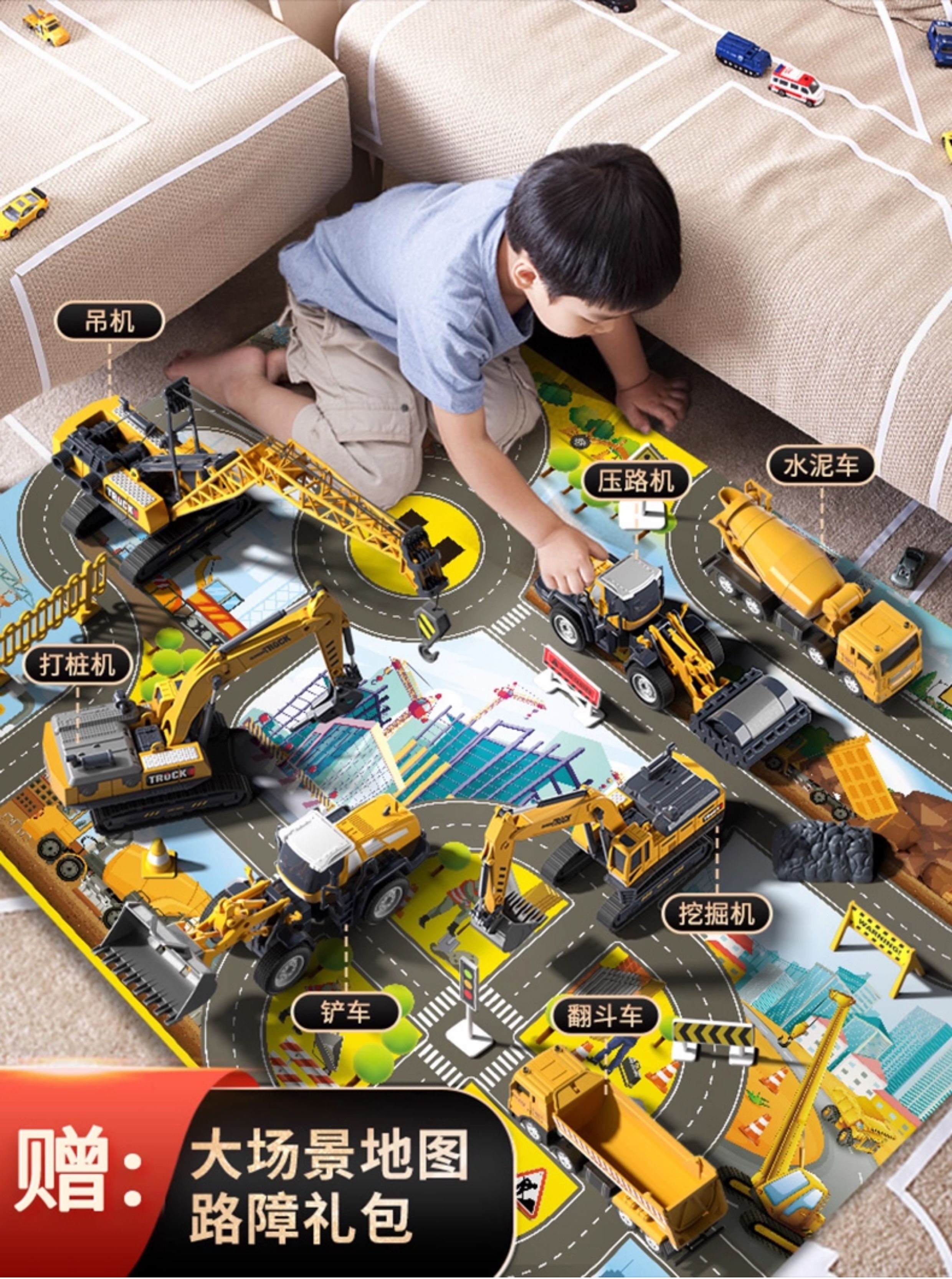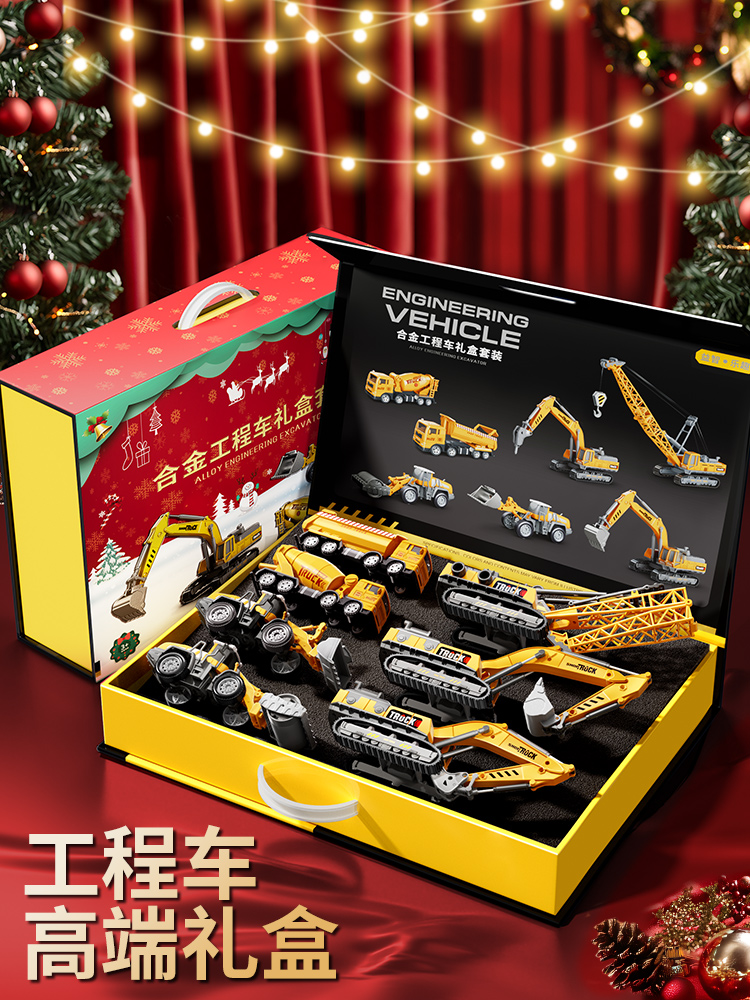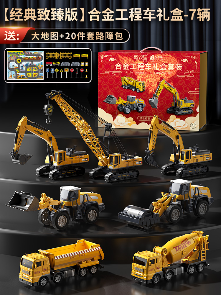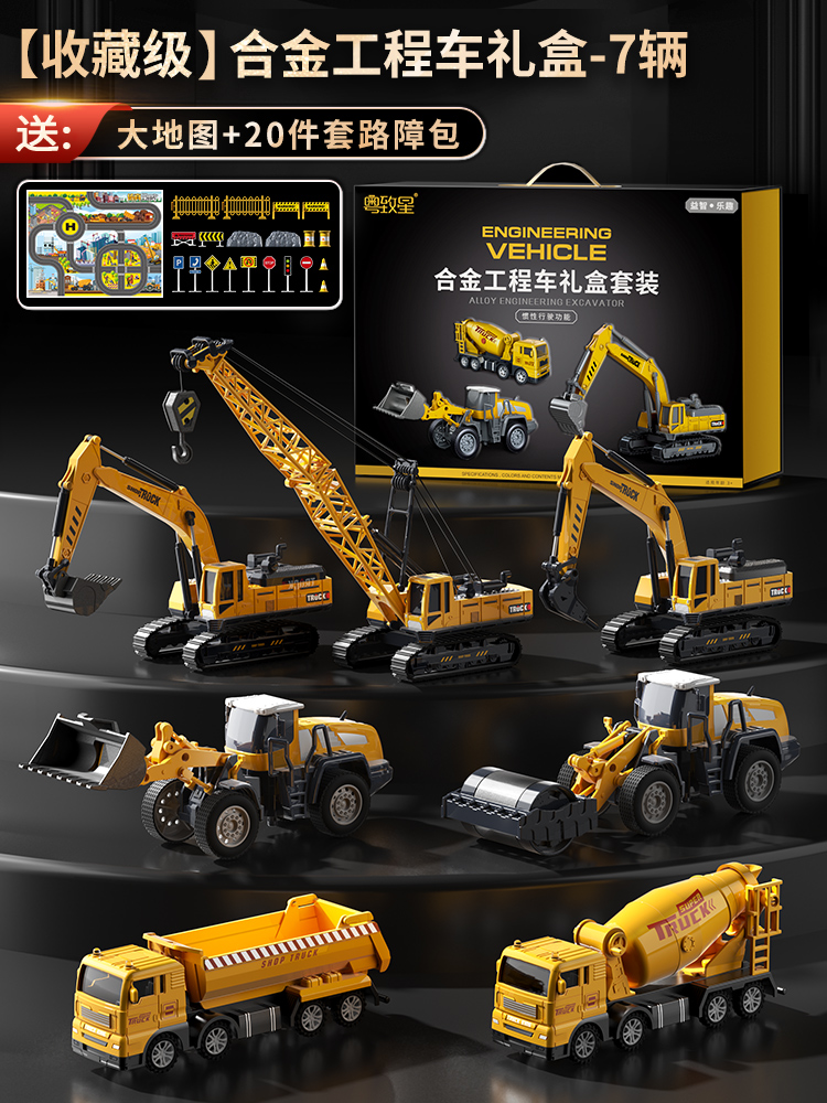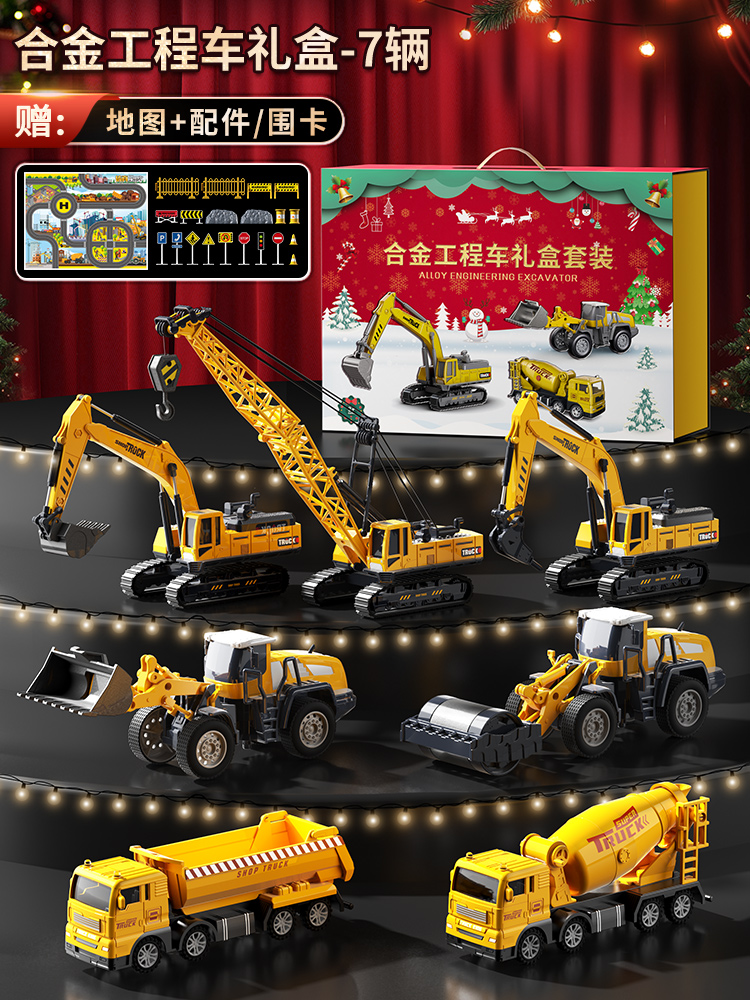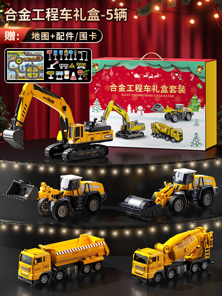儿童玩具车男孩合金工程车铲车礼盒套装挖土翻斗消防云梯车挖掘机