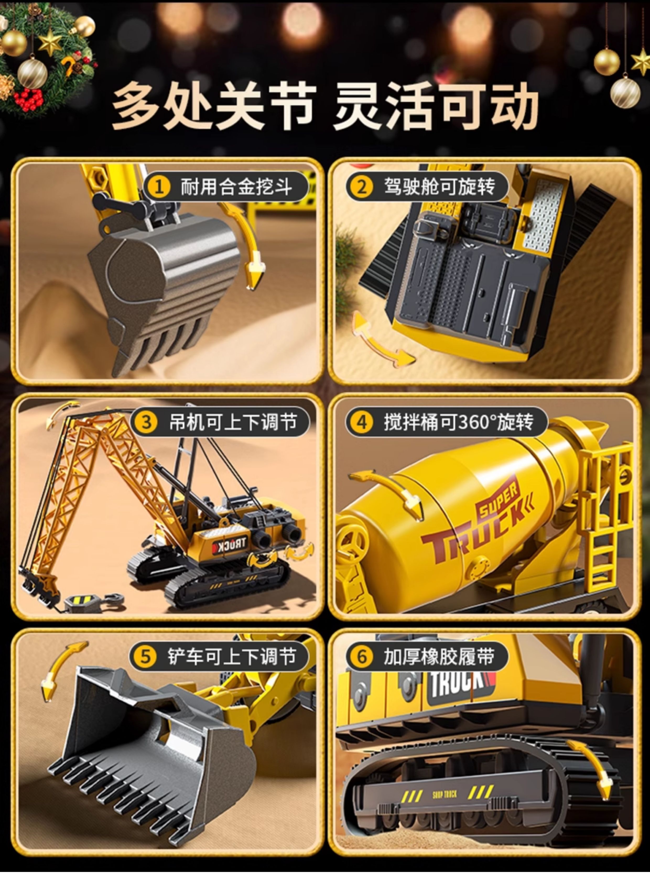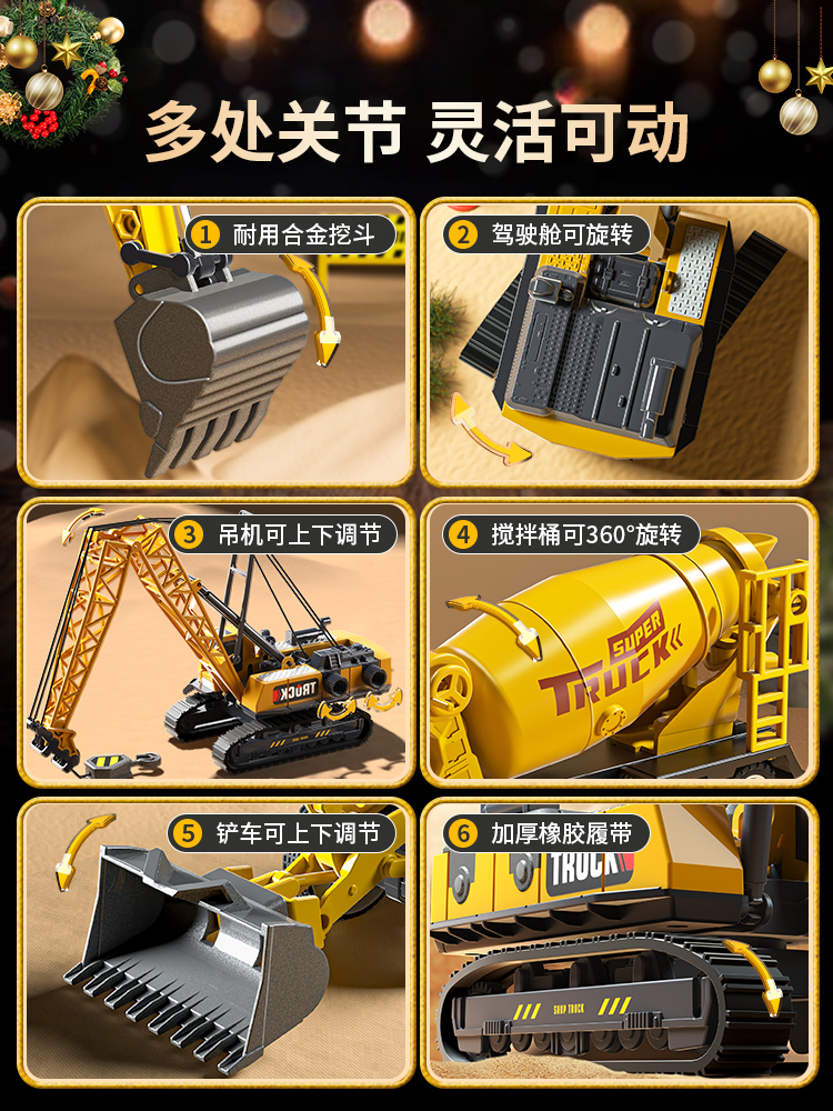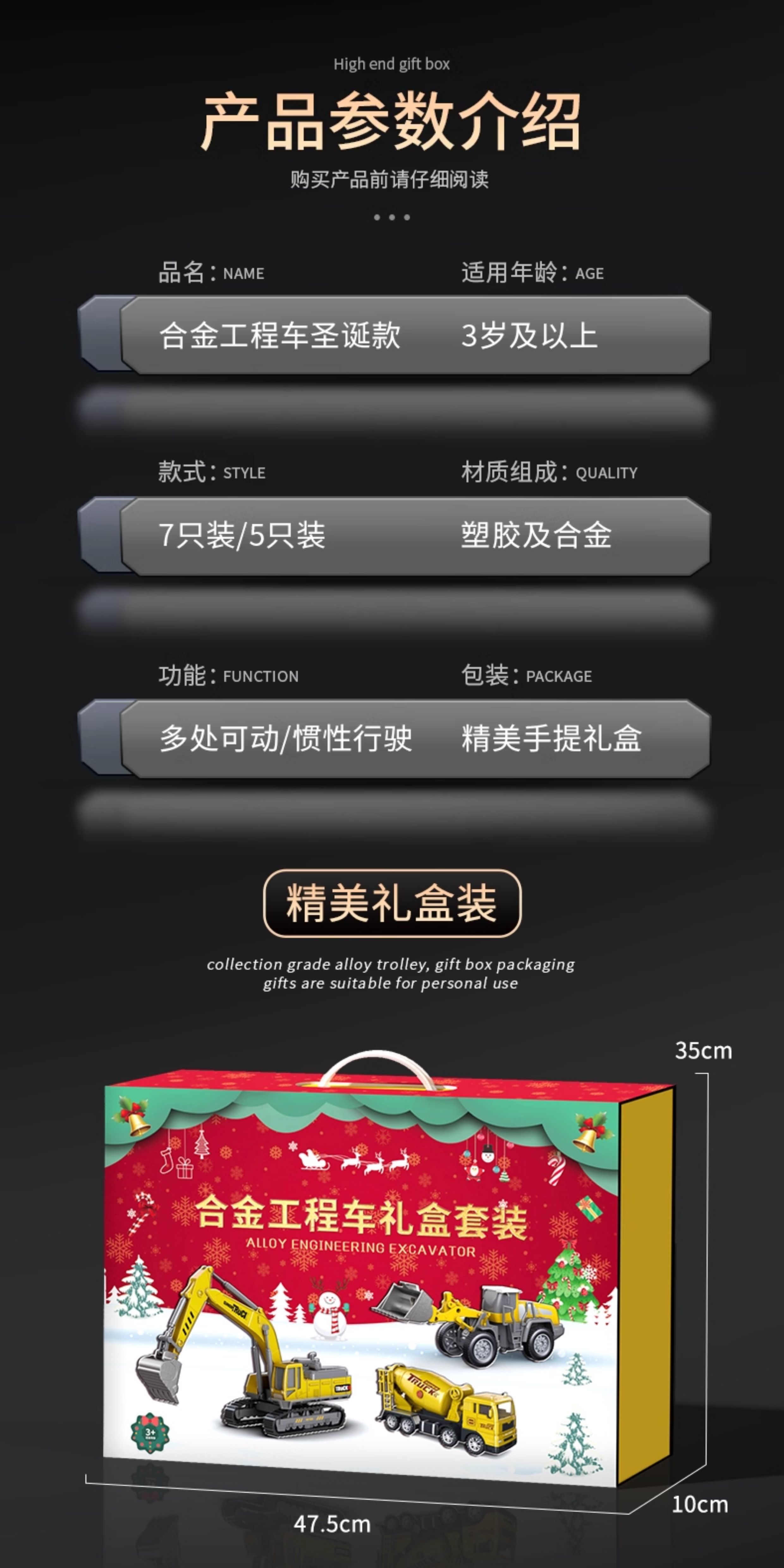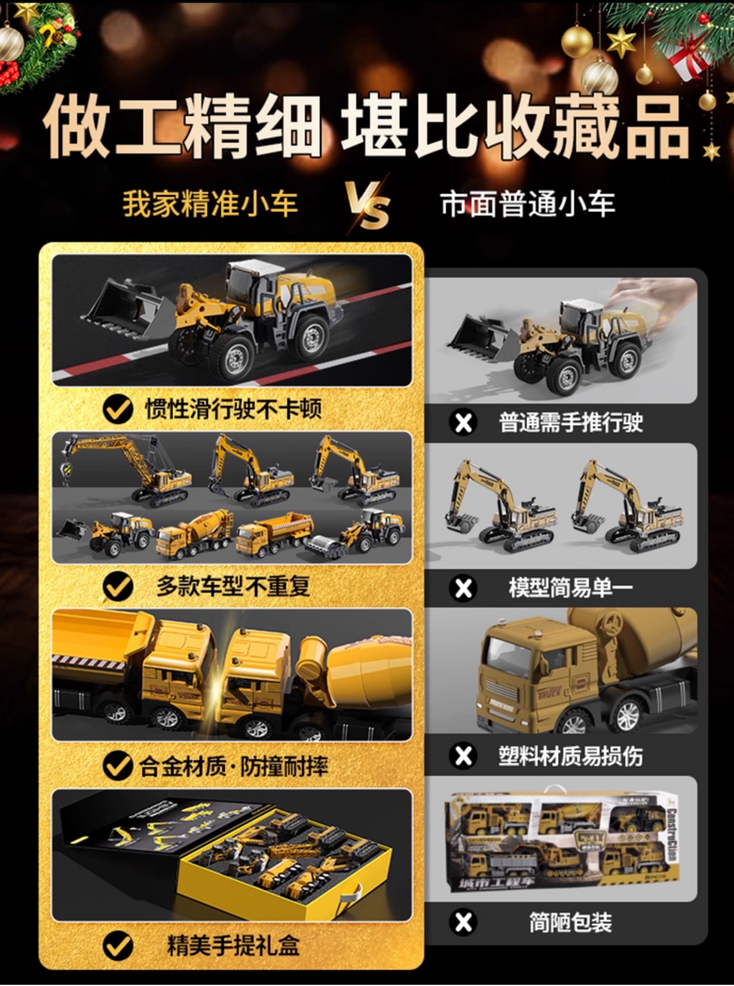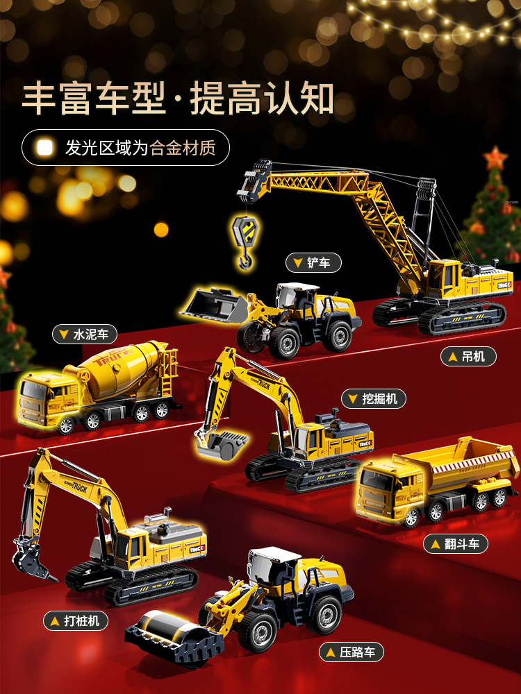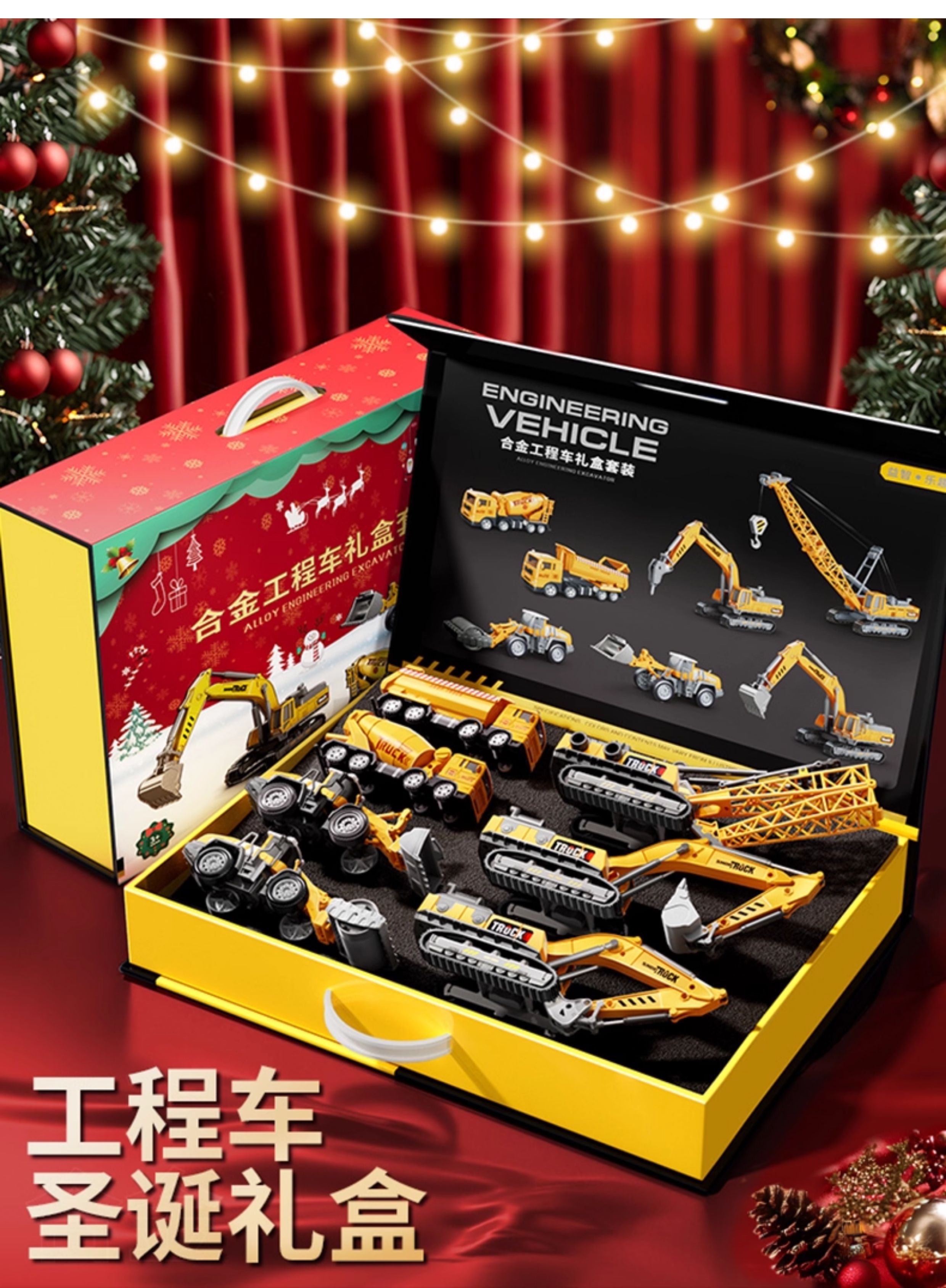 儿童玩具车男孩合金工程车铲车礼盒套装挖土翻斗消防云梯车挖掘机