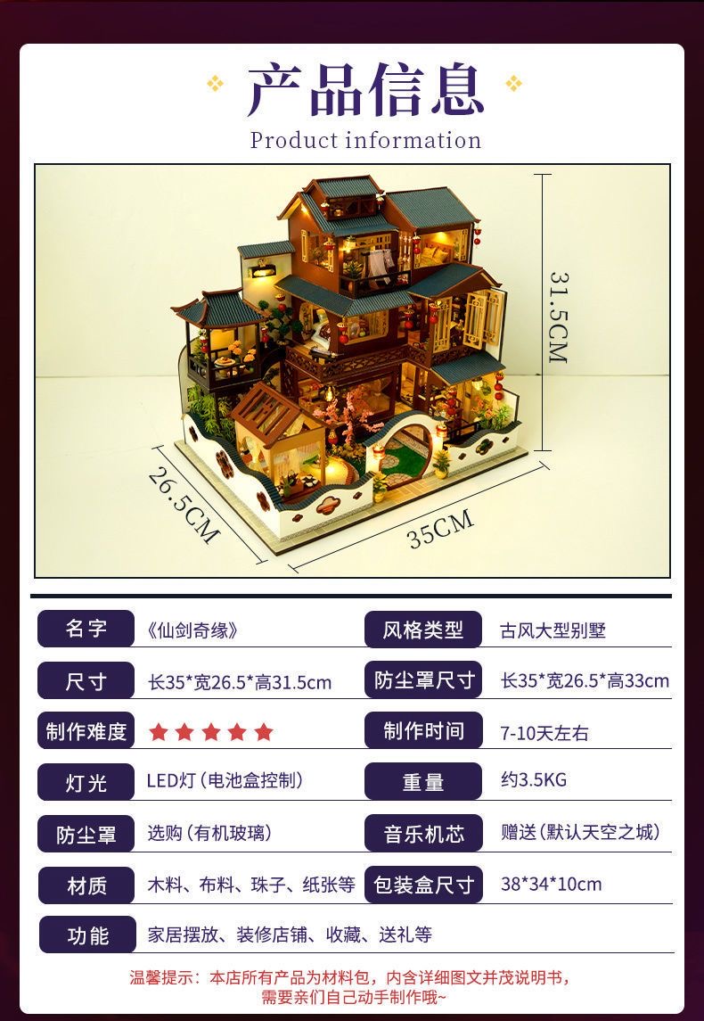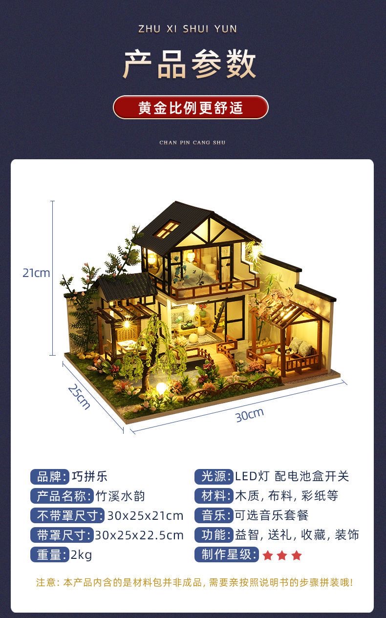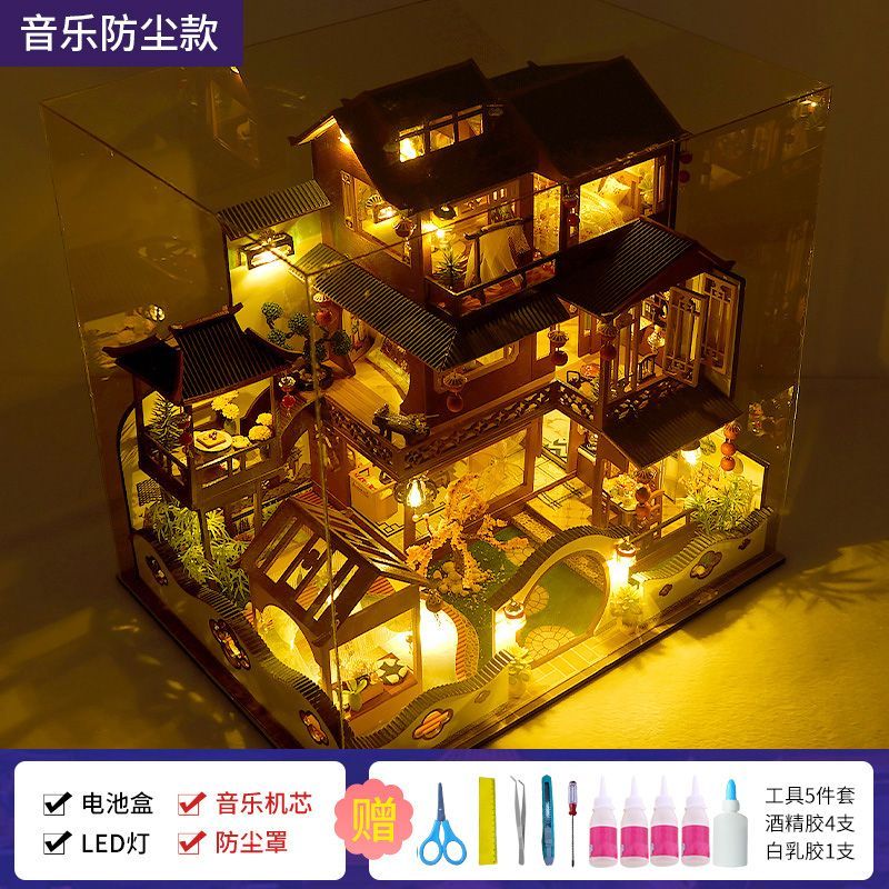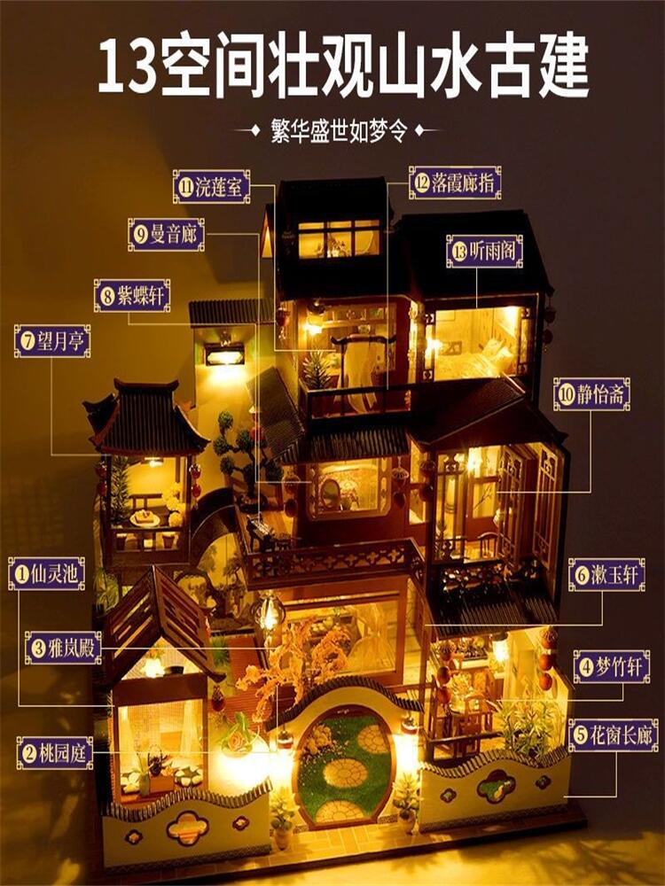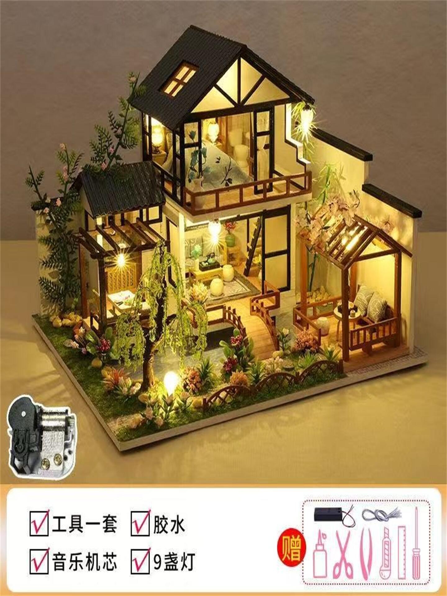 别墅diy手工小屋中国古风房子建筑模型拼装玩具生日礼物送女生男