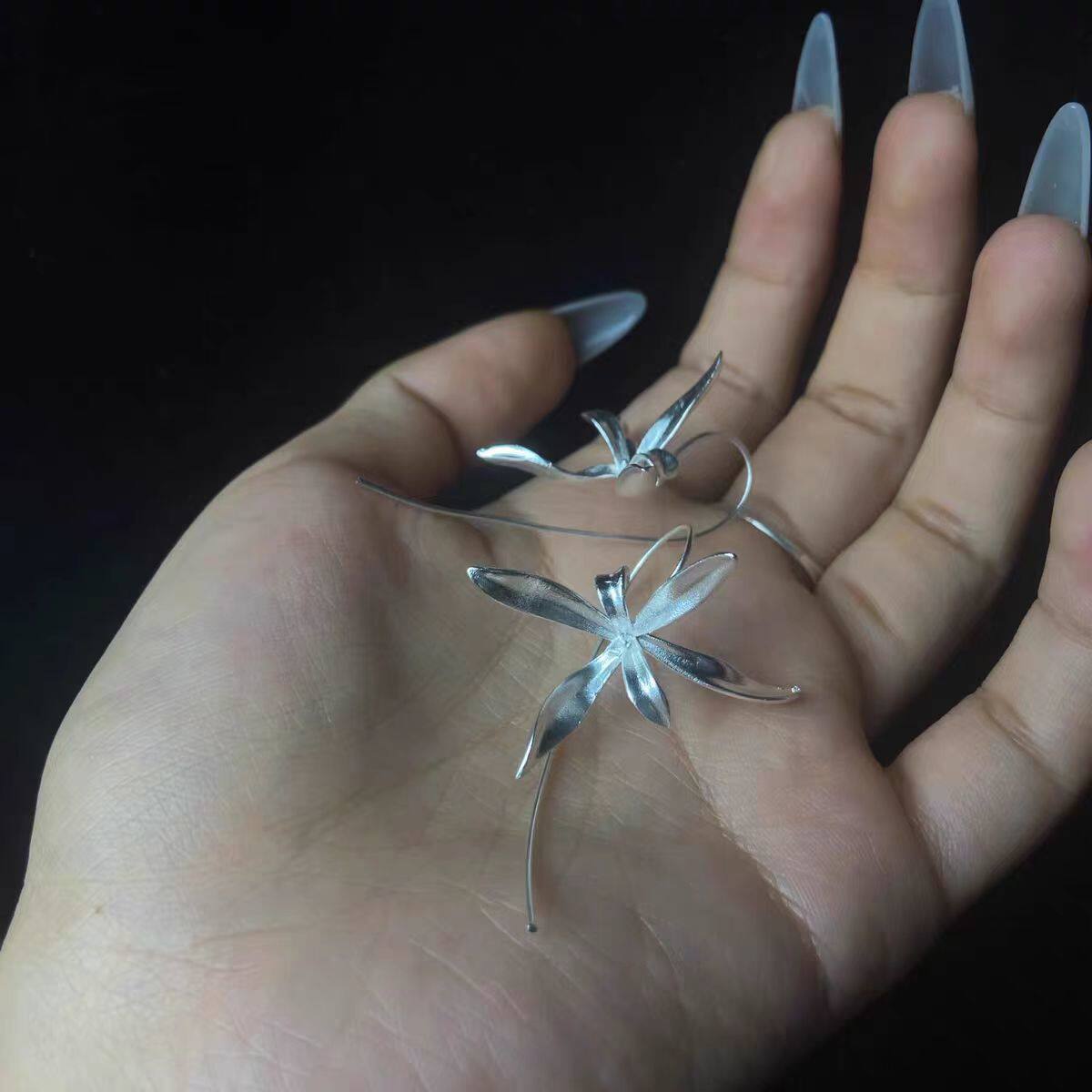 鸢尾花气质立体玉兰花朵耳环中国风轻奢小众设计文艺耳钩饰