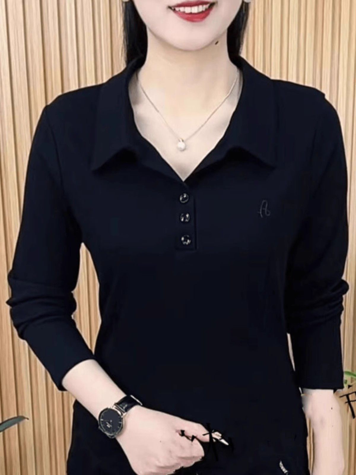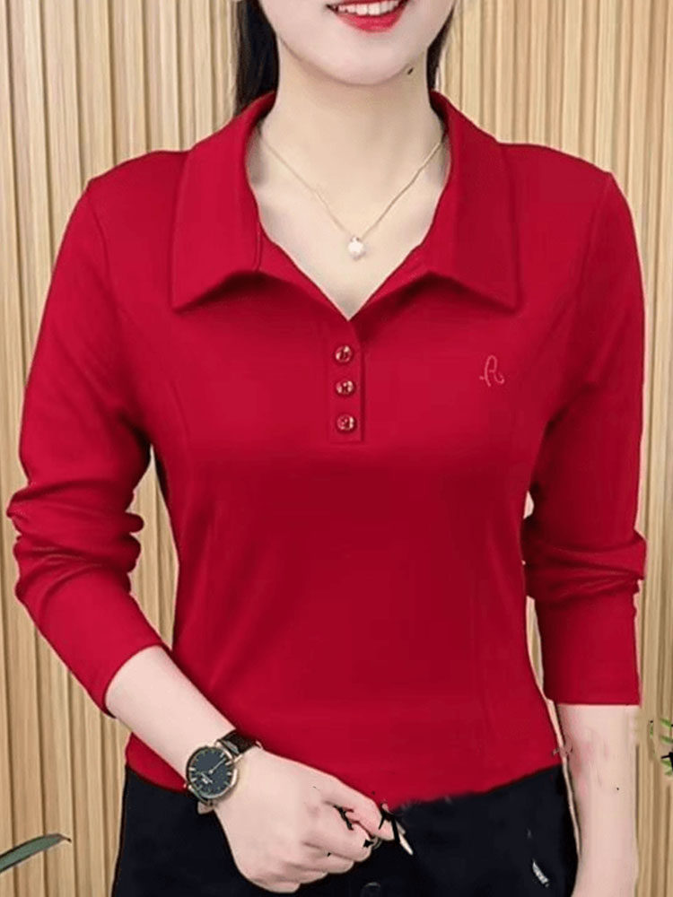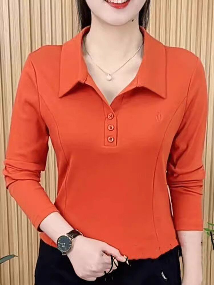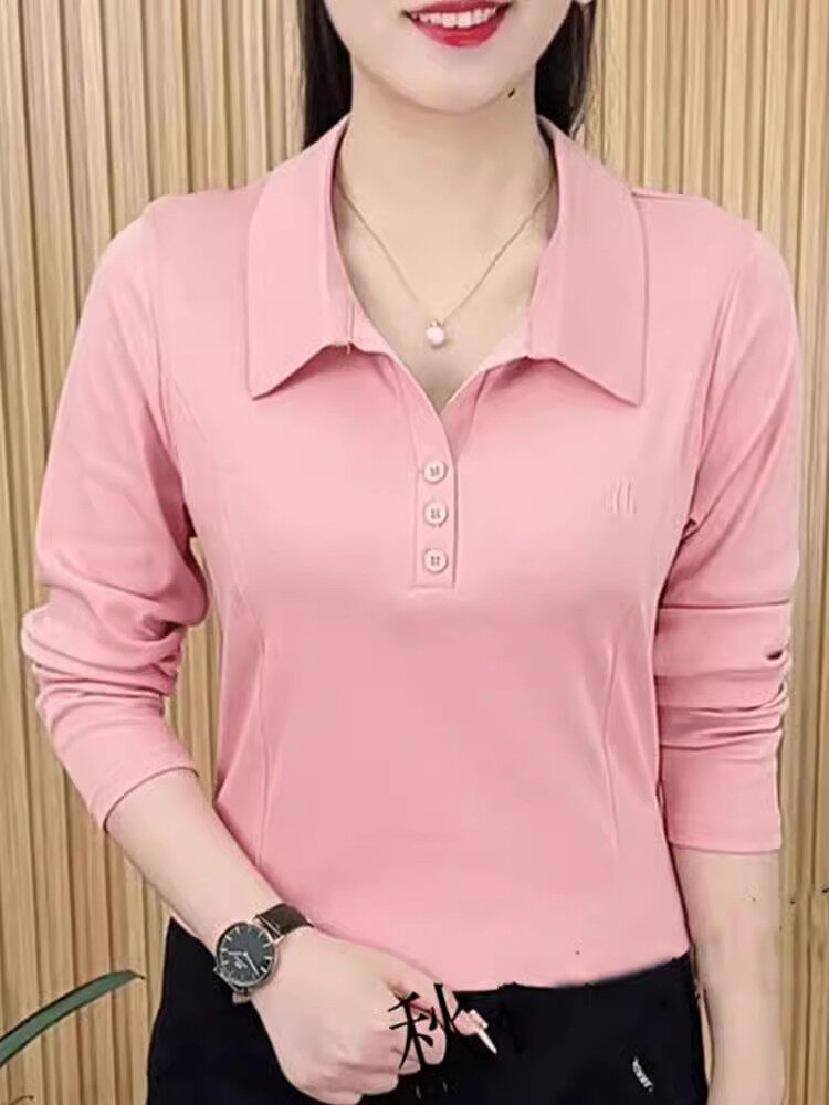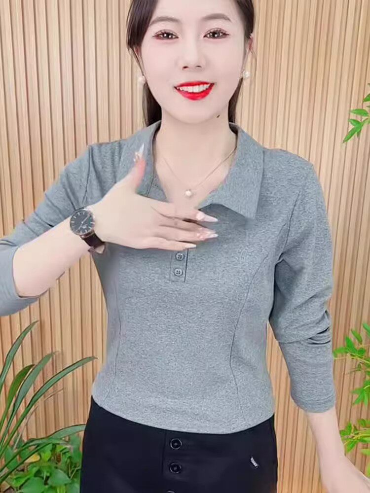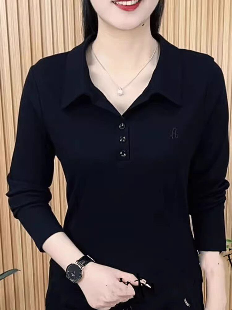 春秋新款长袖洋气百搭翻领打底衫上衣女妈妈装大码休闲衬衣女T恤