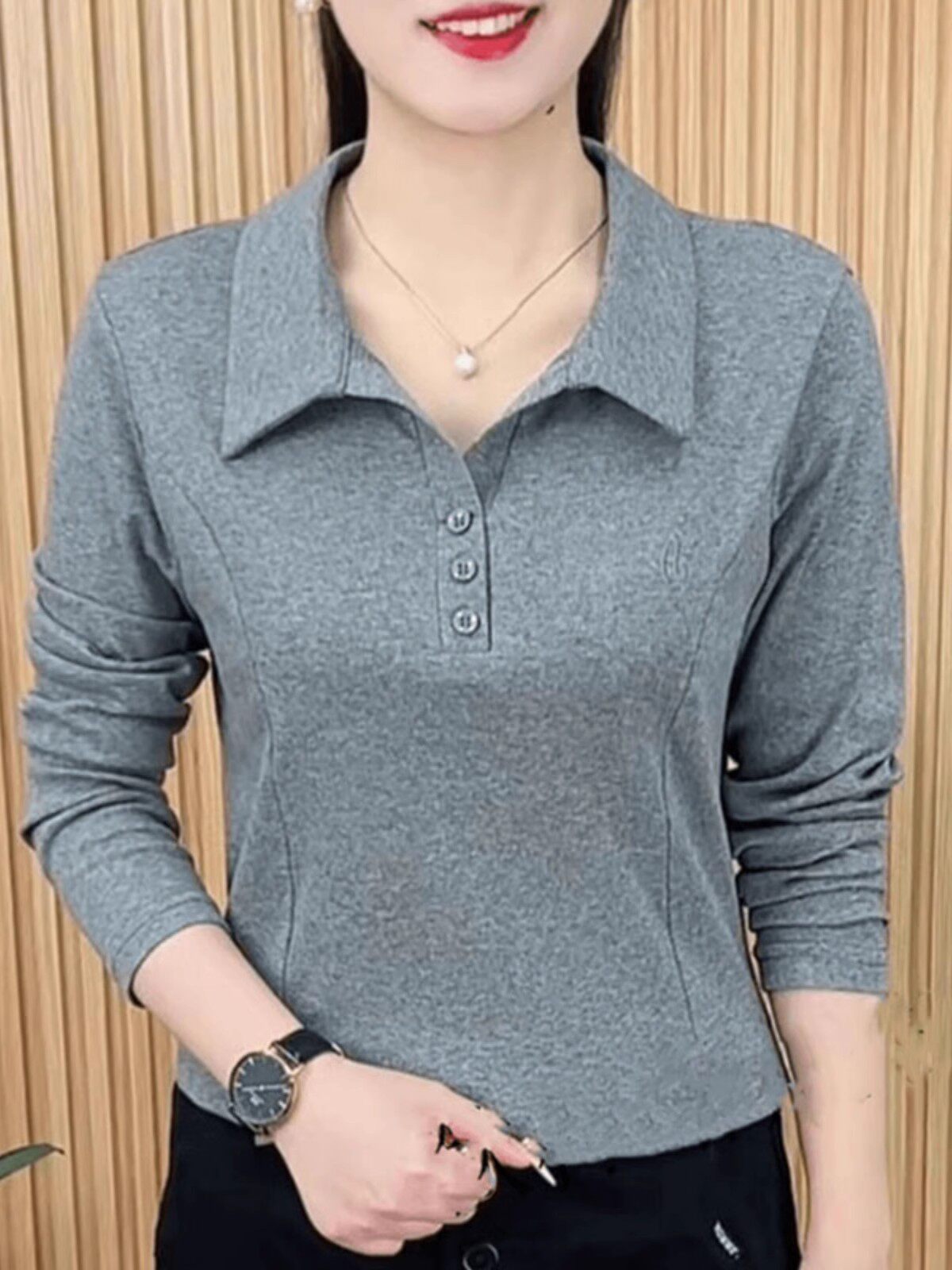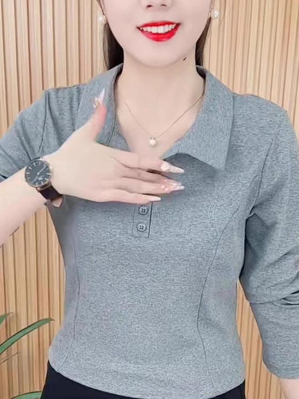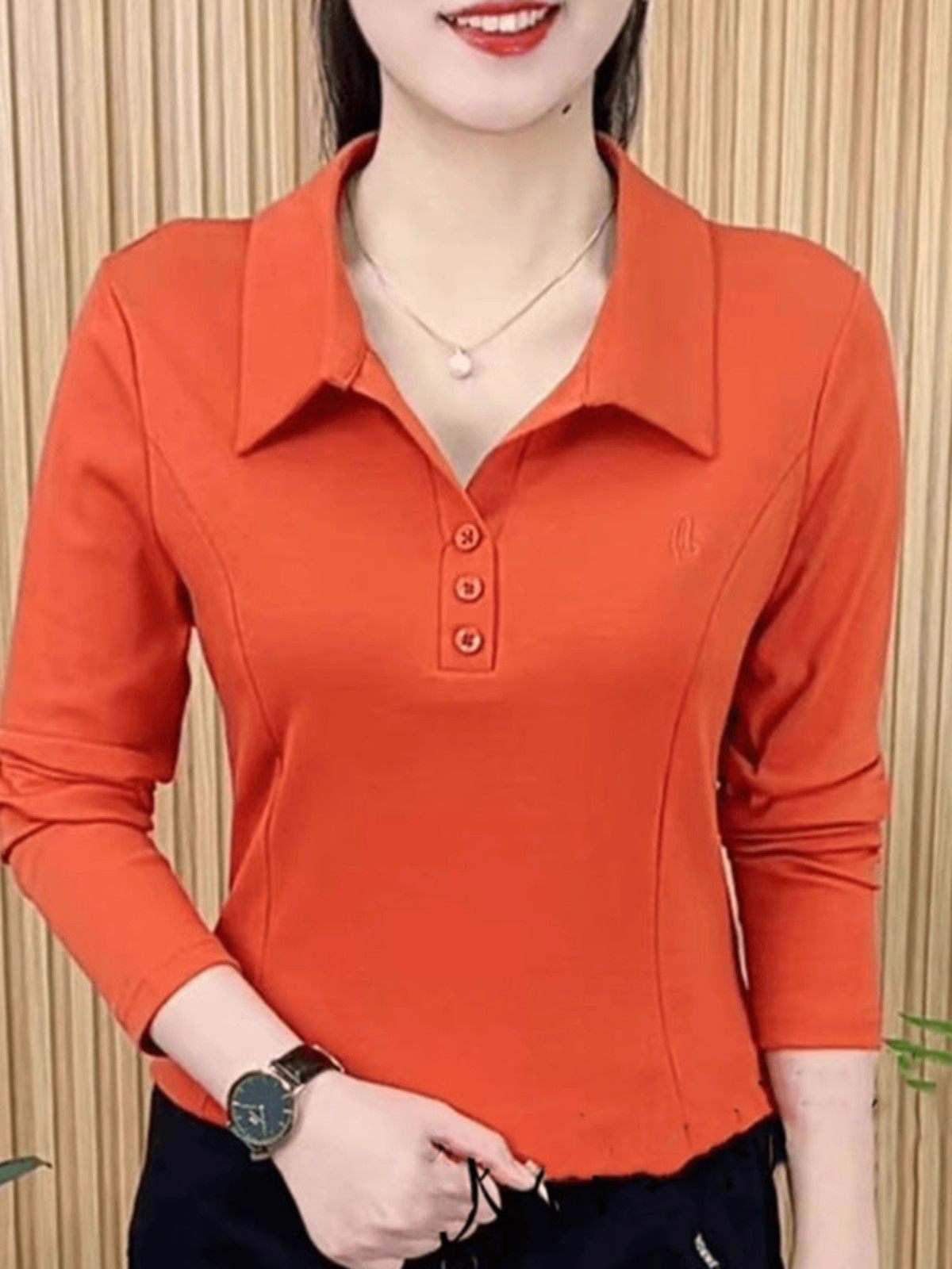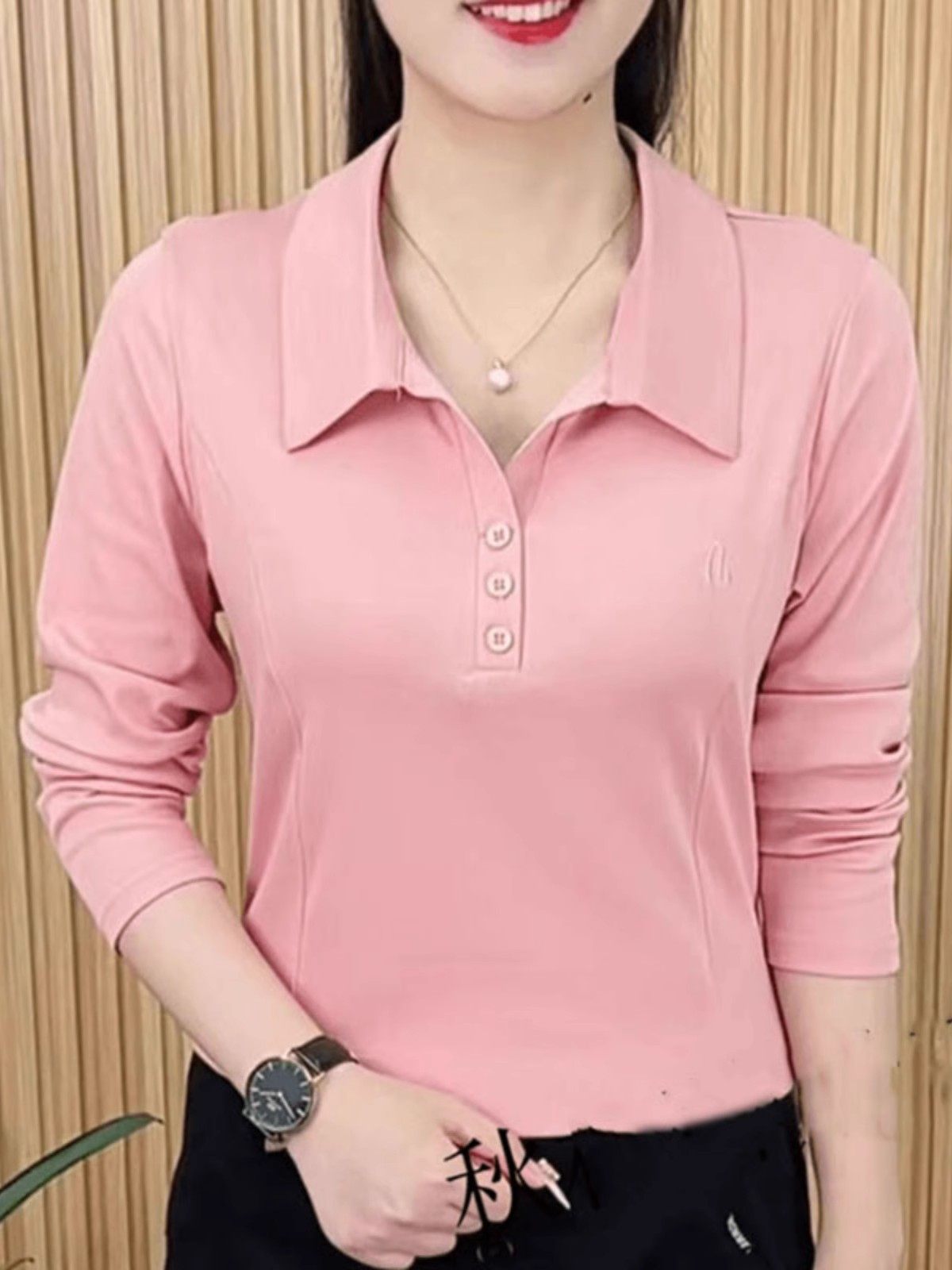 春秋新款长袖洋气百搭翻领打底衫上衣女妈妈装大码休闲衬衣女T恤