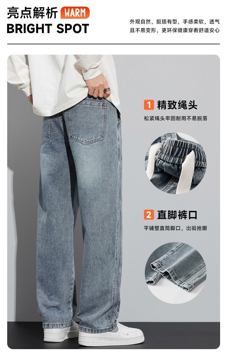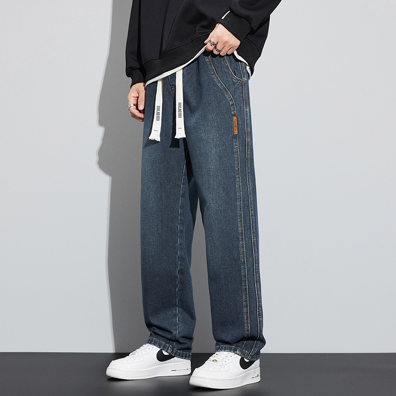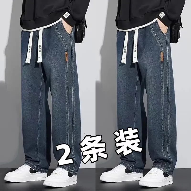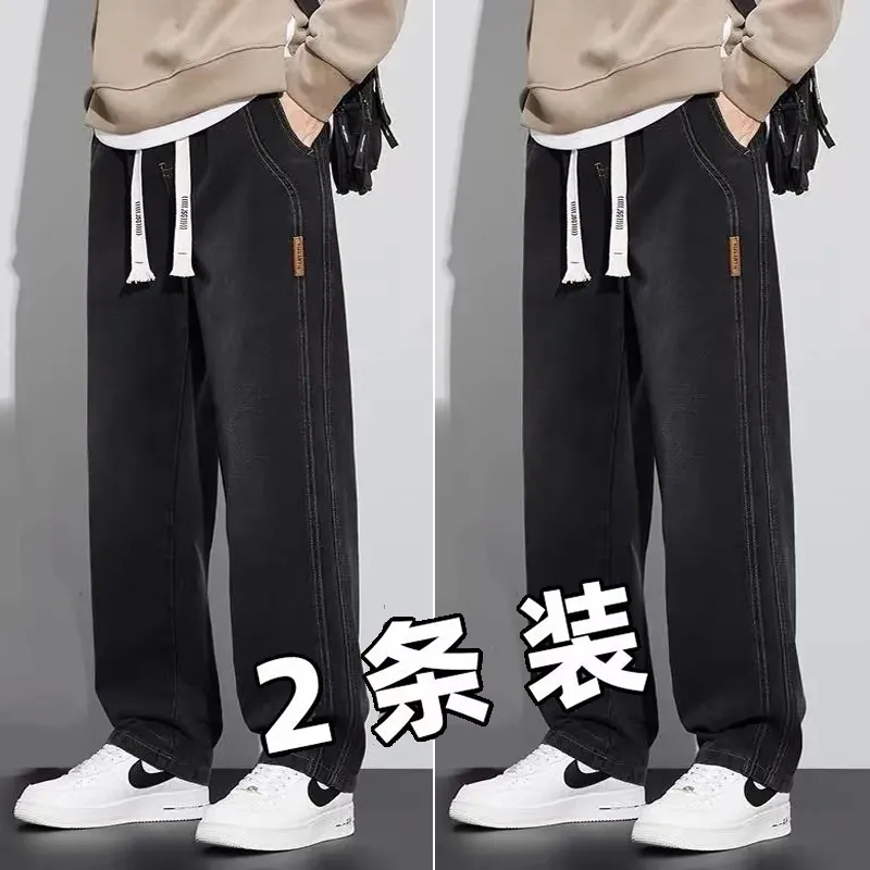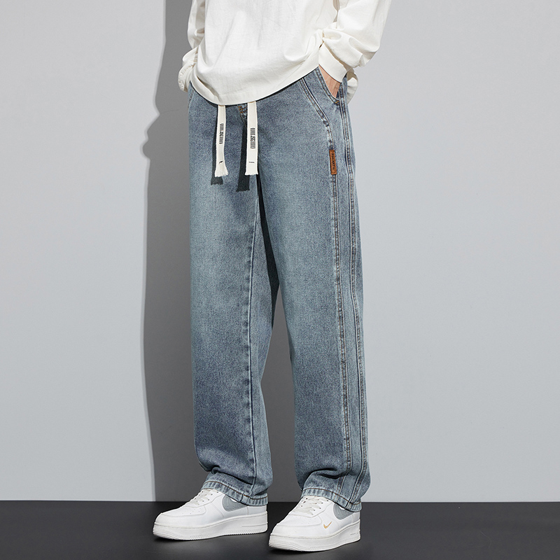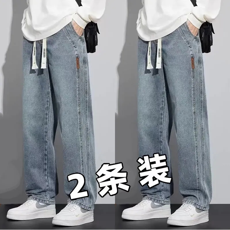 阔腿牛仔裤男士2025春秋新款美式复古宽松大码冬季休闲直筒裤子男