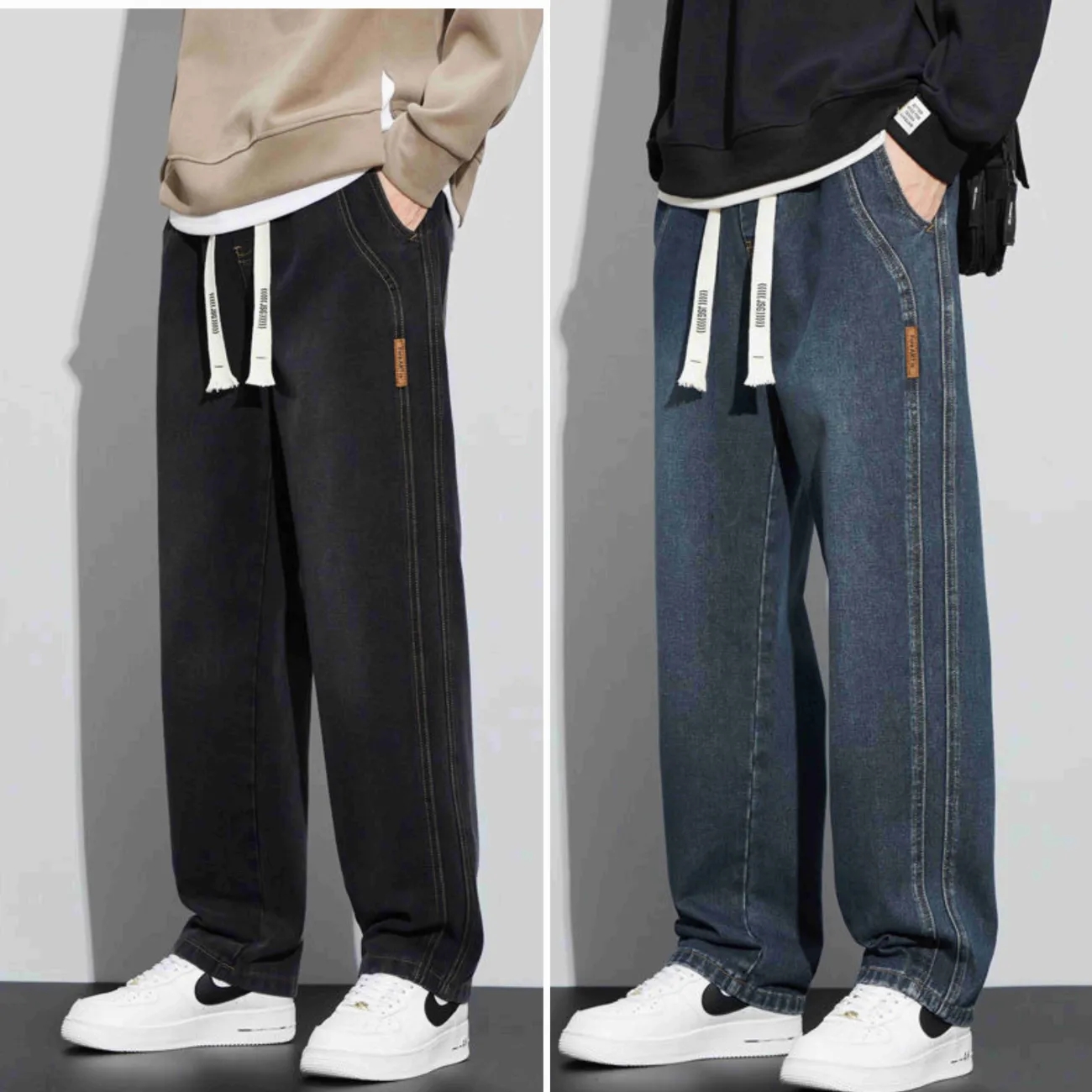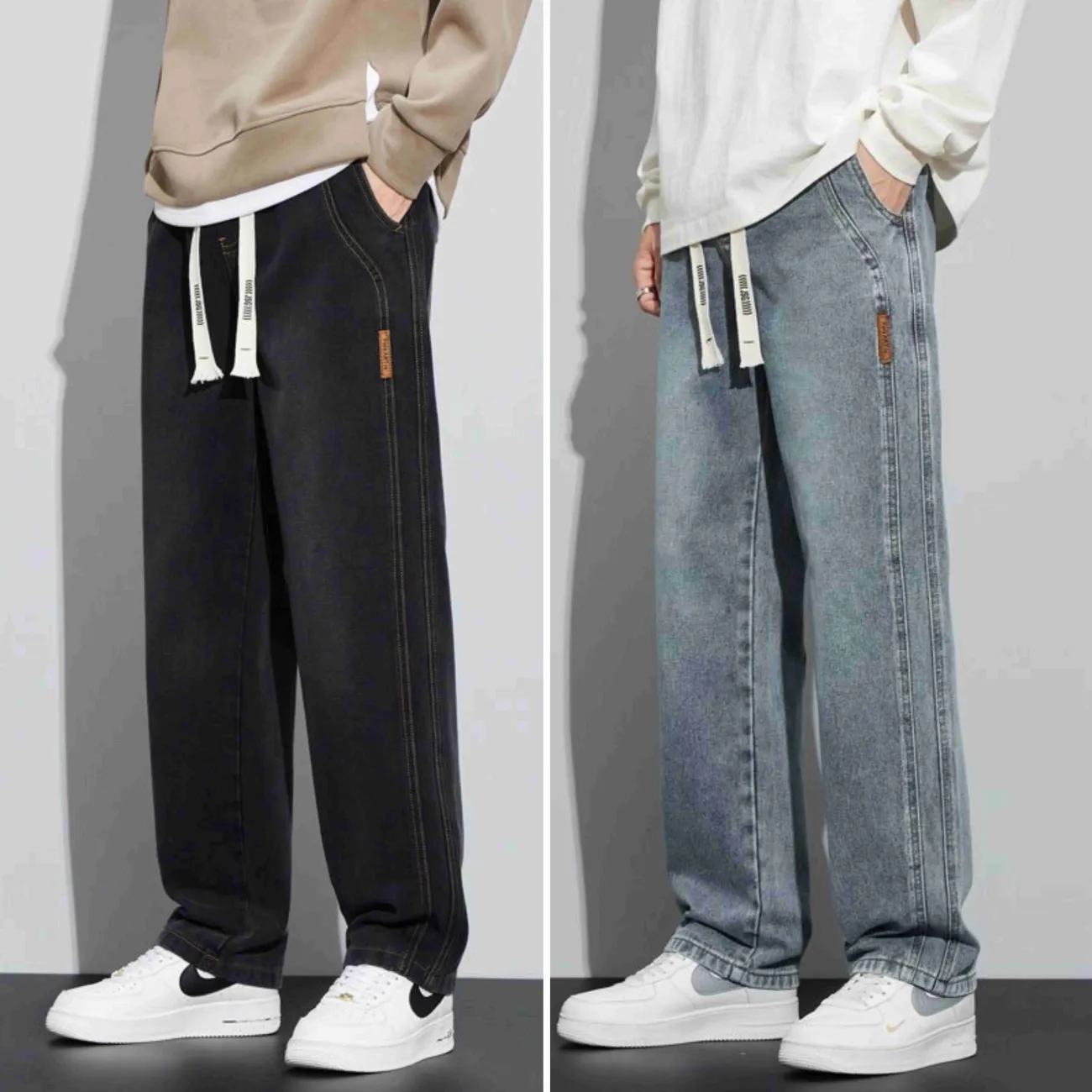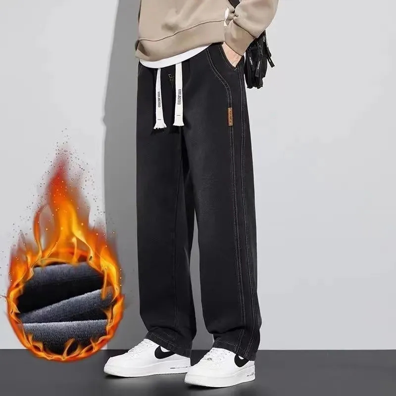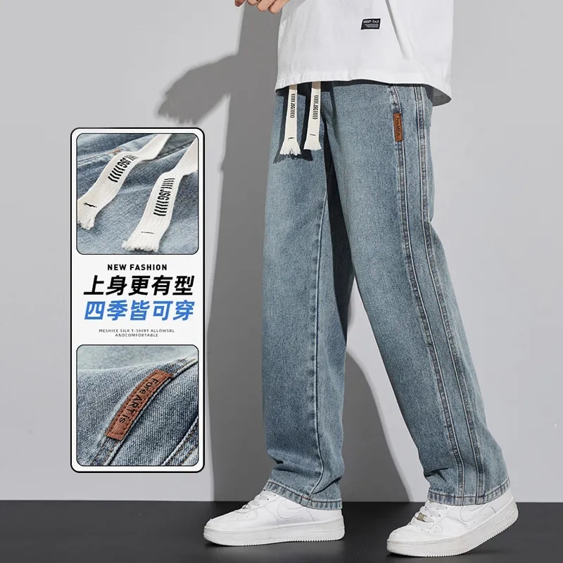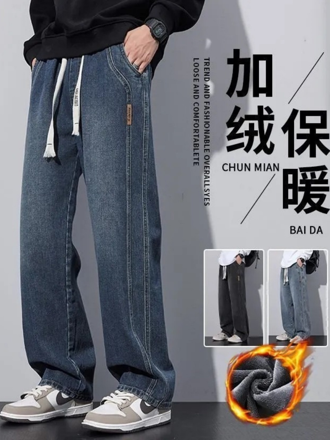 阔腿牛仔裤男士2025春秋新款美式复古宽松大码冬季休闲直筒裤子男