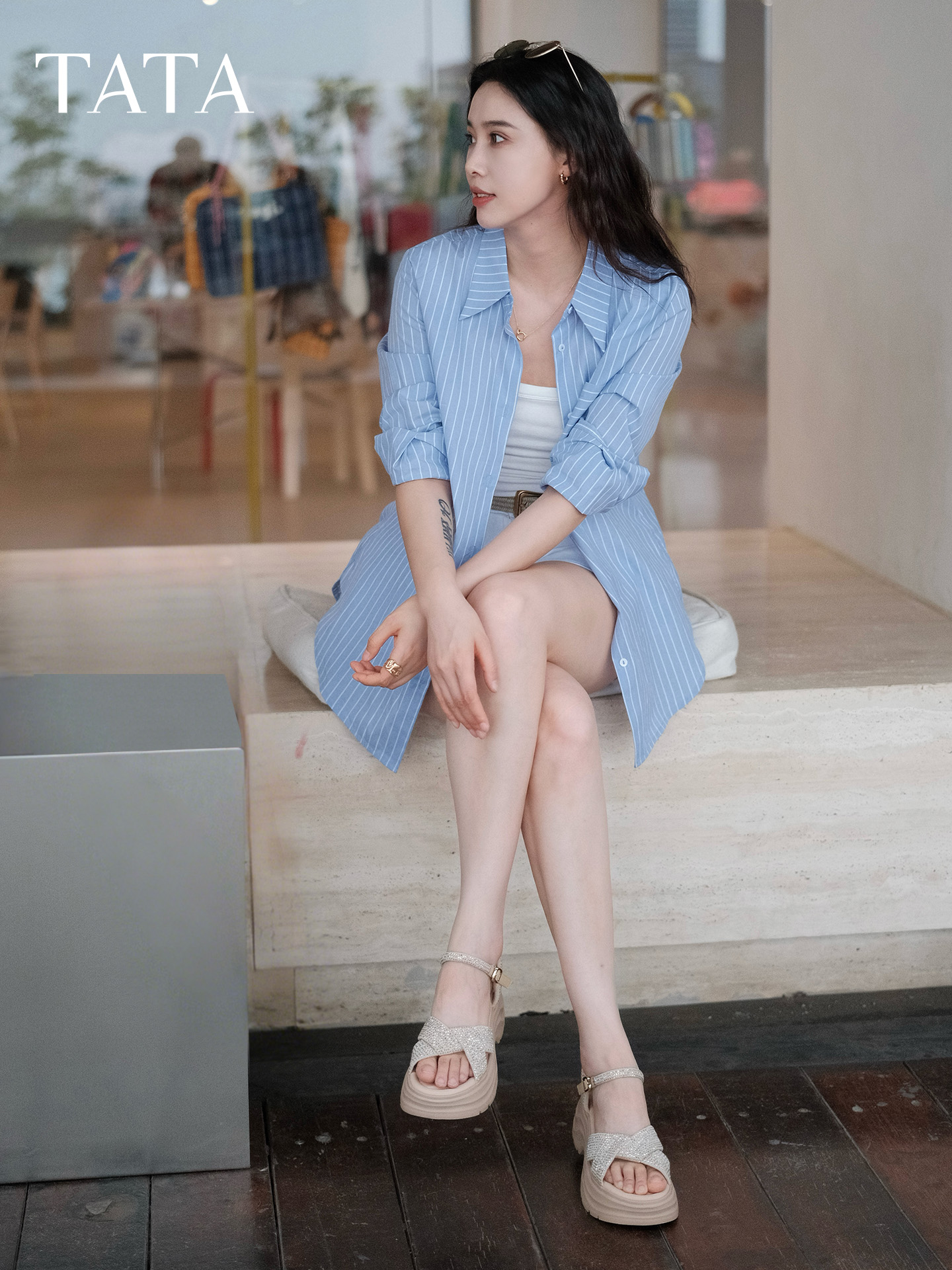 TATA他她休闲厚底凉鞋女鞋法式气质时装凉鞋2025夏季新款CXT01BL5