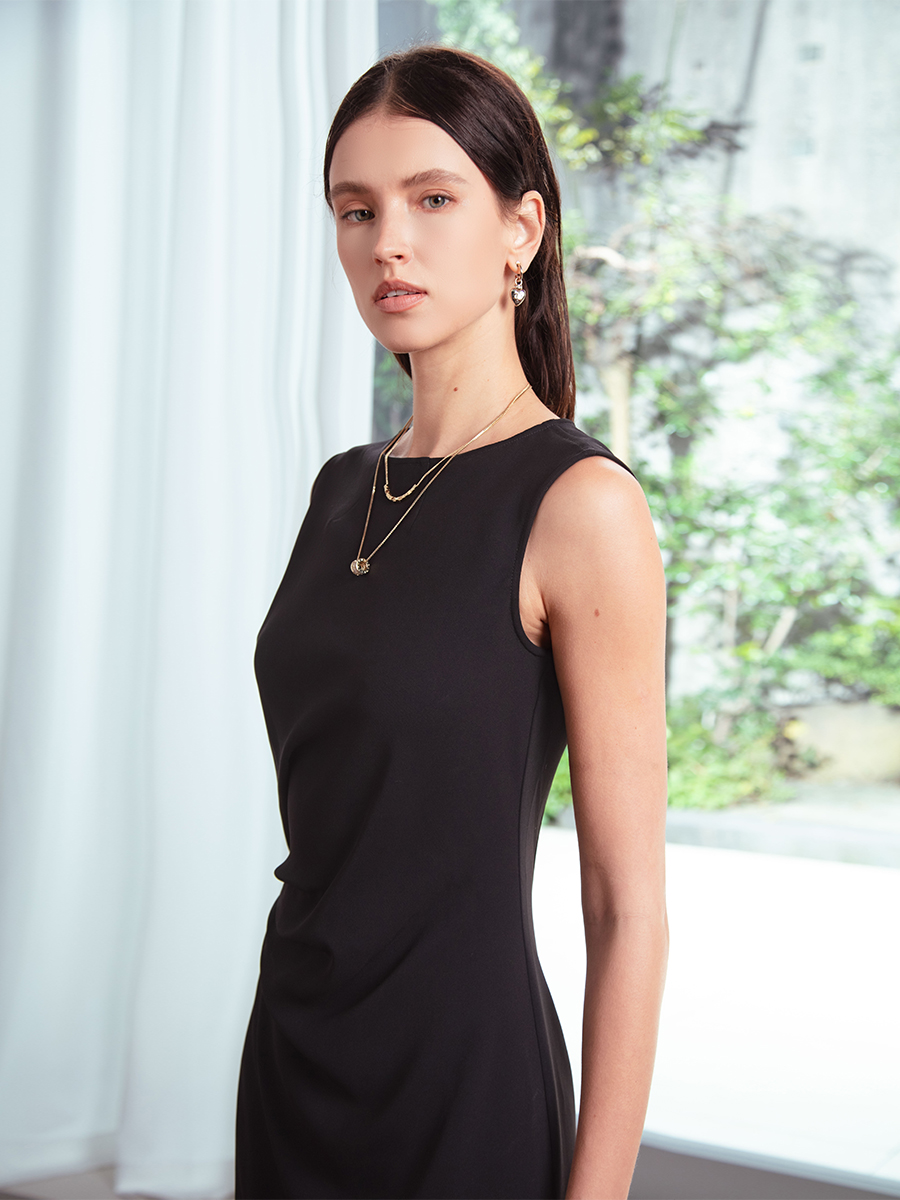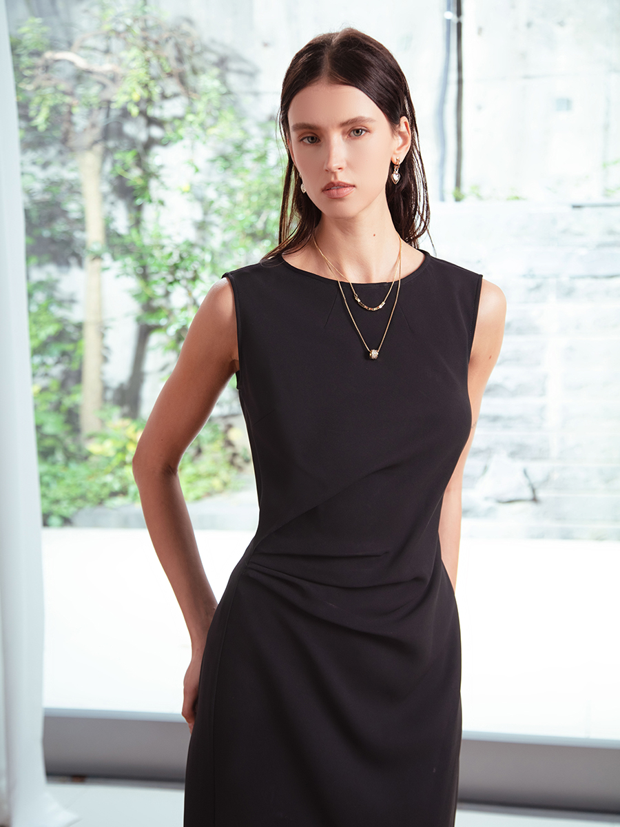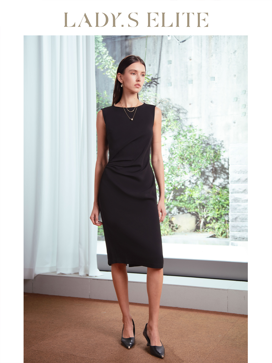 LadySElite【7日小黑裙系列】25新款收腰显瘦典雅无袖连衣裙女士